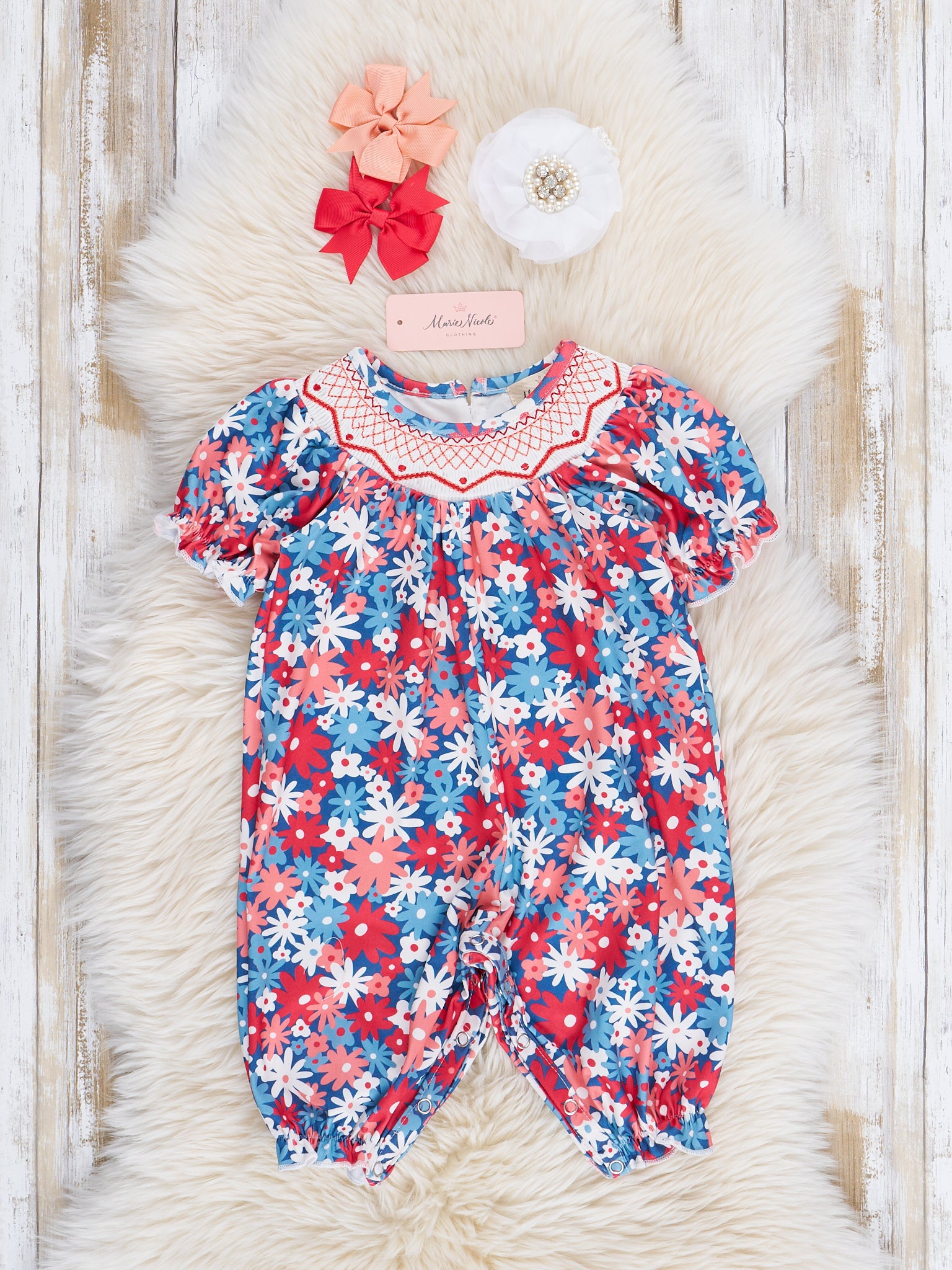 Red, White & Blue Daisies Smocked Romper