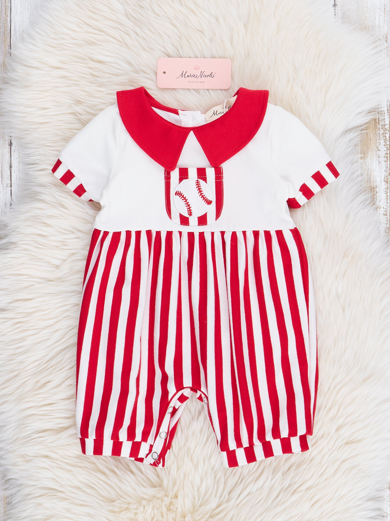 Red Stripes Embroidered Baseball Romper