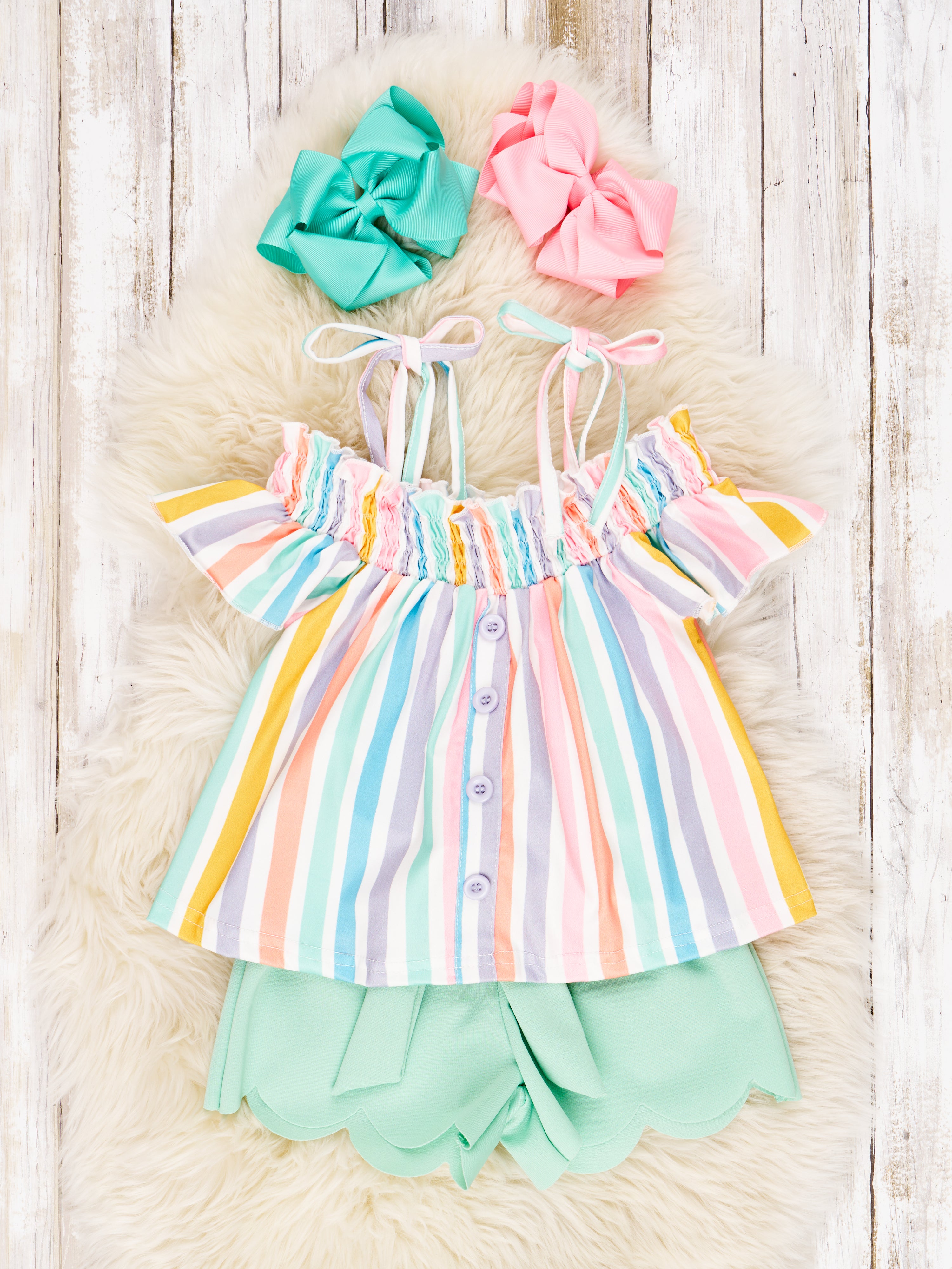 Striped "Love" Sequin Ruffle Top & Denim Bell Bottoms Outfit