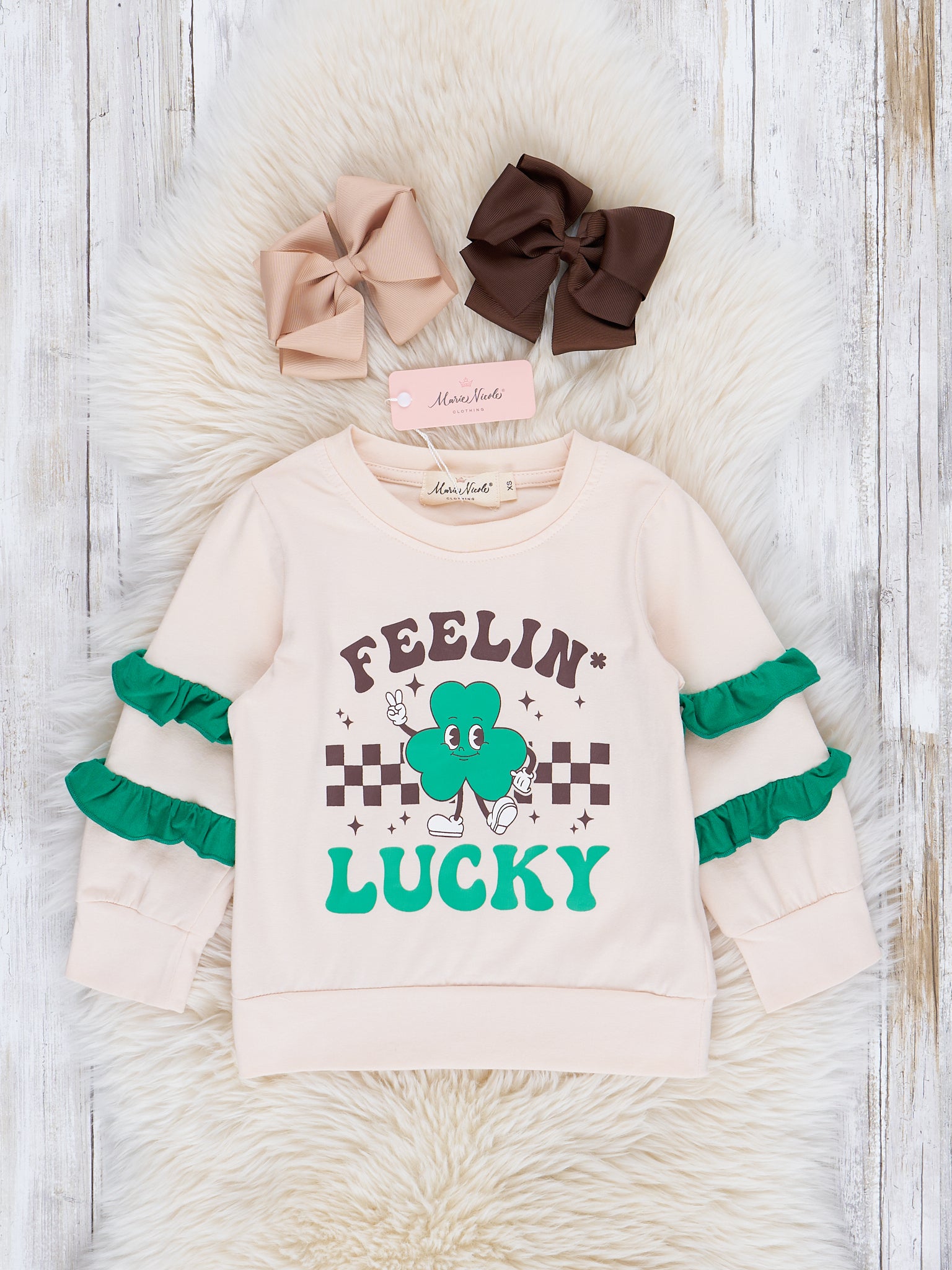 Tan & Green "Feelin' Lucky" Ruffle Shirt