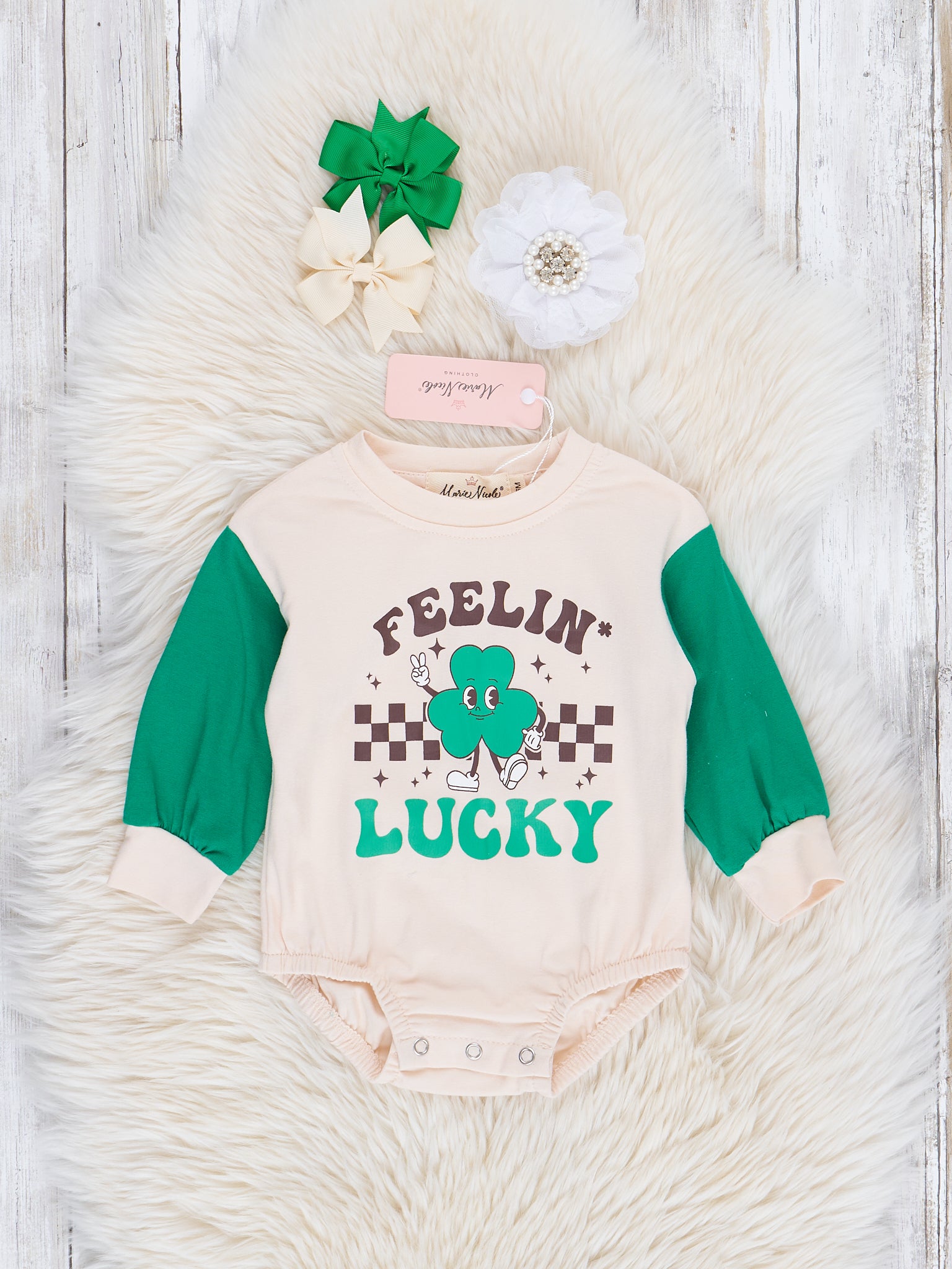 Tan & Green "Feelin' Lucky" Raglan Romper