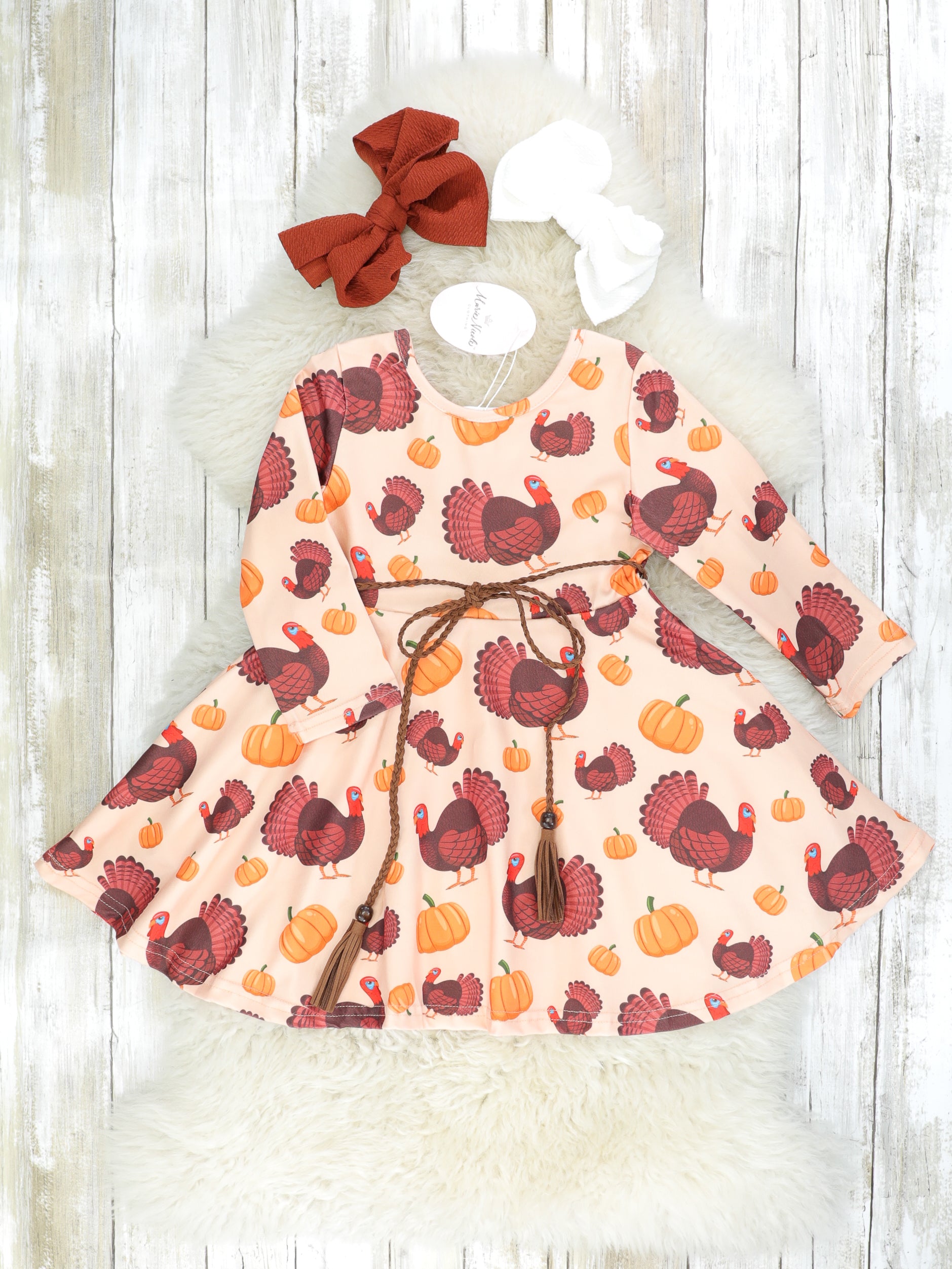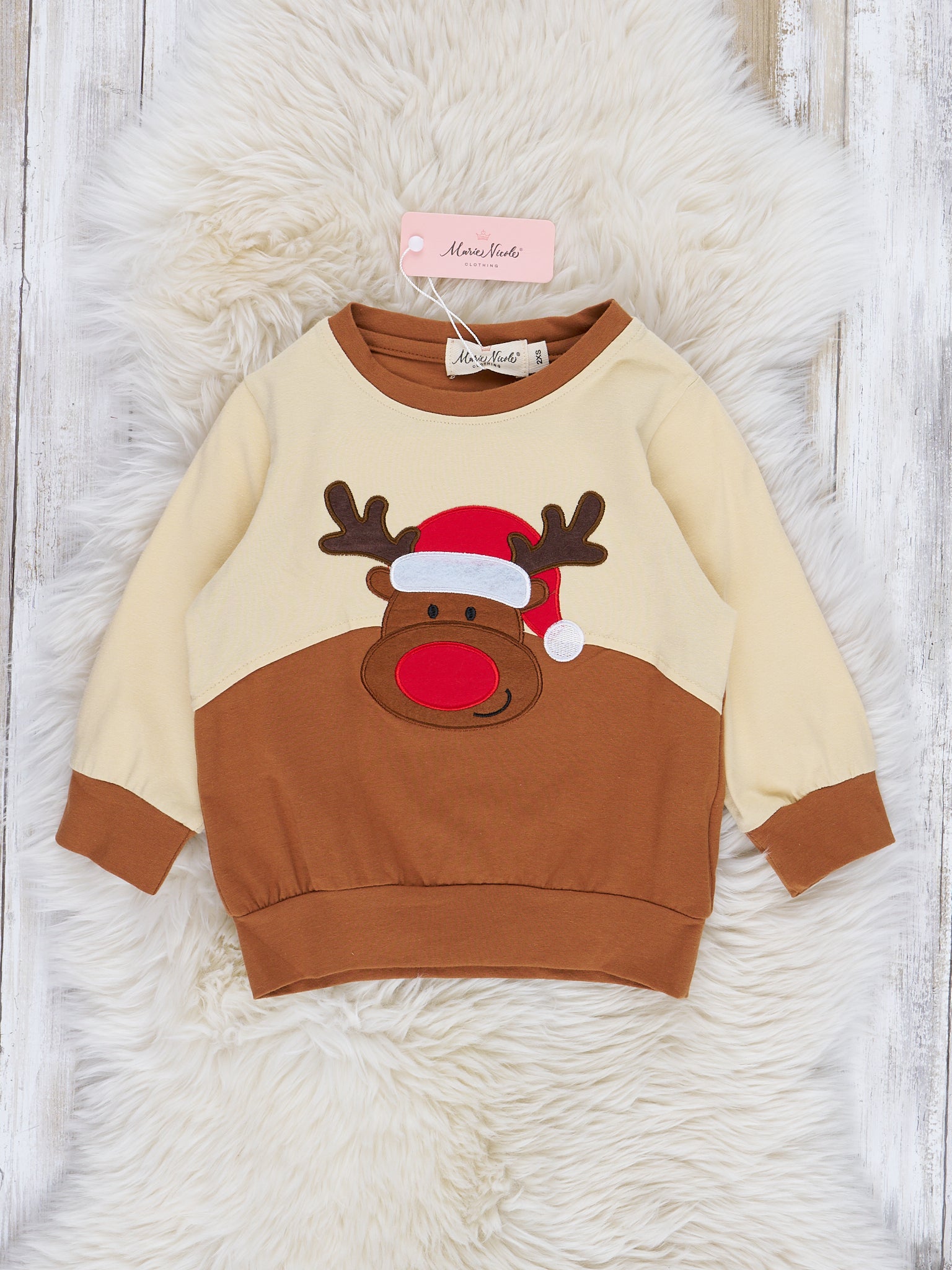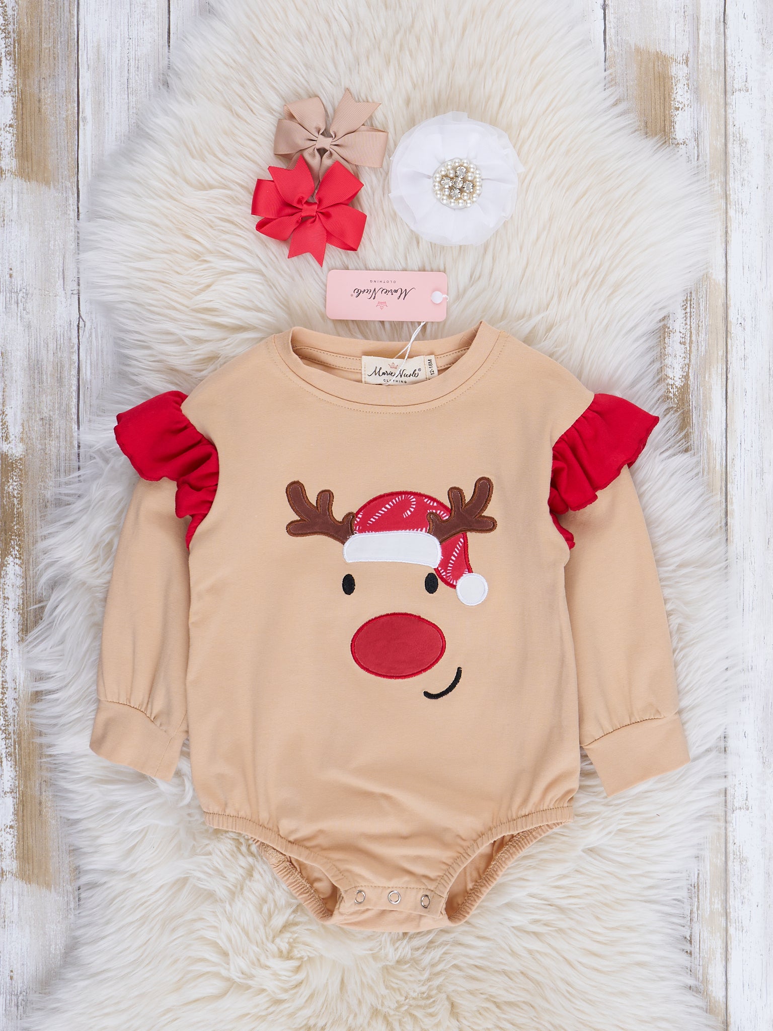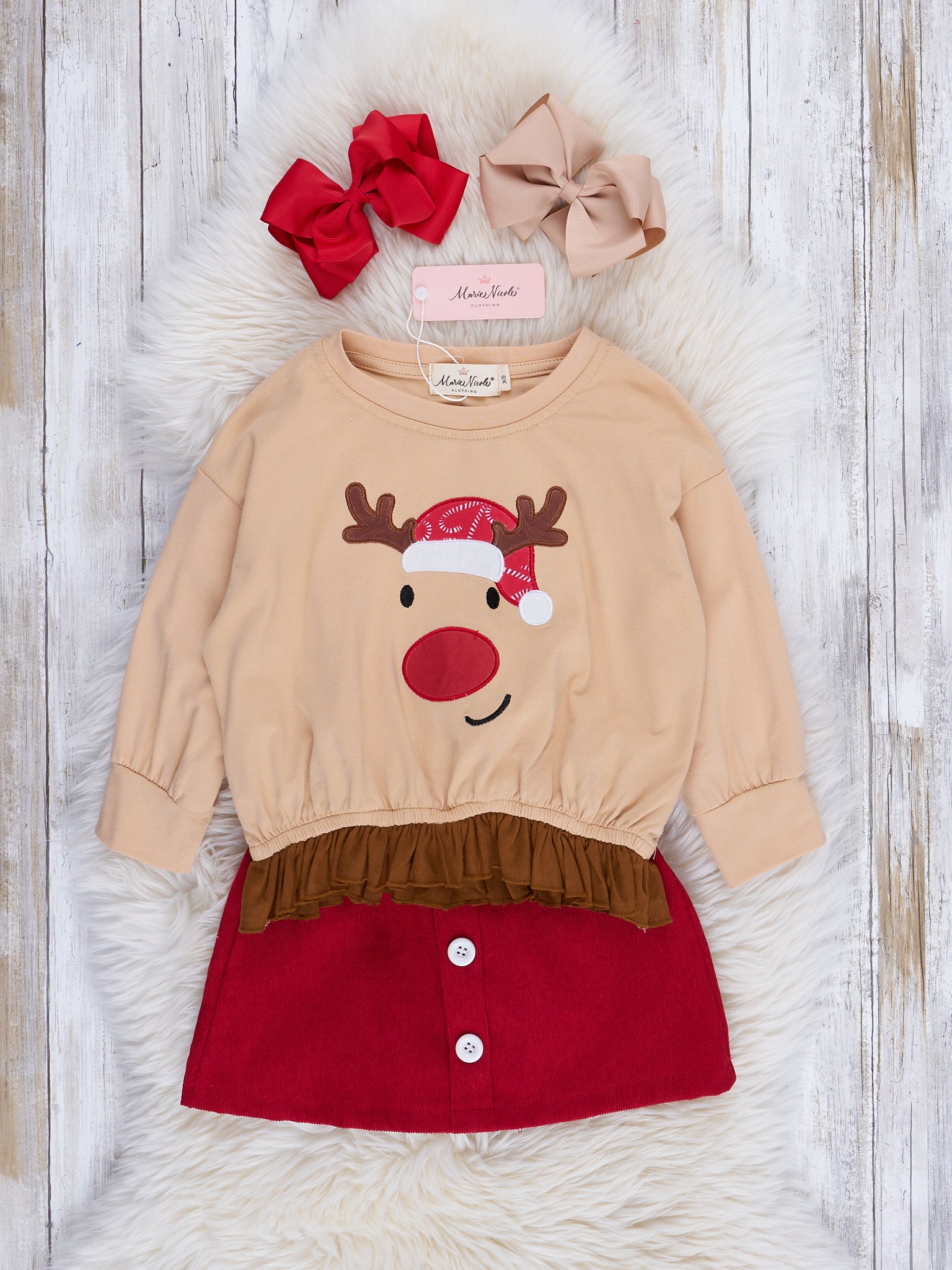 Tan & Red Friendly Reindeer Ruffle Outfit w/ Skirt