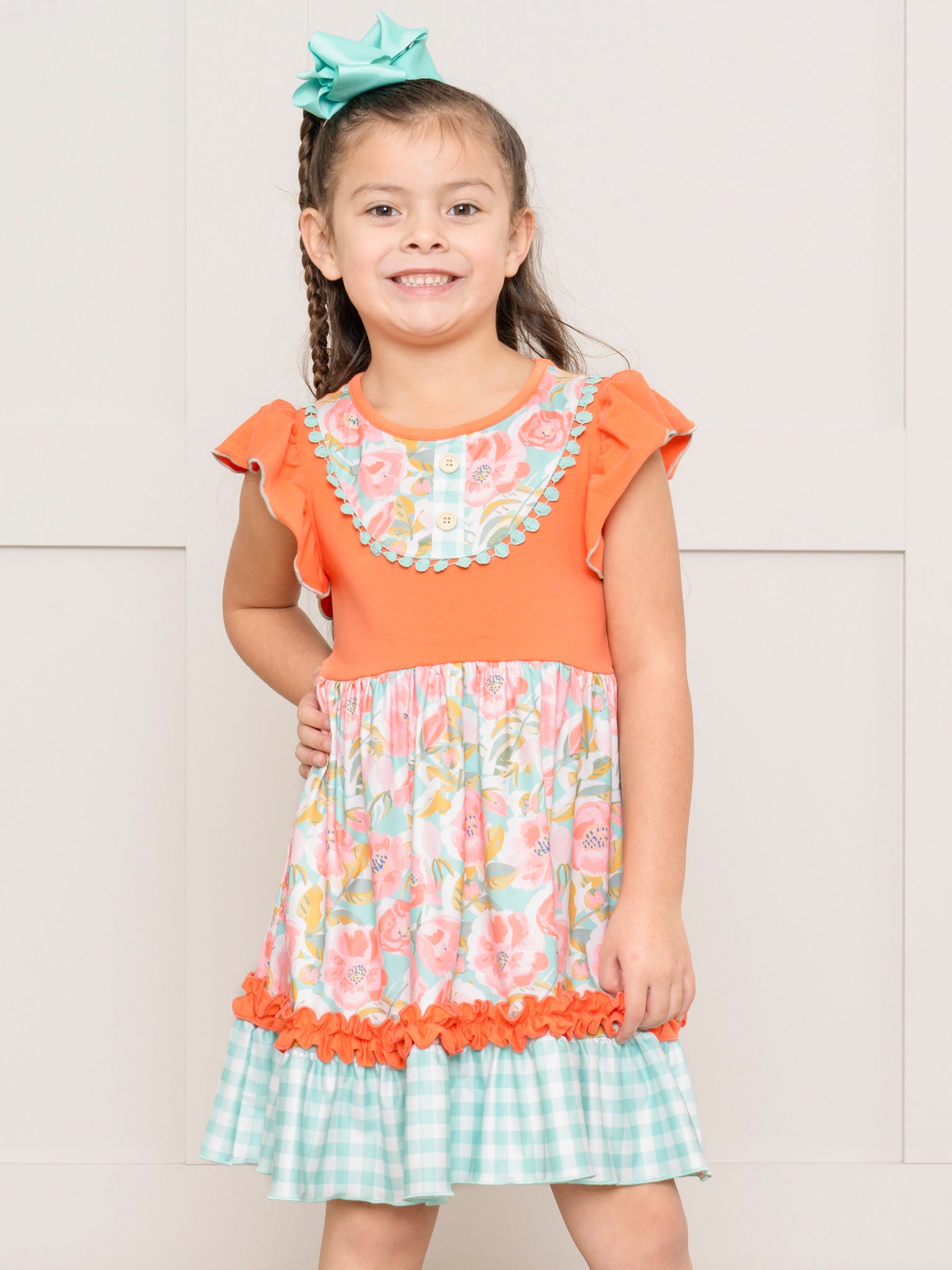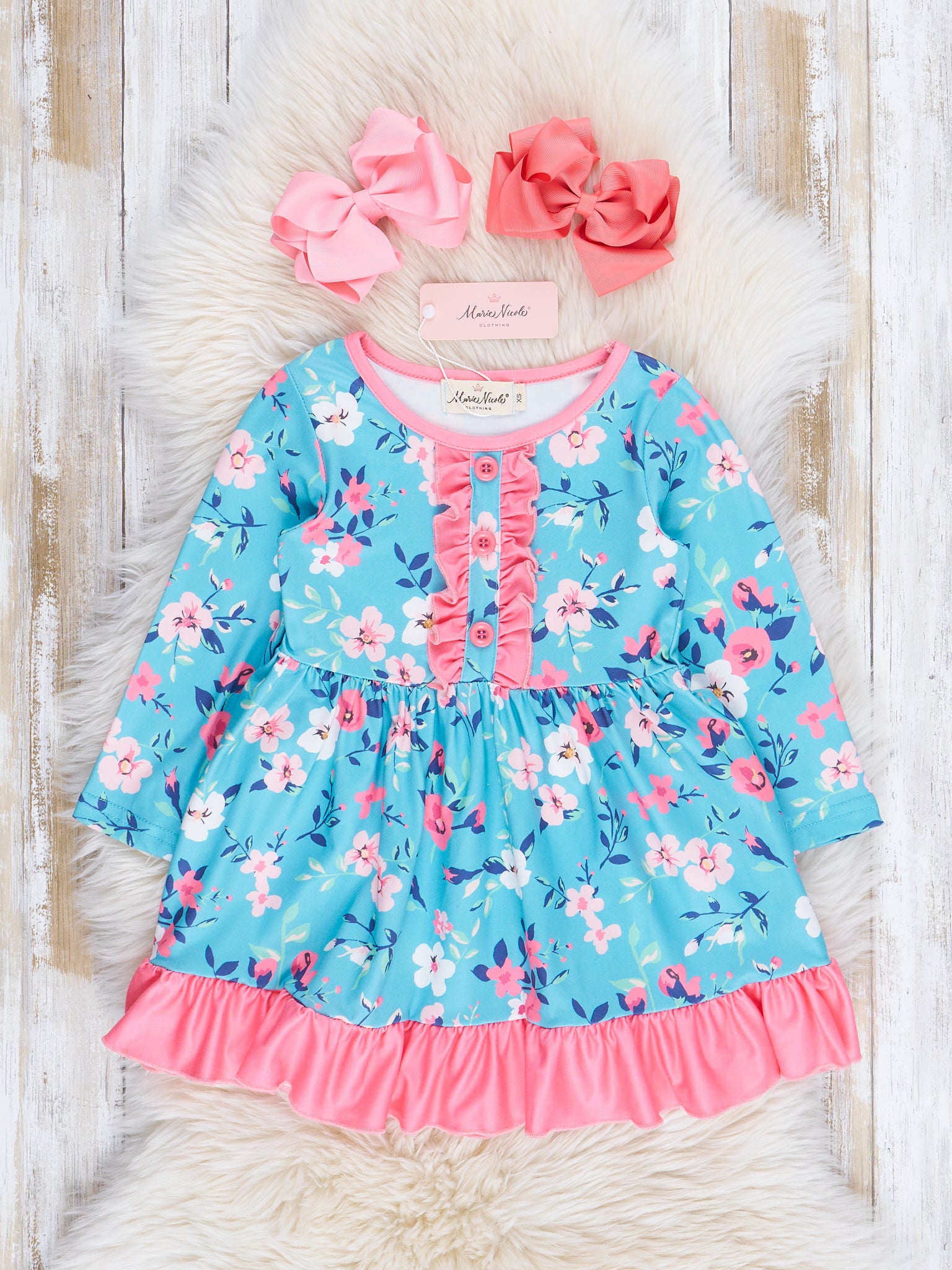 Teal & Pink Floral Good Vibes Ruffle Outfit