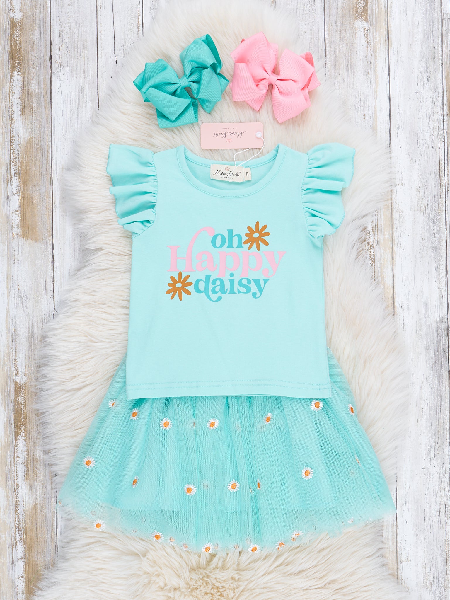 Teal Happy Daisy Outfit w/ Tulle Skirt