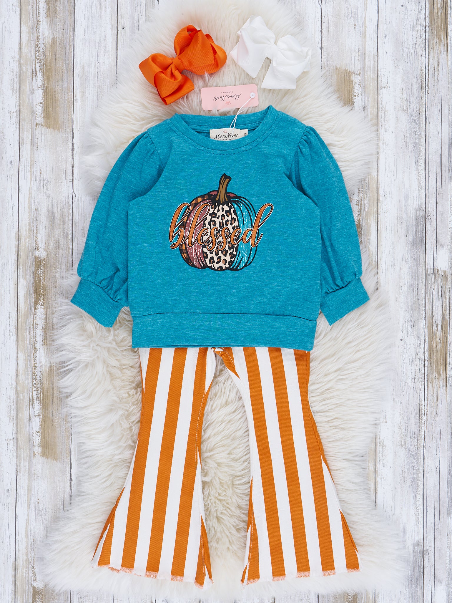 Teal Pumpkin & Orange Stripes Bell Bottom Outfit