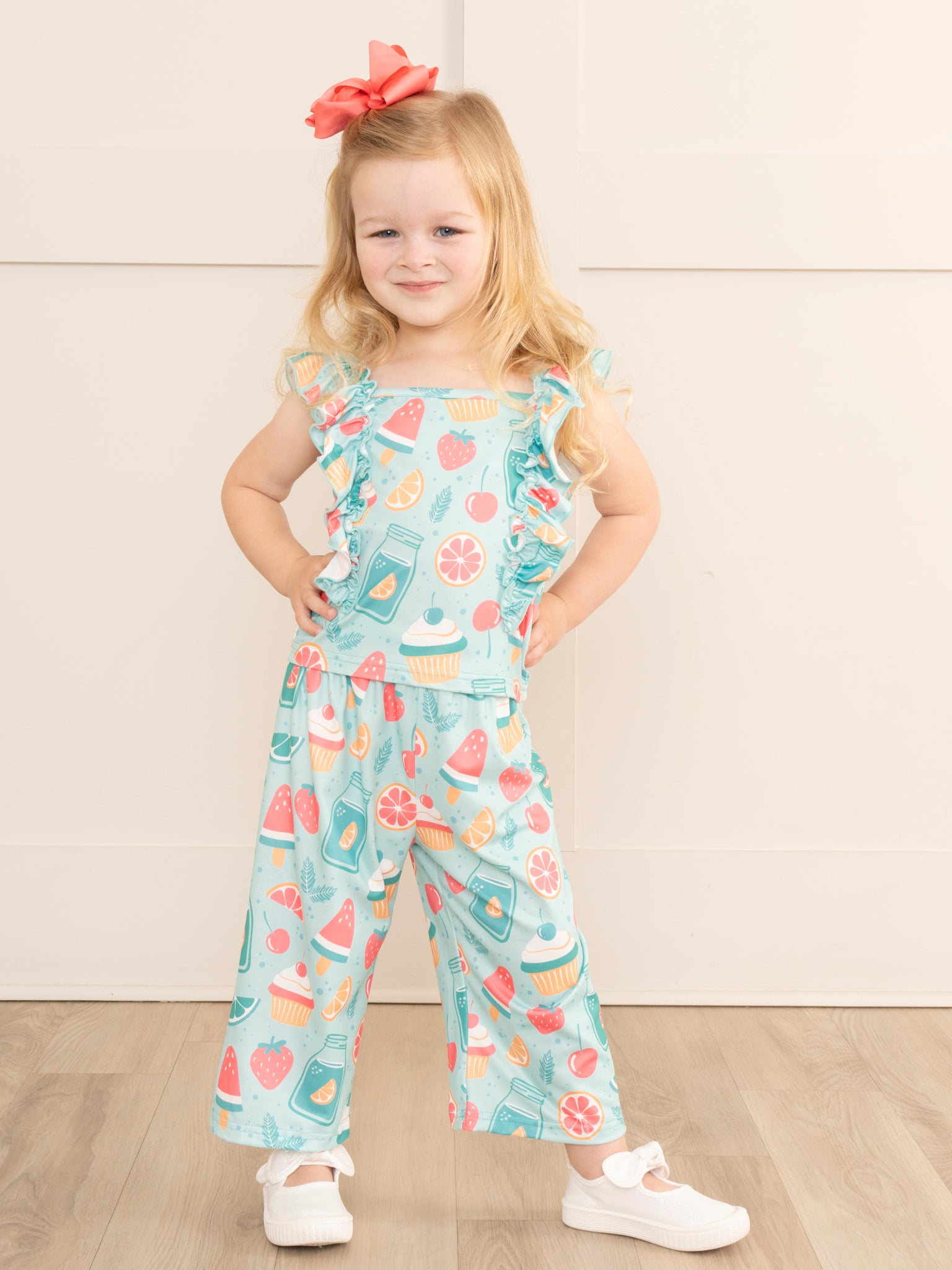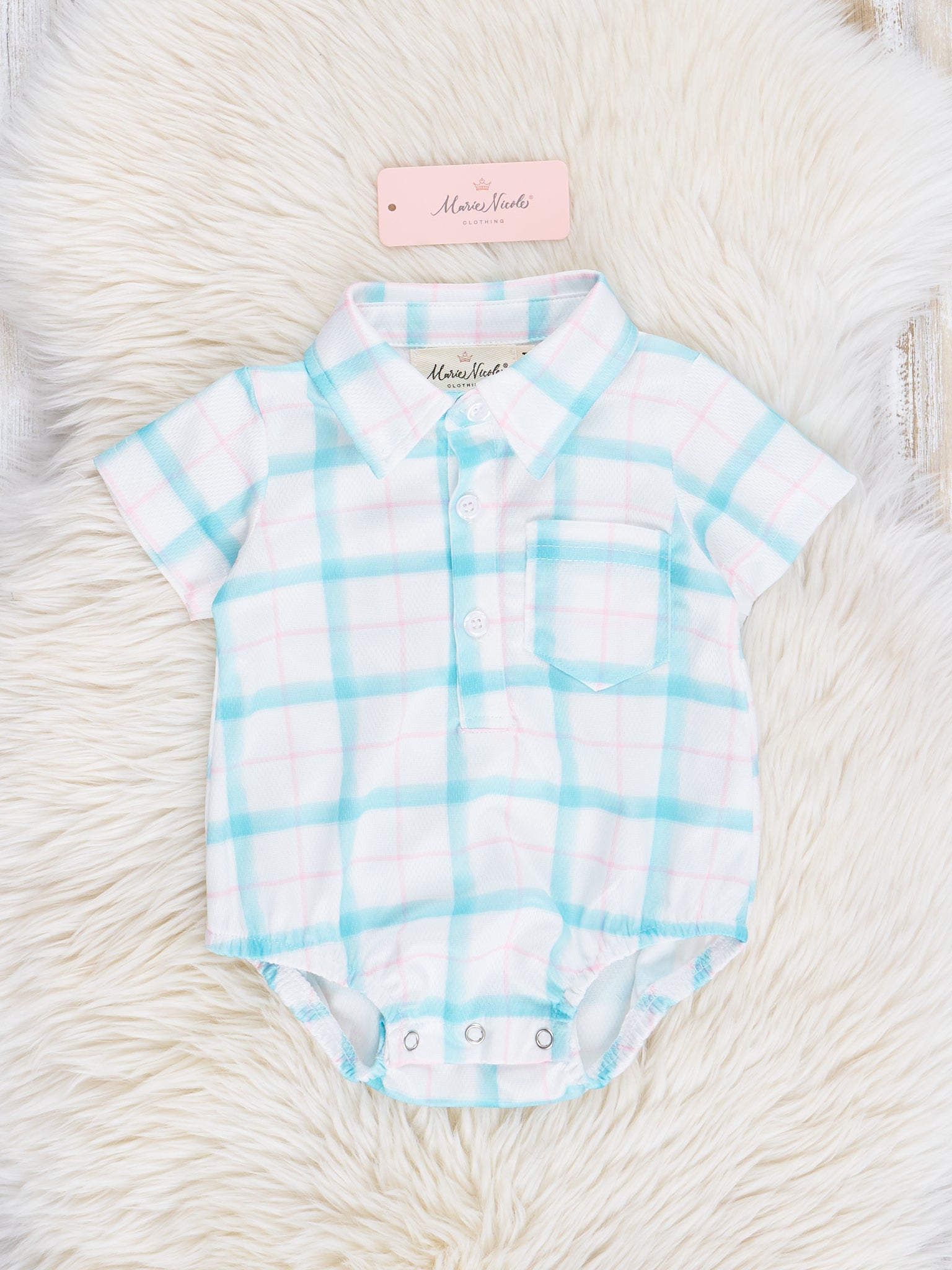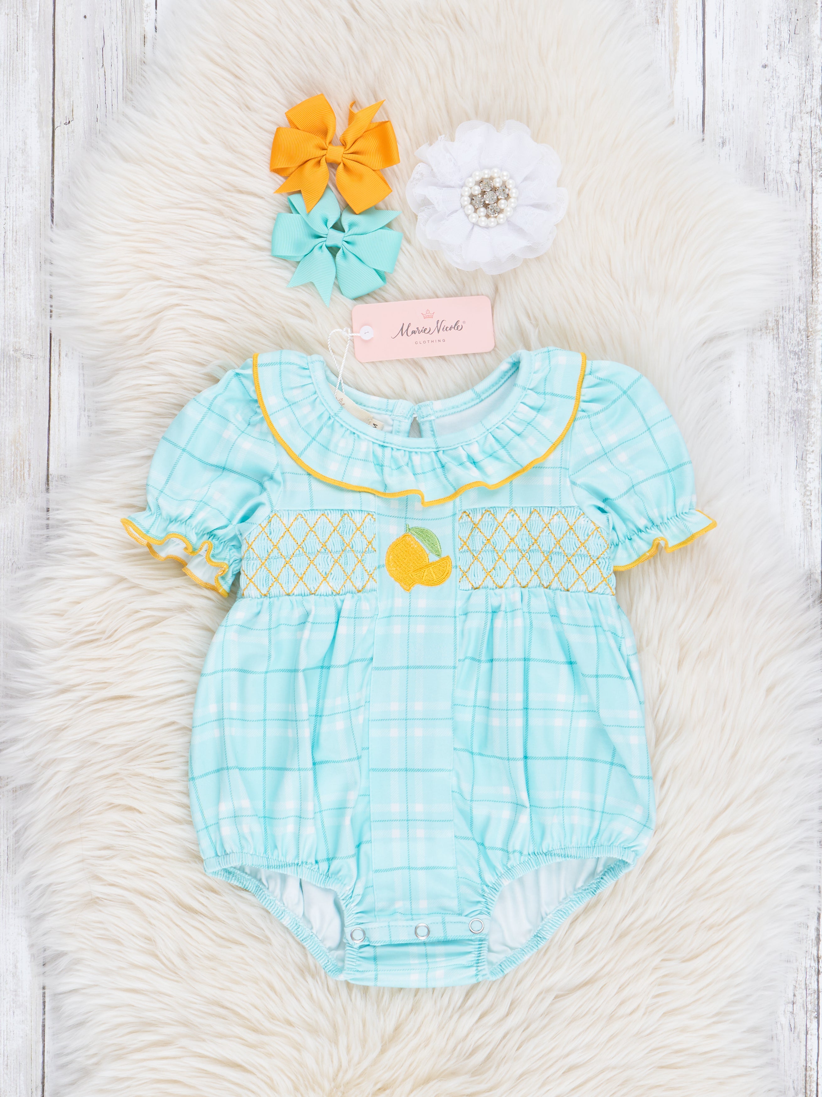 Teal Plaid Smocked Lemons Ruffle Bubble
