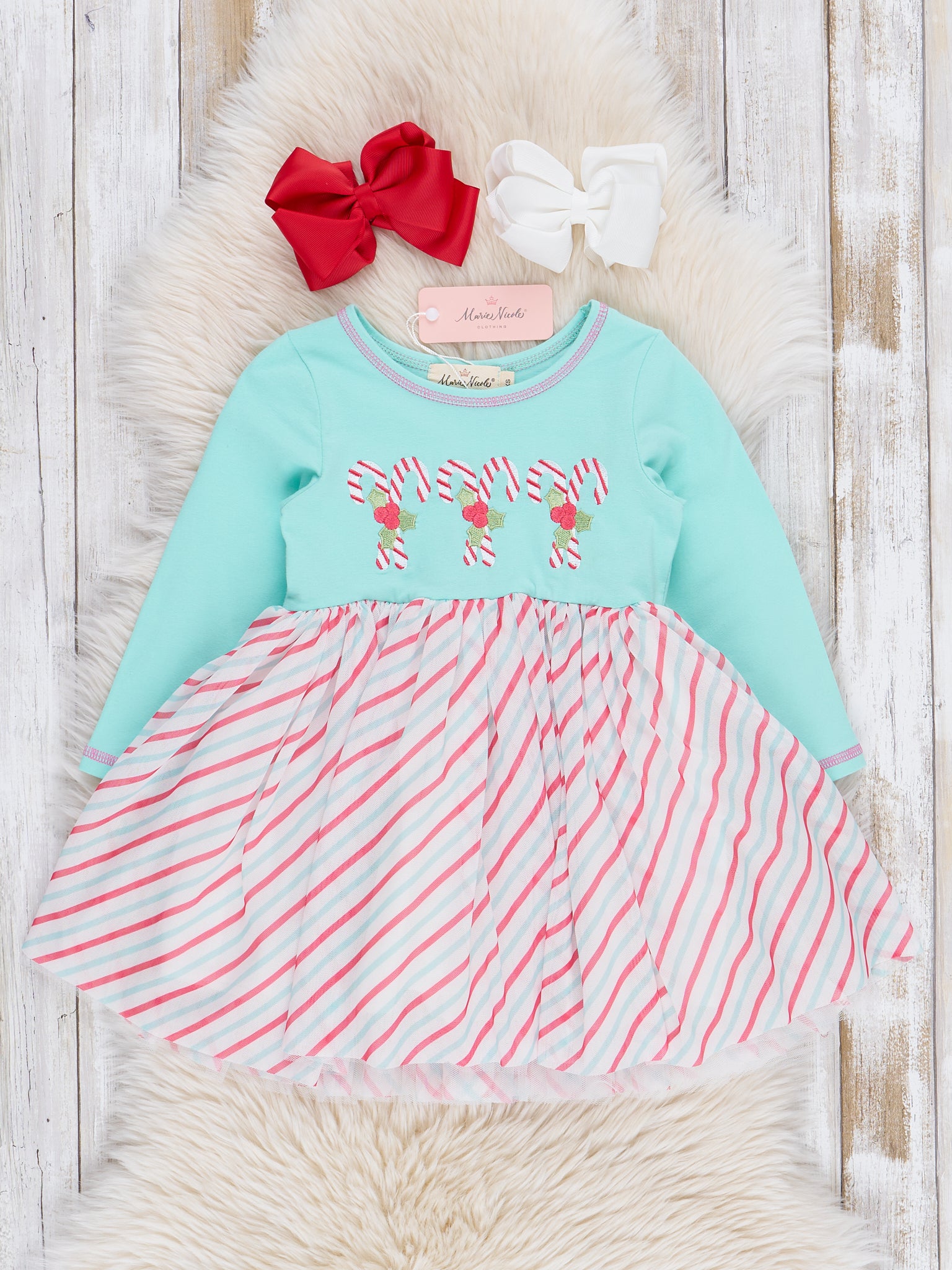 Teal Candy Cane Cutie Peplum Tulle Bubble
