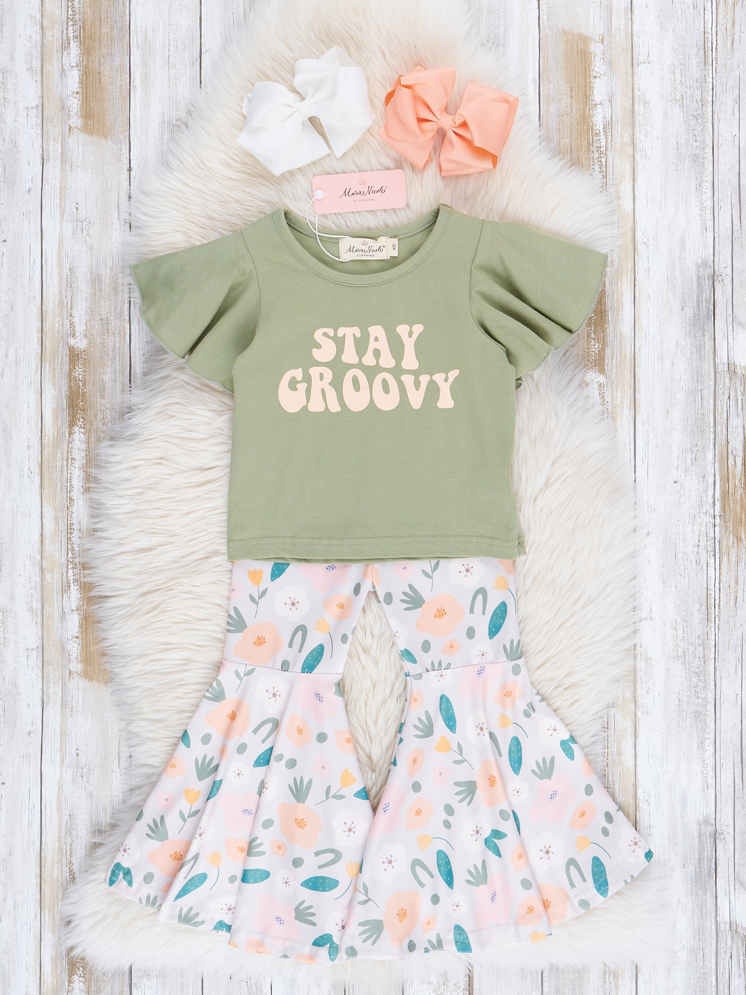 Yellow & Green Groovy Garden Bell Bottom Outfit