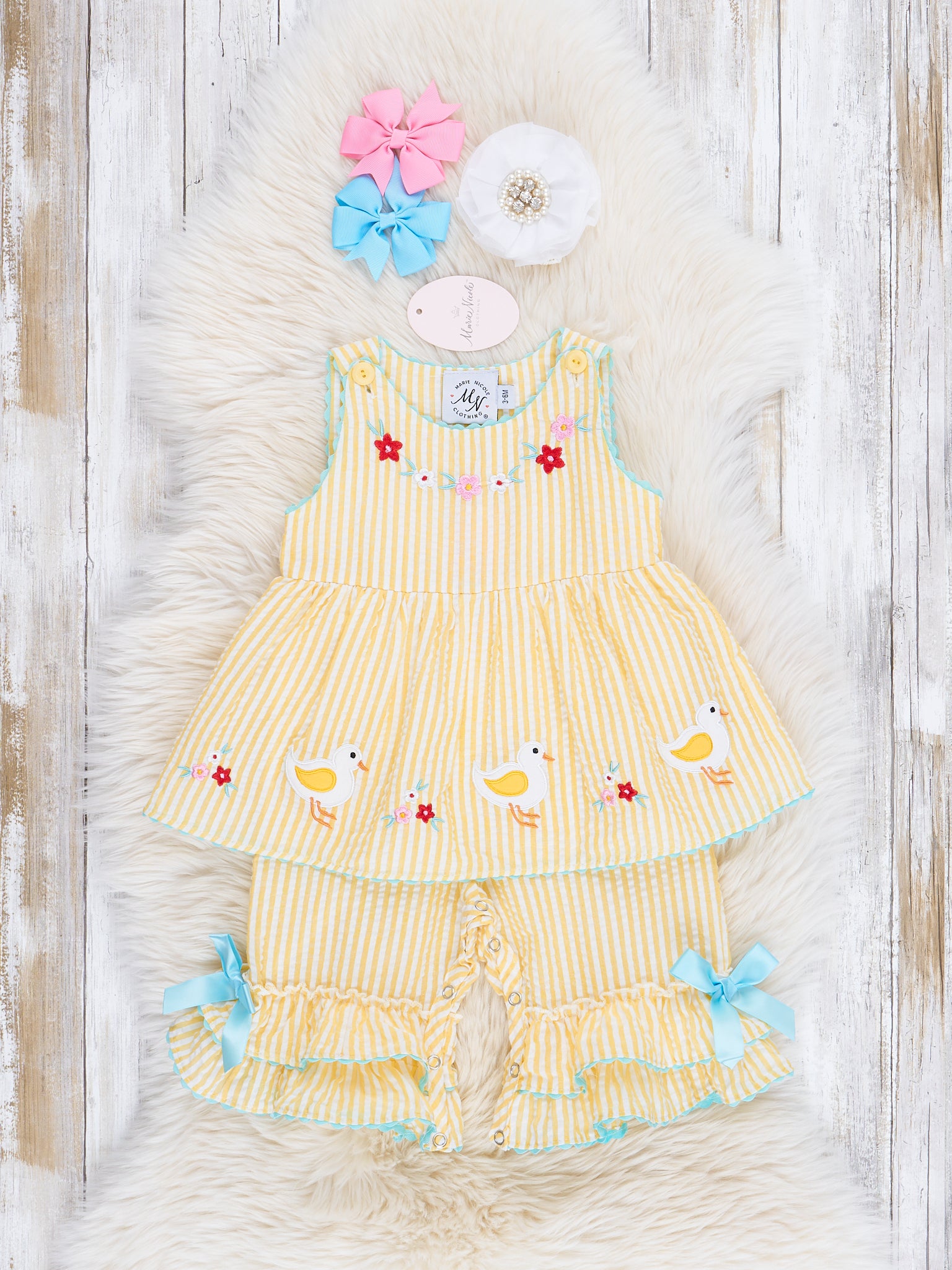 Yellow Gingham Floral Duck Romper
