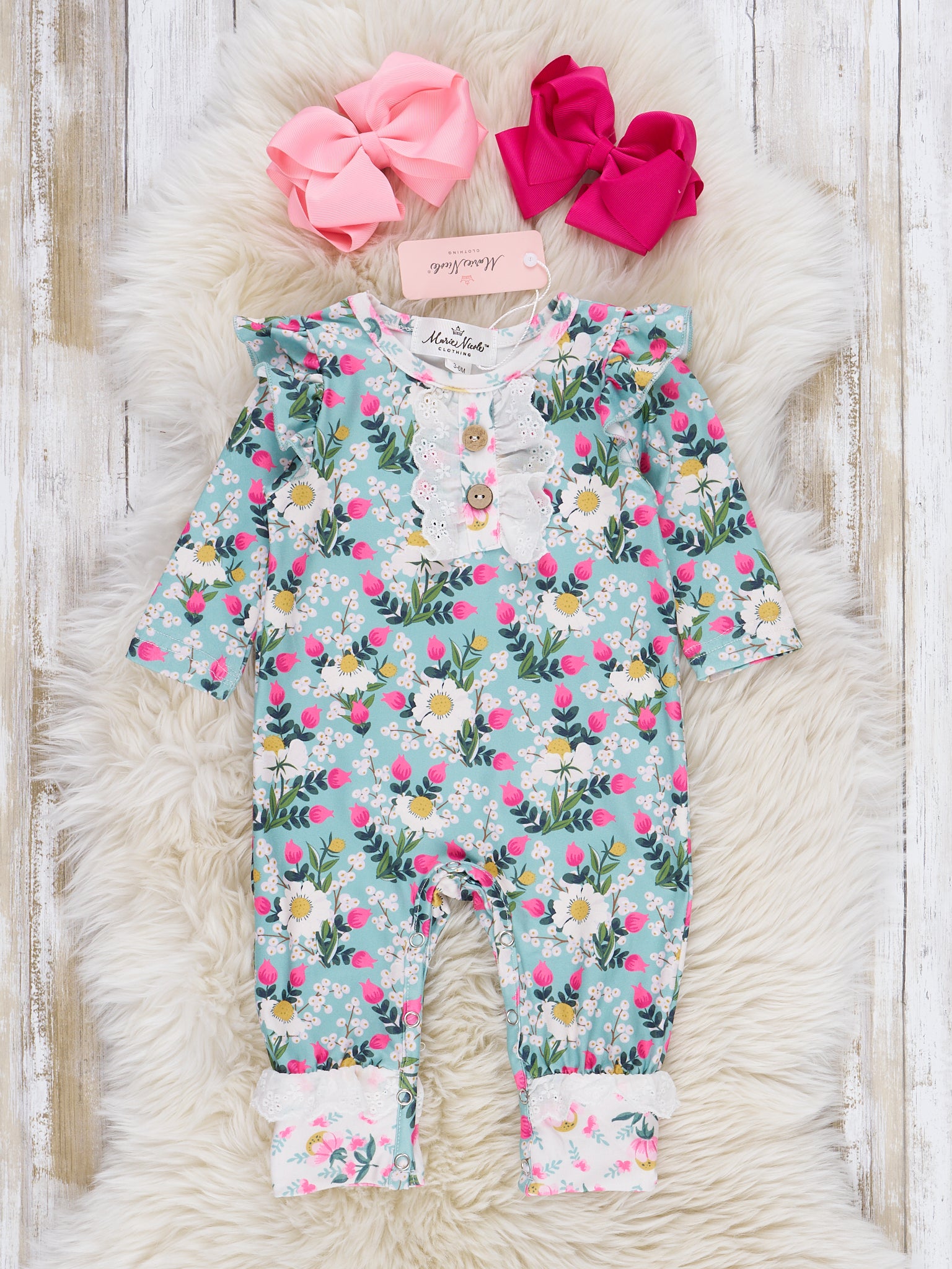 Wildflowers & Teal Dots Ruffle Bubble