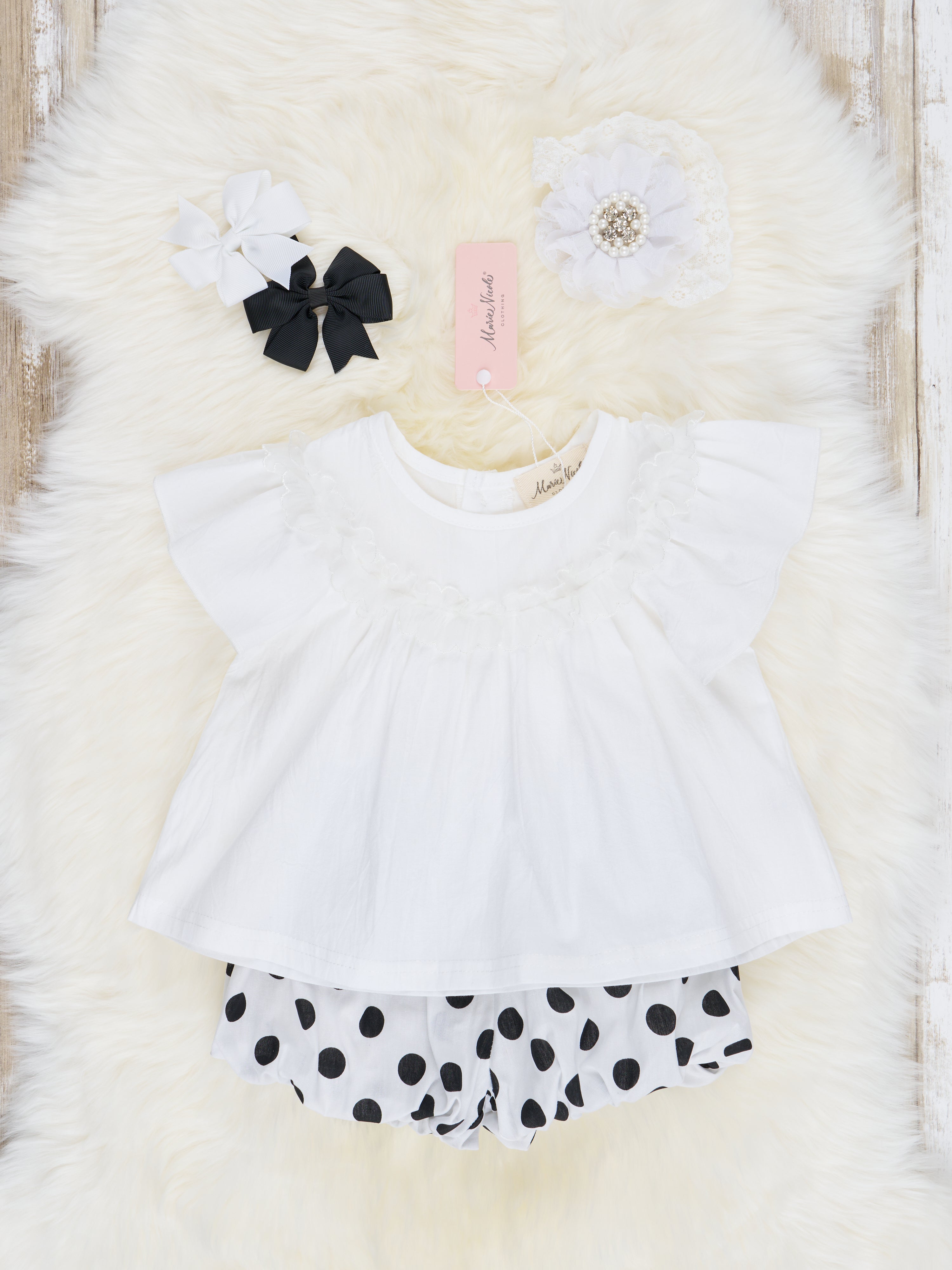 White Top & Polka Dot Bloomers Outfit