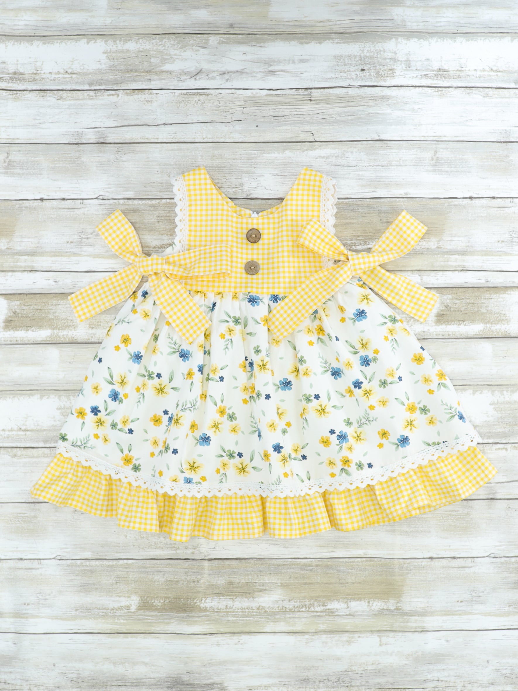 Wildflowers & Yellow Dots Ruffle Dress