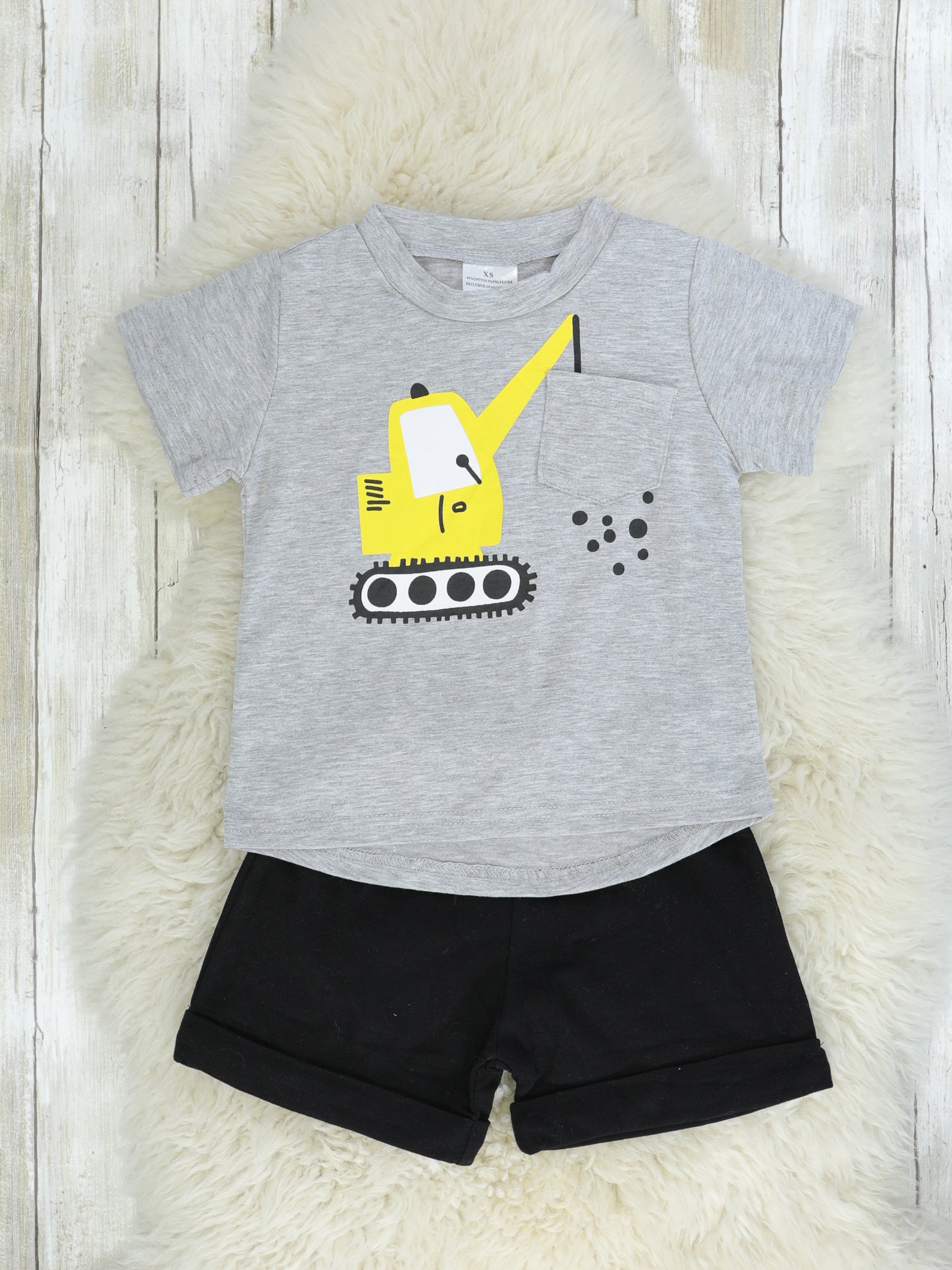 Yellow Check & Green Tractor Top Shorts Outfit