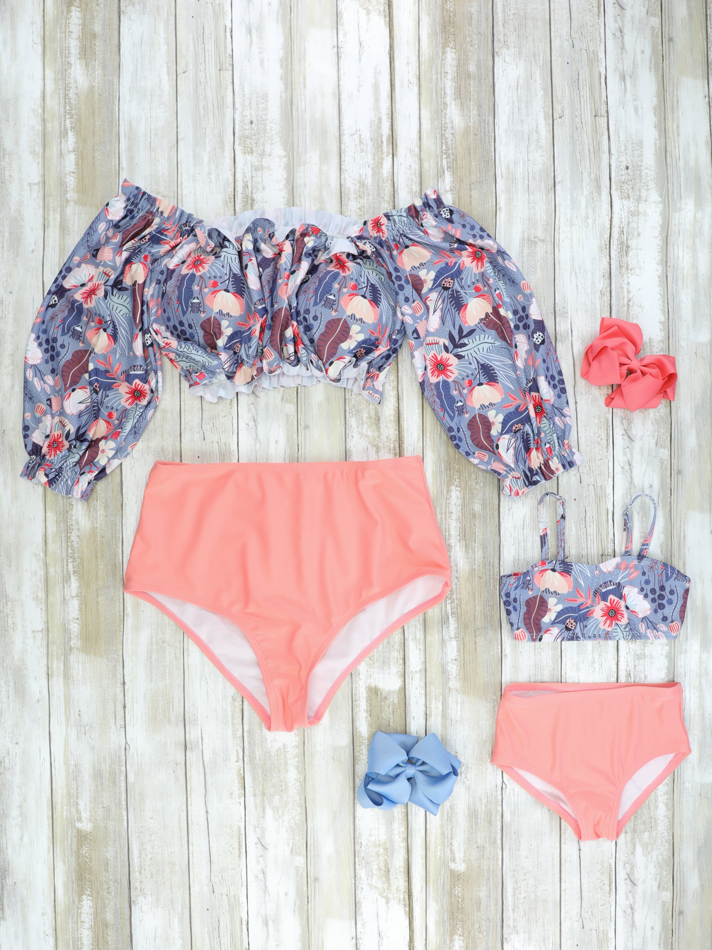 Mom & Me Grey Pink Floral Swimsuit
