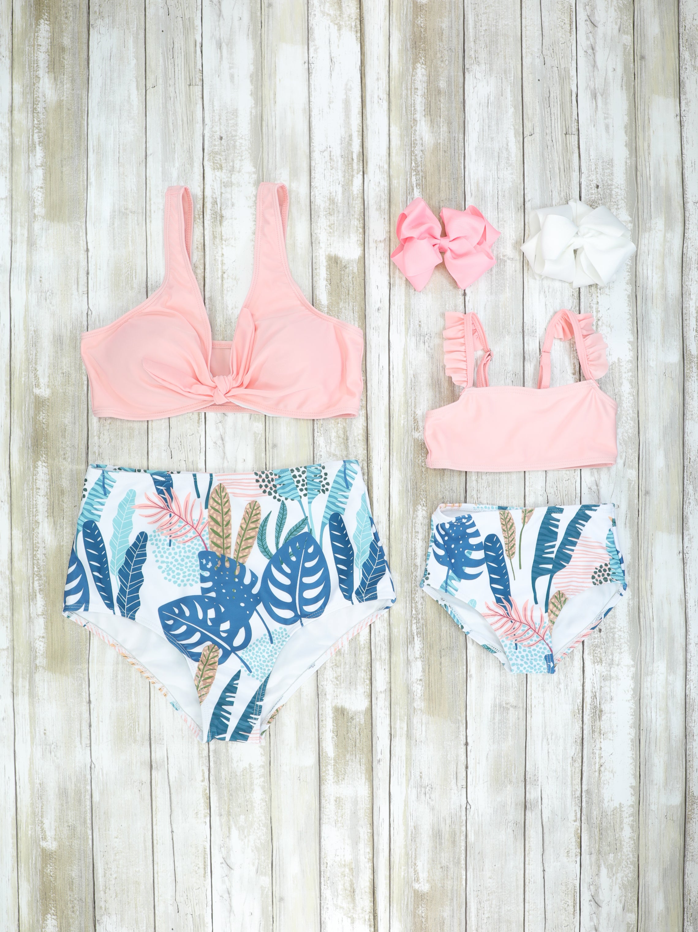 Mom & Me Pink & Blue Tropical Swimsuit