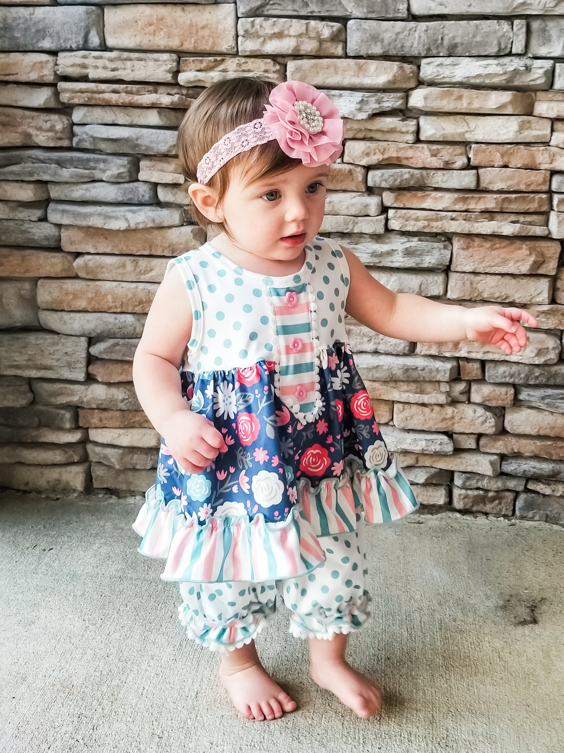 Navy Floral Polka Dotted Outfit