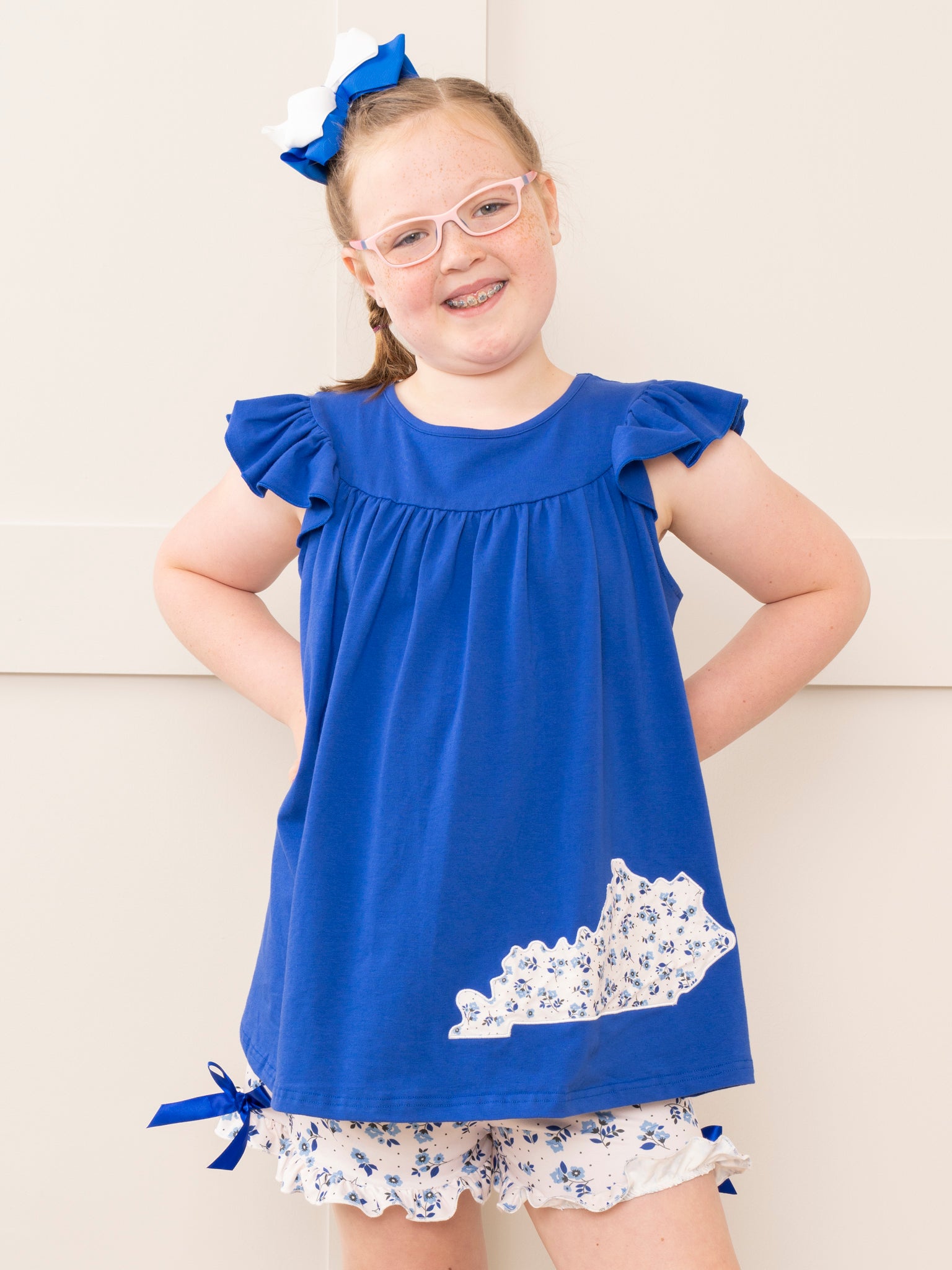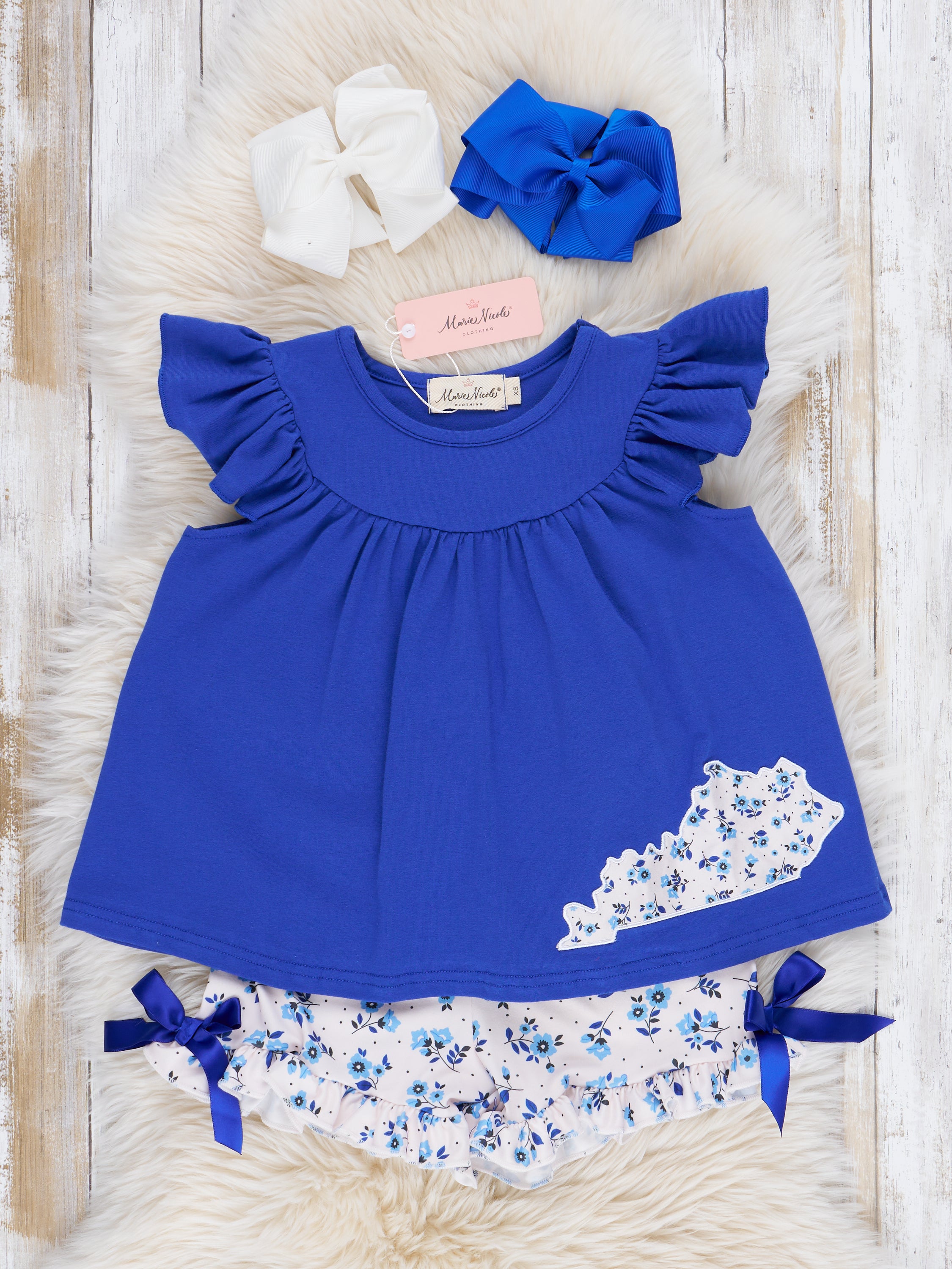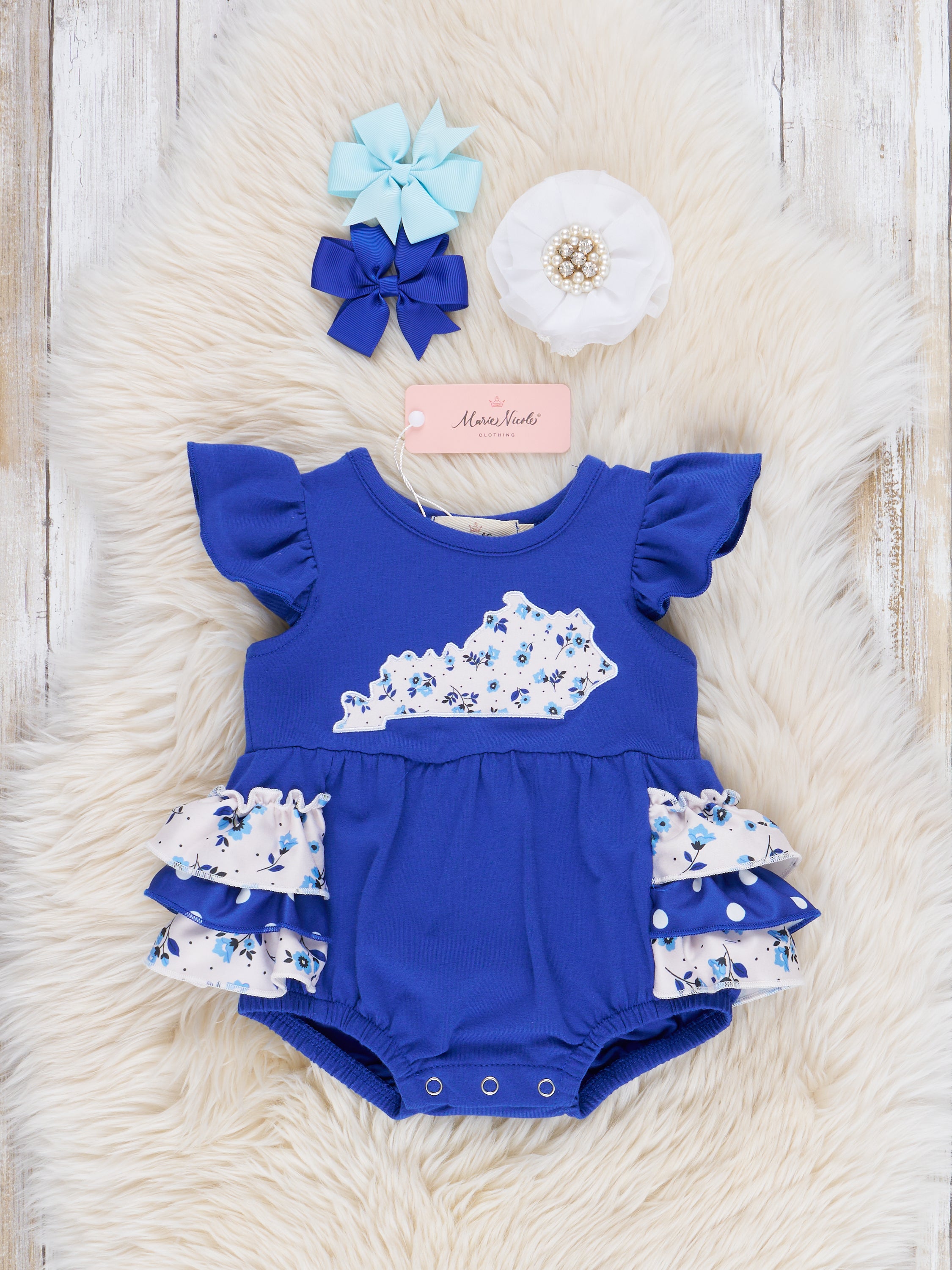 KY Blue Floral Ruffle Outfit