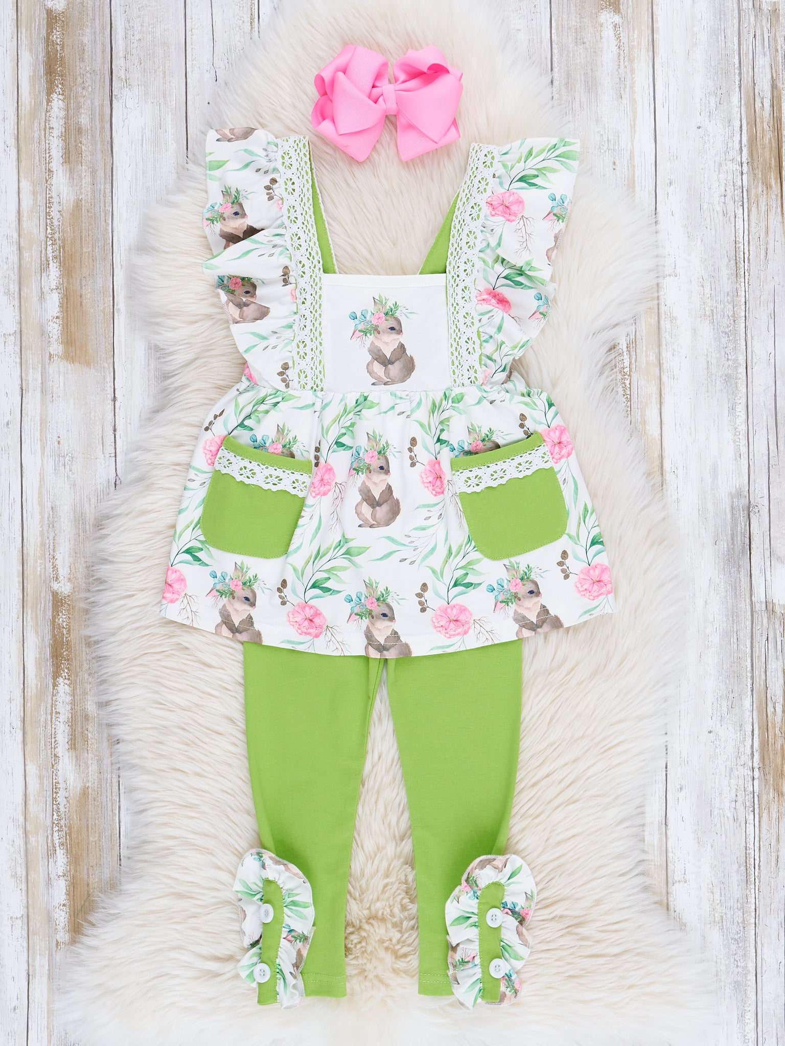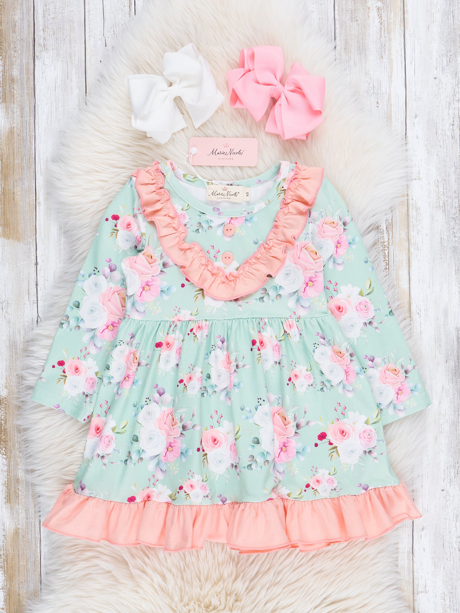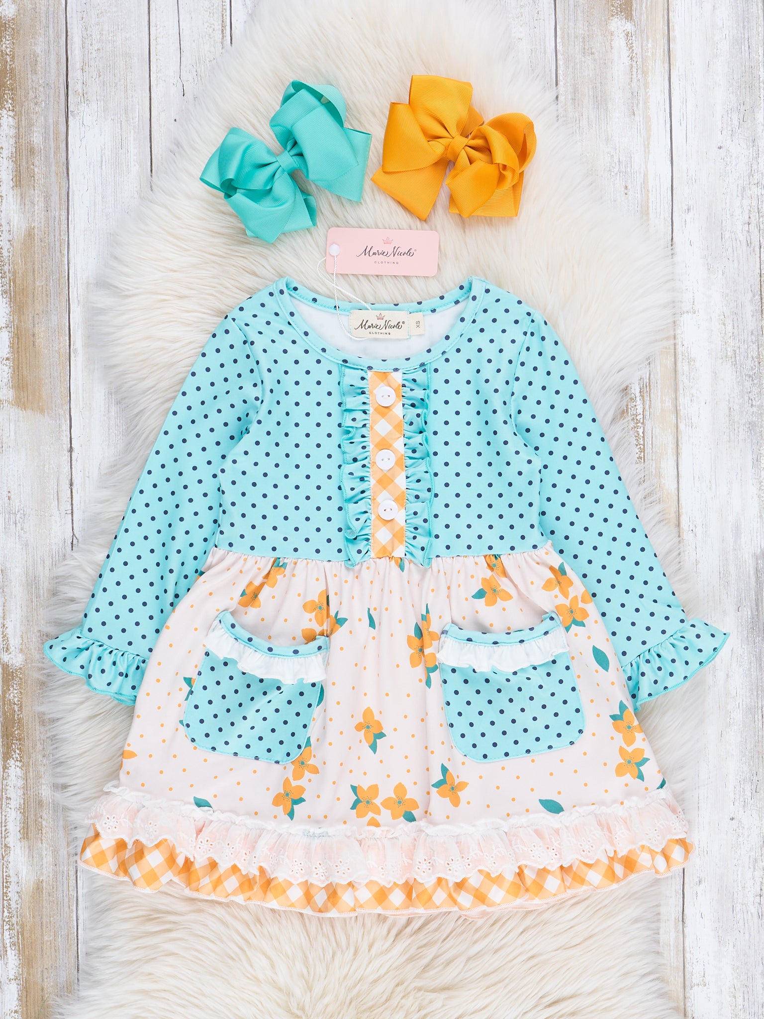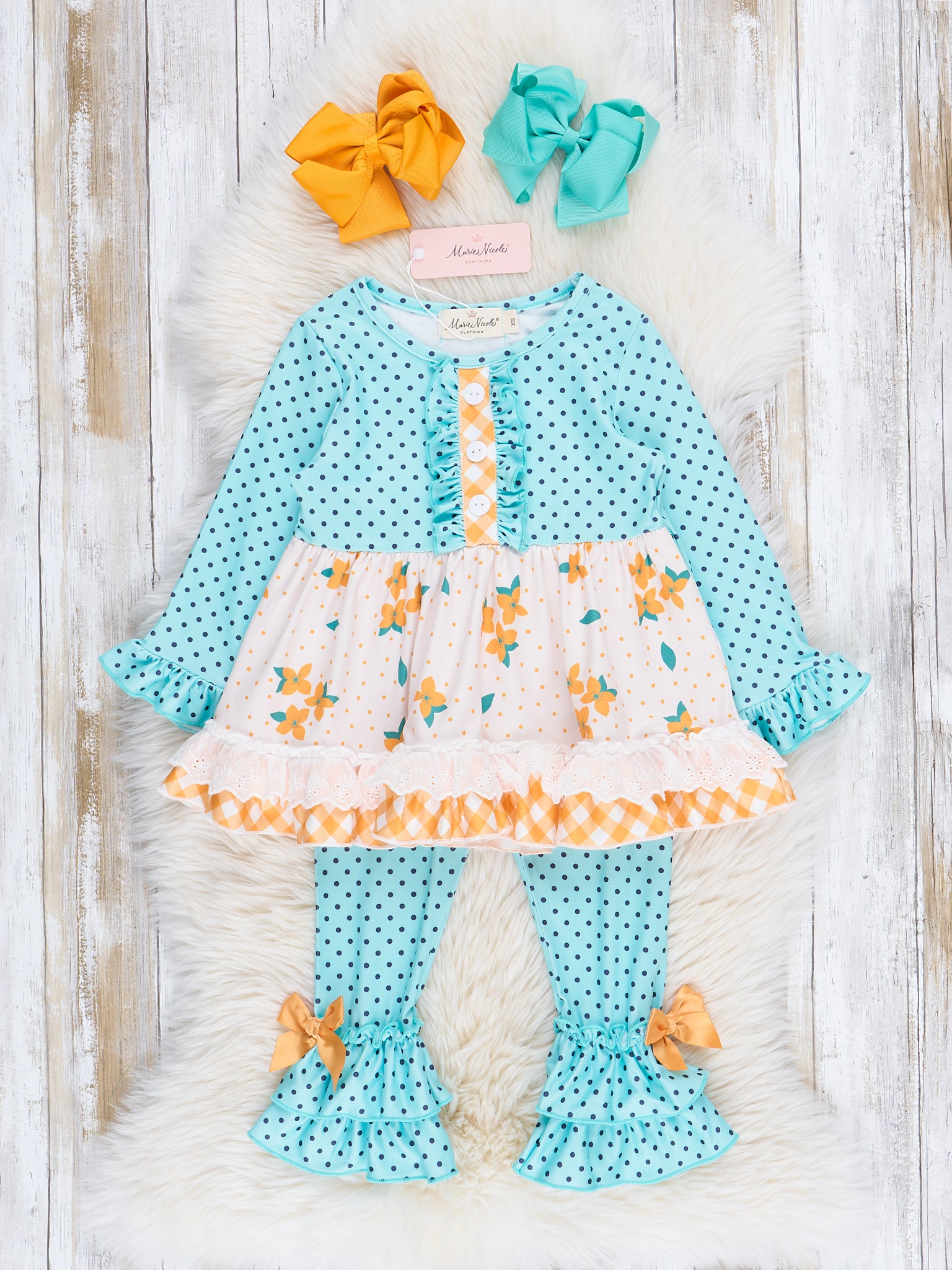 Teal & Orange Watercolor Florals Ruffle Outfit