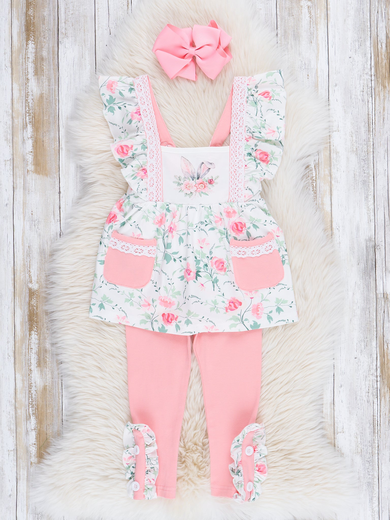Peach & Chambray Ruffle Outfit w/ Skirt