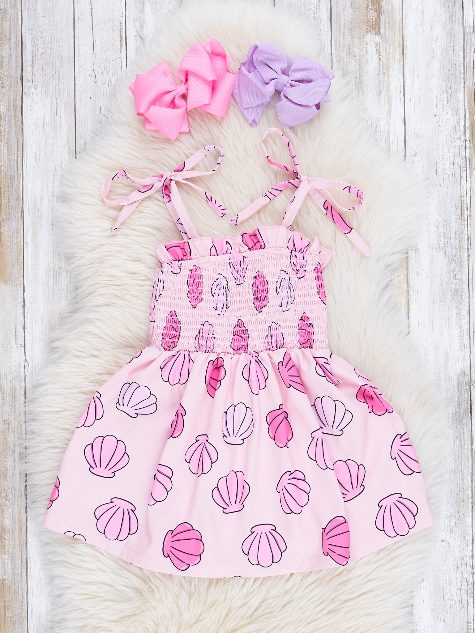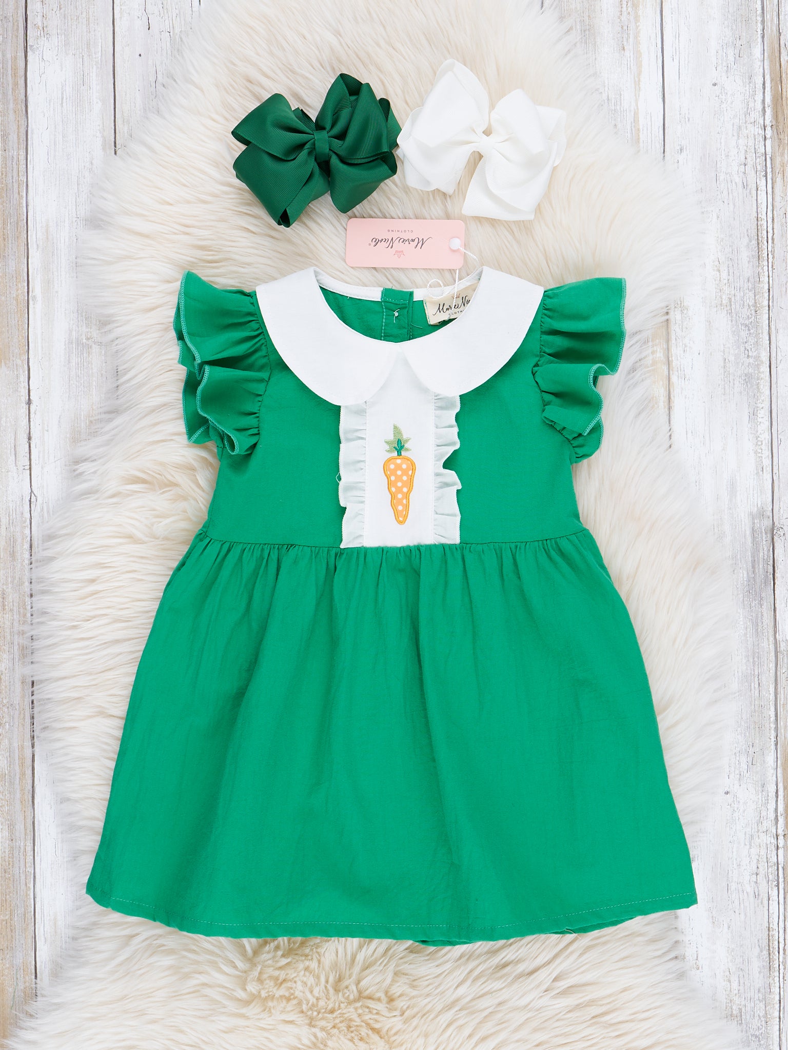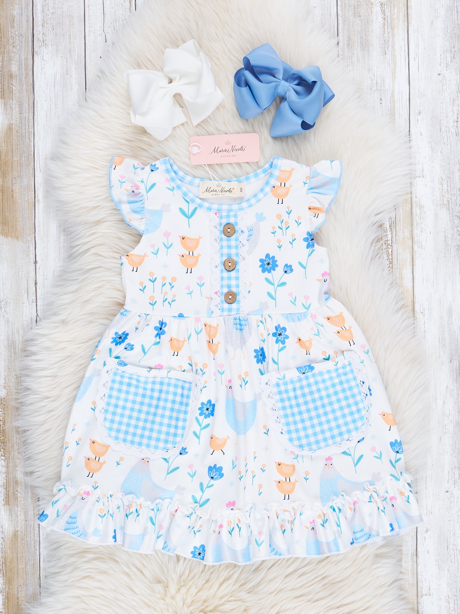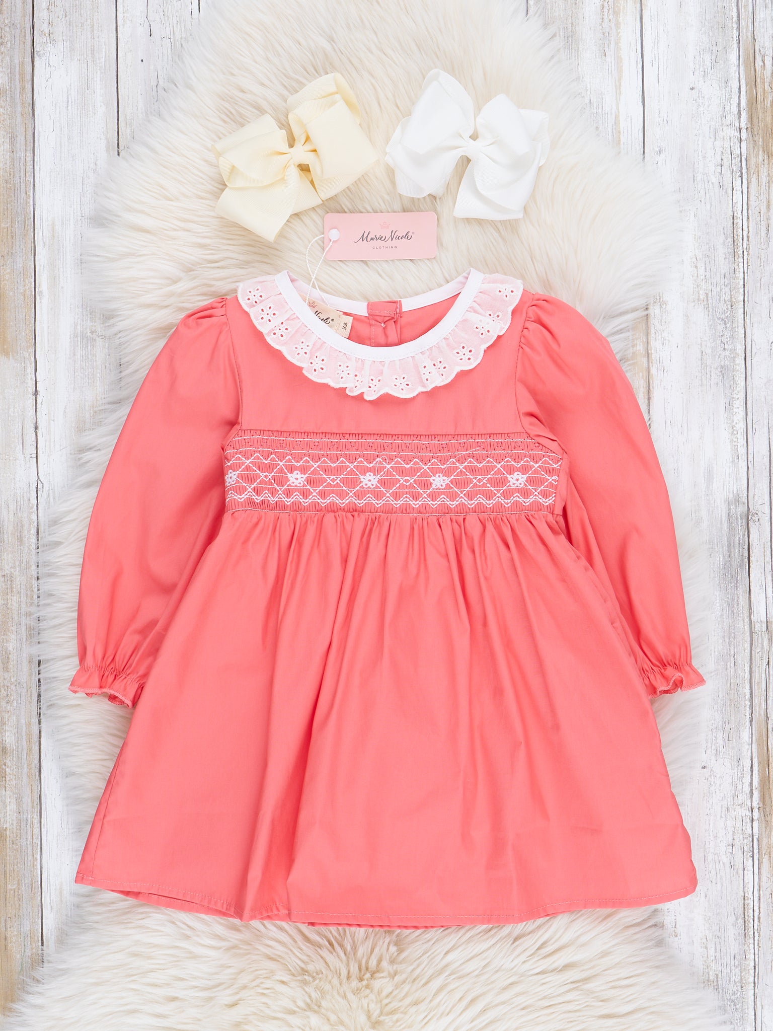 Bright Pink Embroidered Bunnies Ruffle Dress