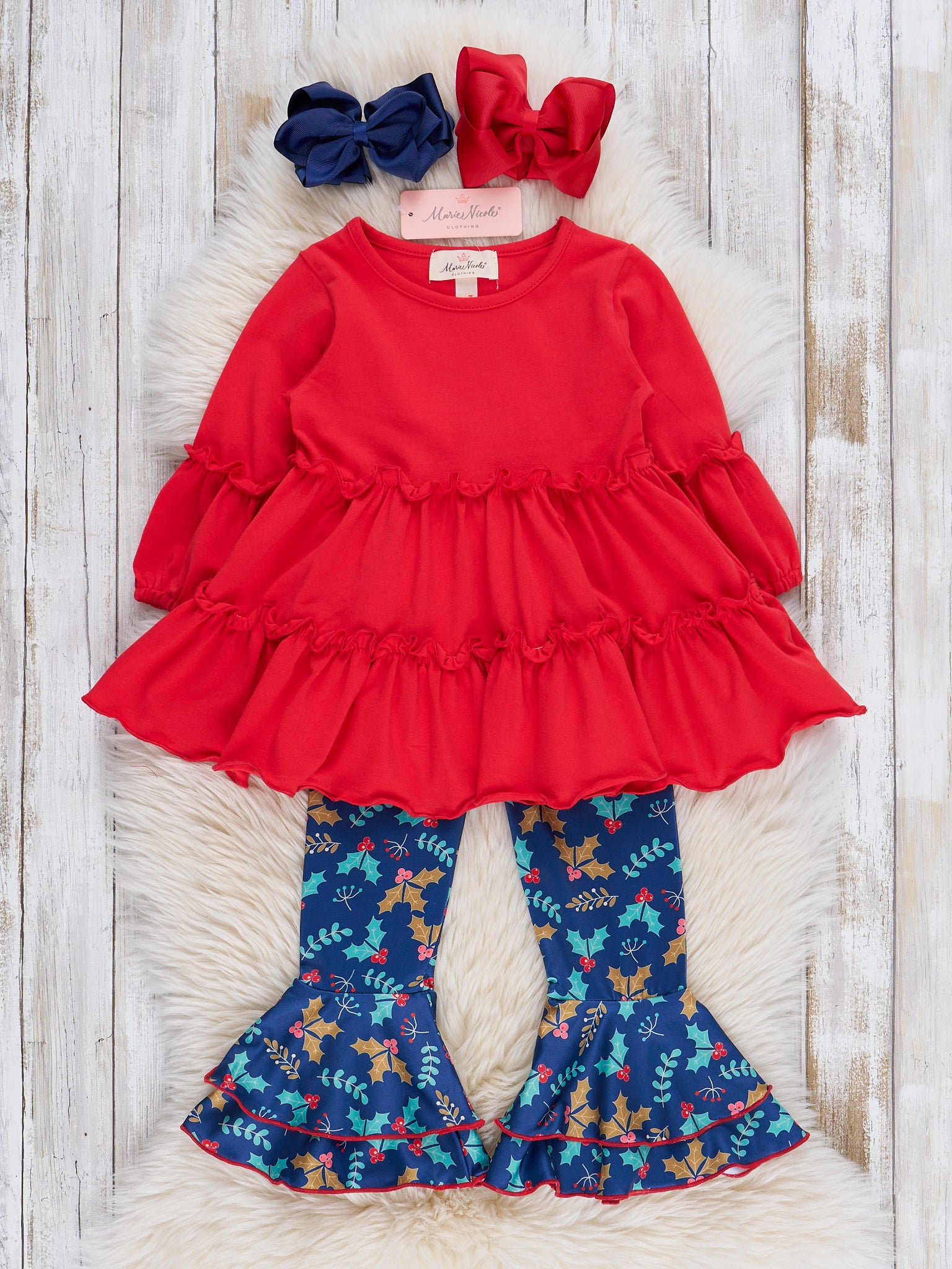 Red Holiday Berries Ruffle Bell Bottom Outfit