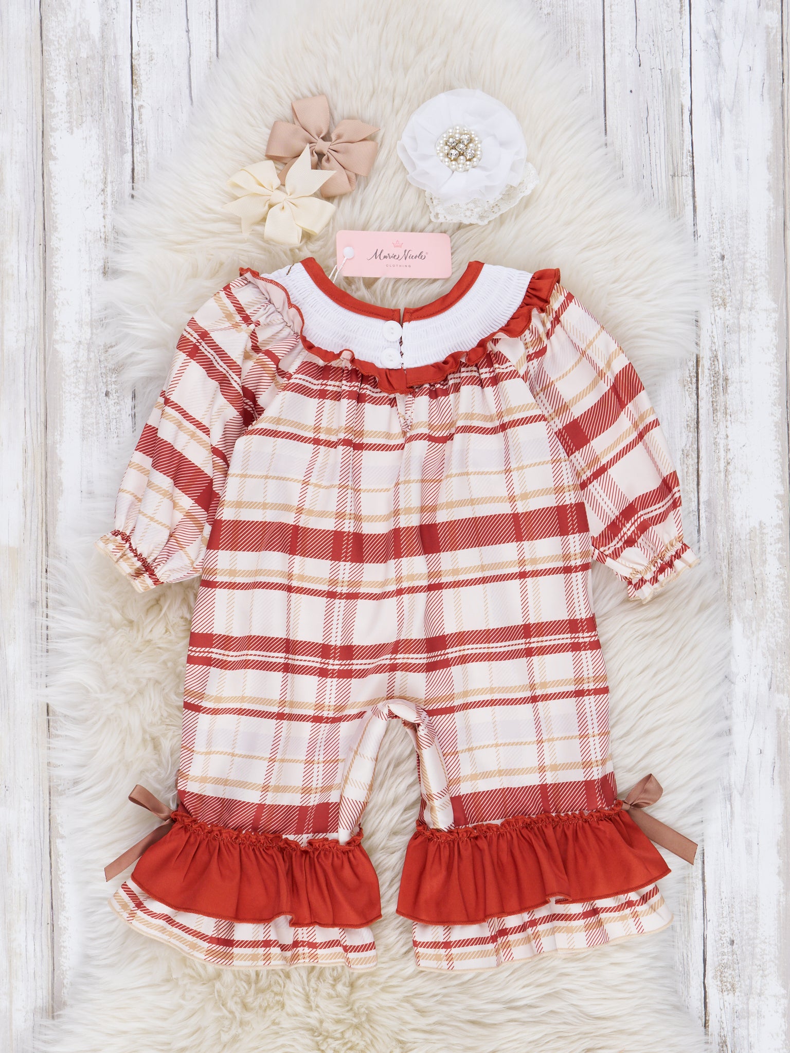 Maroon Plaid Smocked Turkey Ruffle Romper
