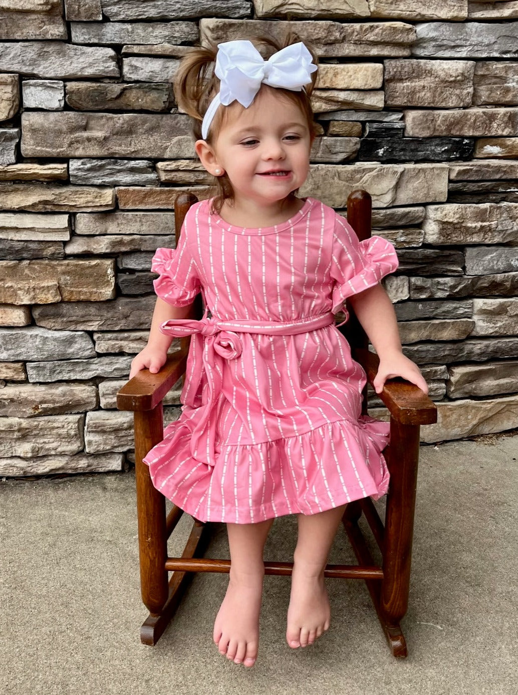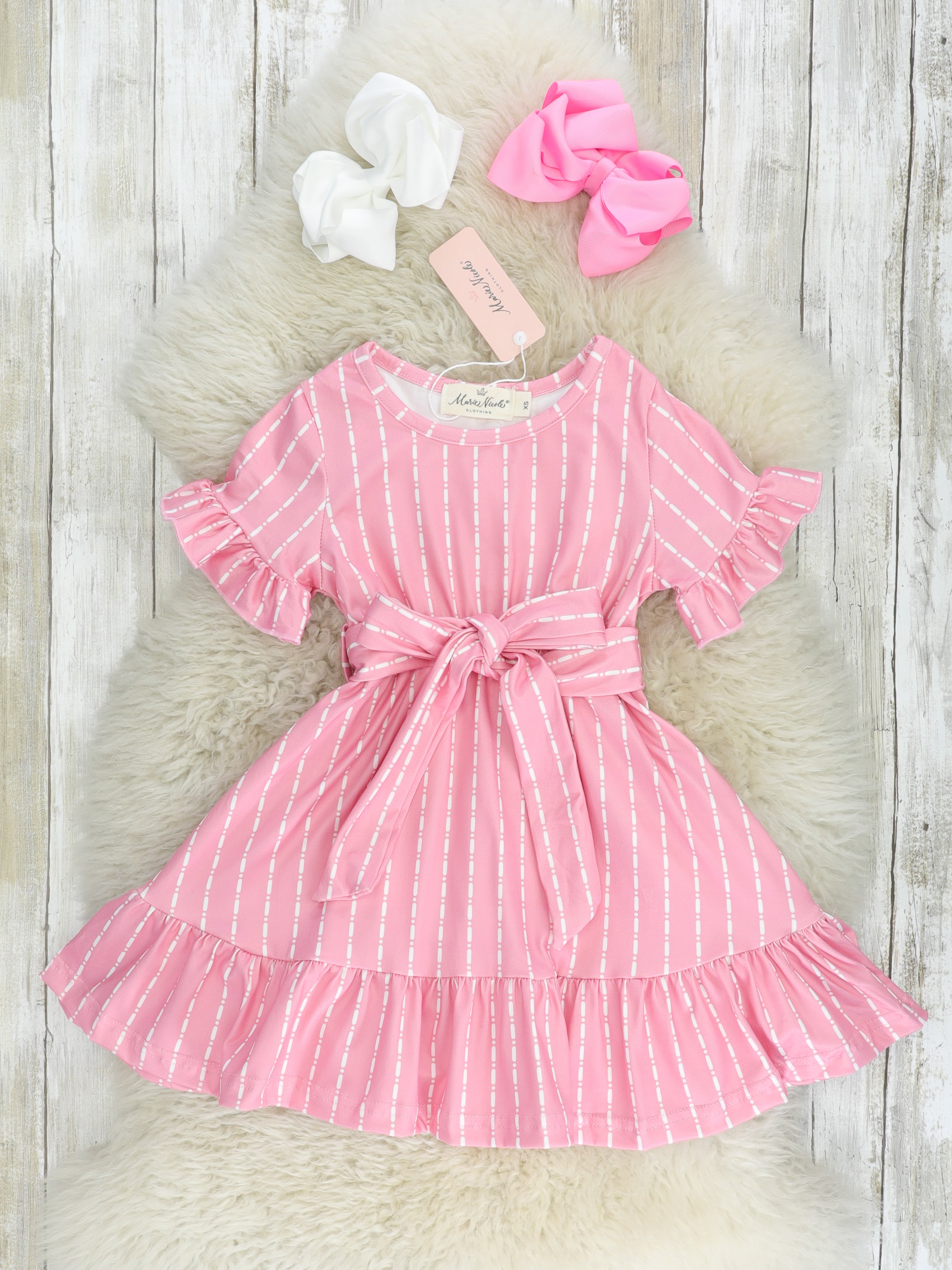 You & your mini will feel pretty in pink with these stunning dresses! These pink dressed feature darling stripes, ruffle trim, & an adjustable tie at the waist.