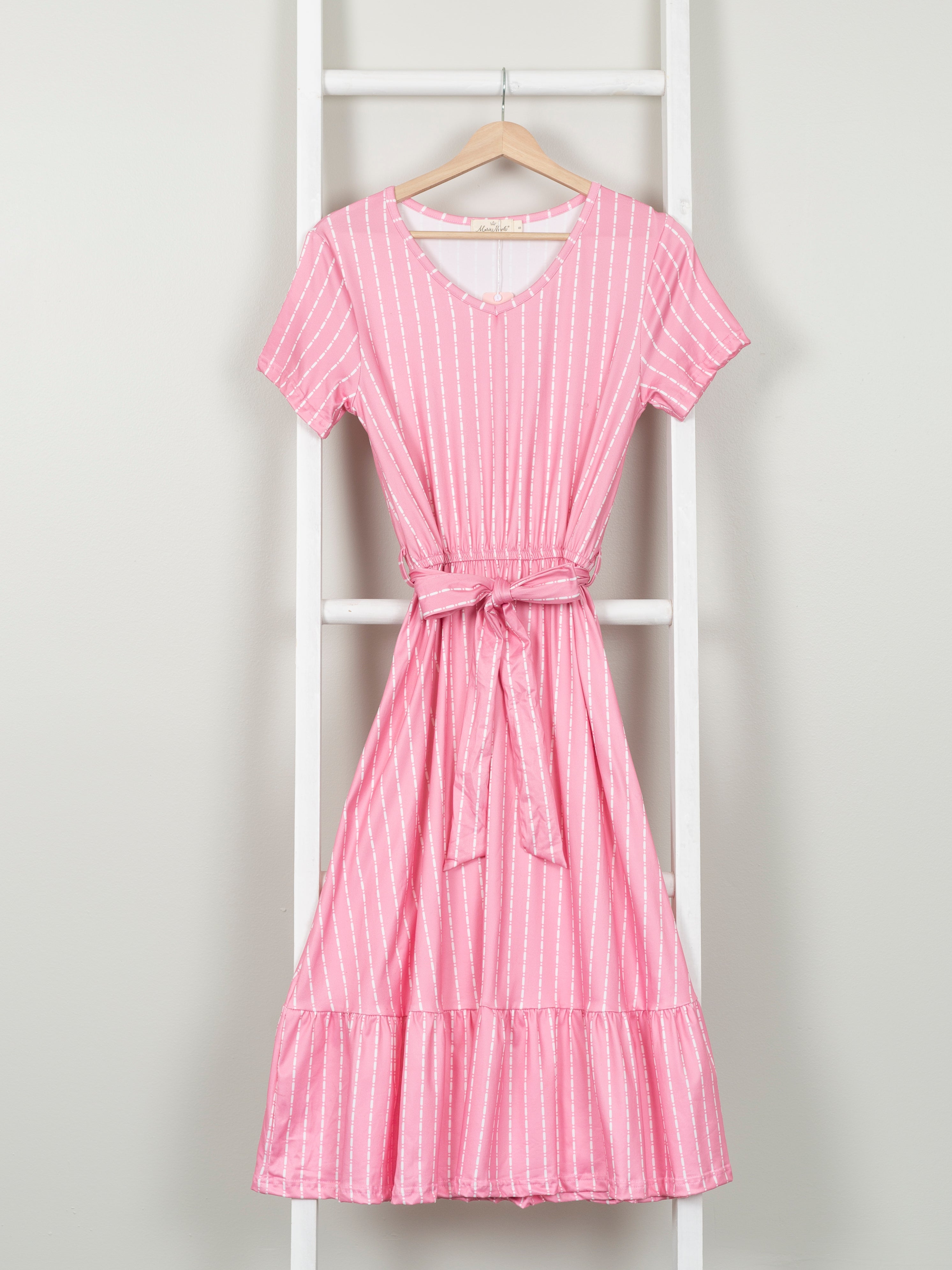 Mom & Me Pink Striped Tie Ruffle Dress