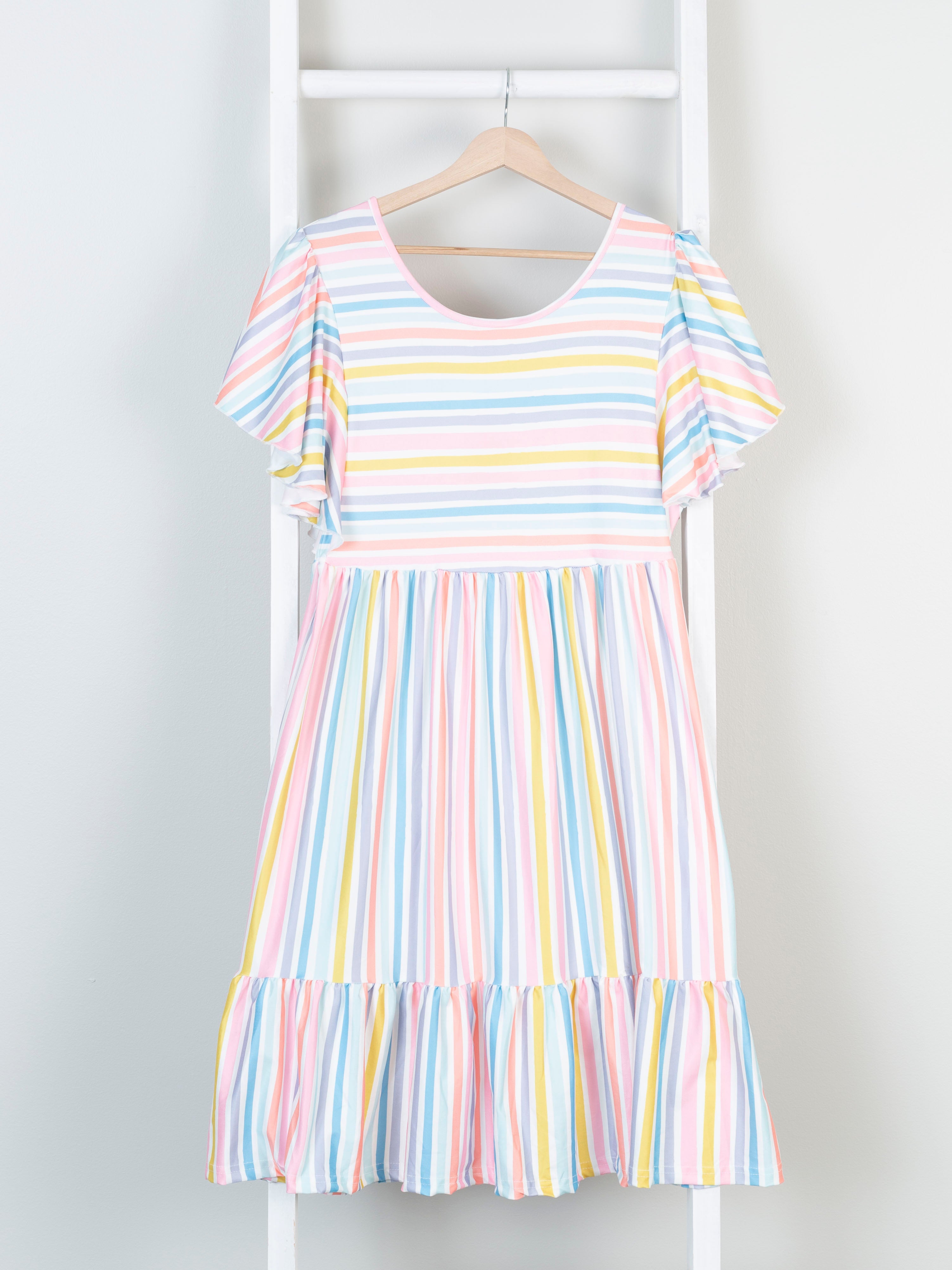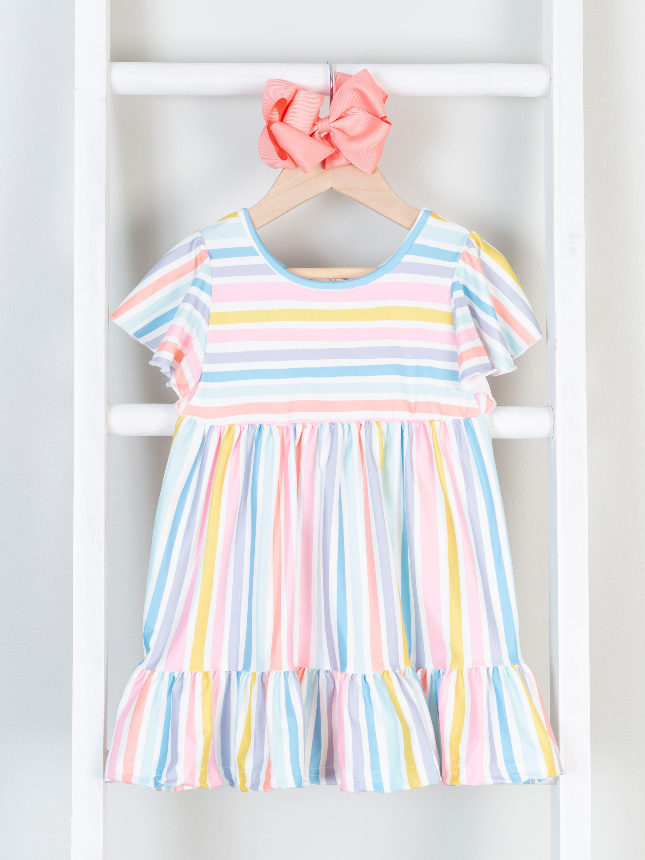 You've found the best mom & me dress for spring and summer! These tiered dresses feature the sweetest stripes & ruffle trim.
