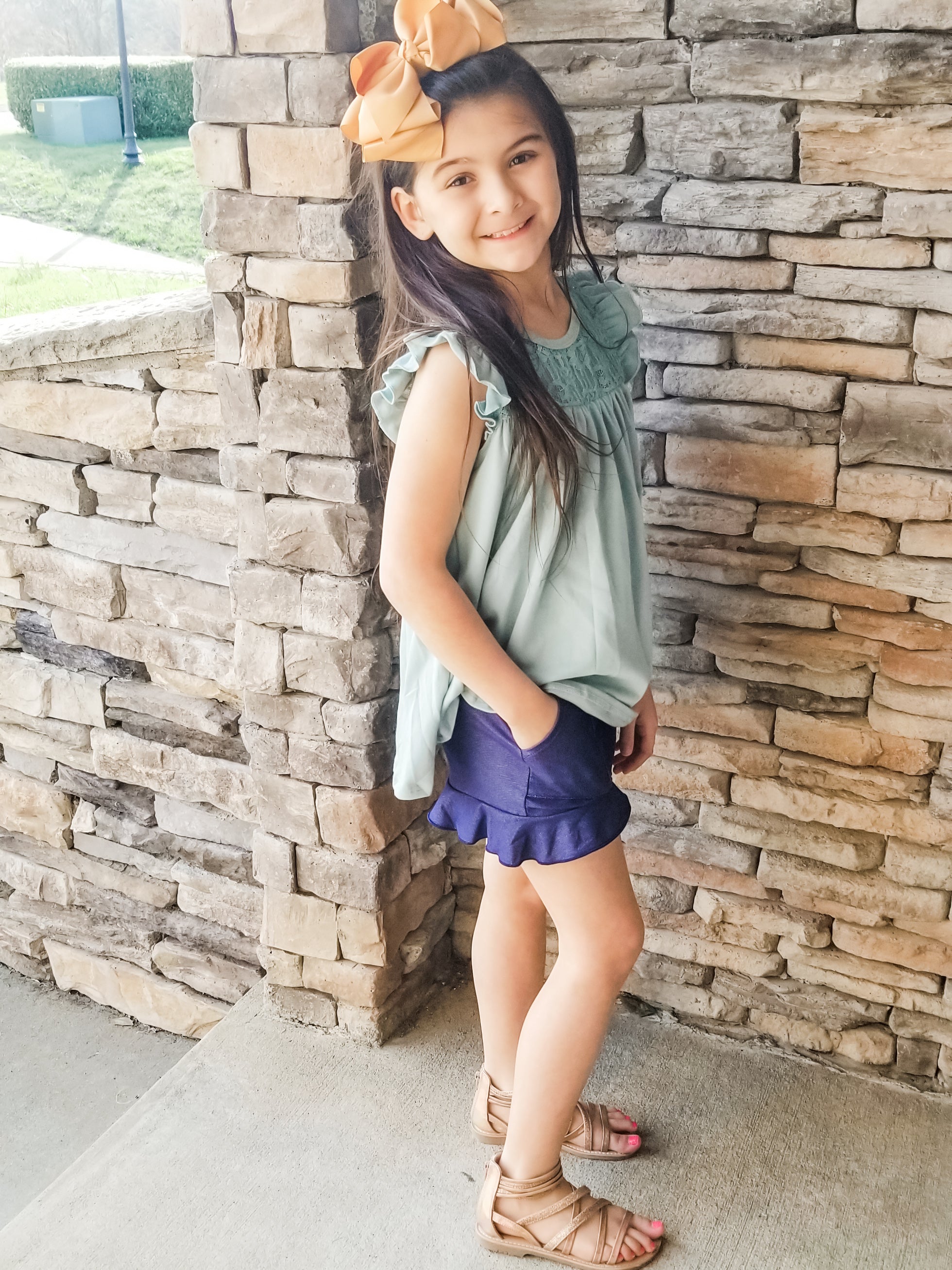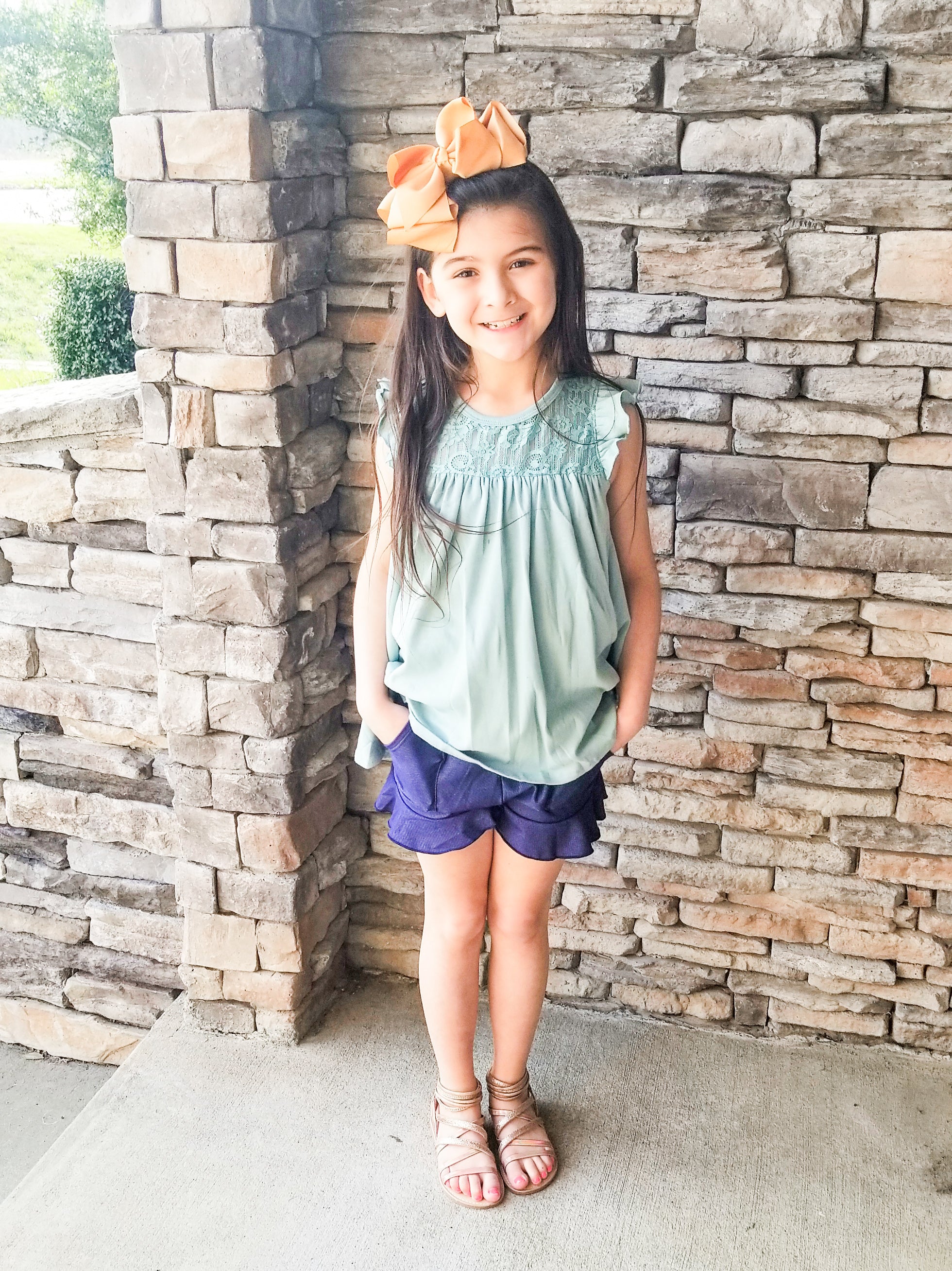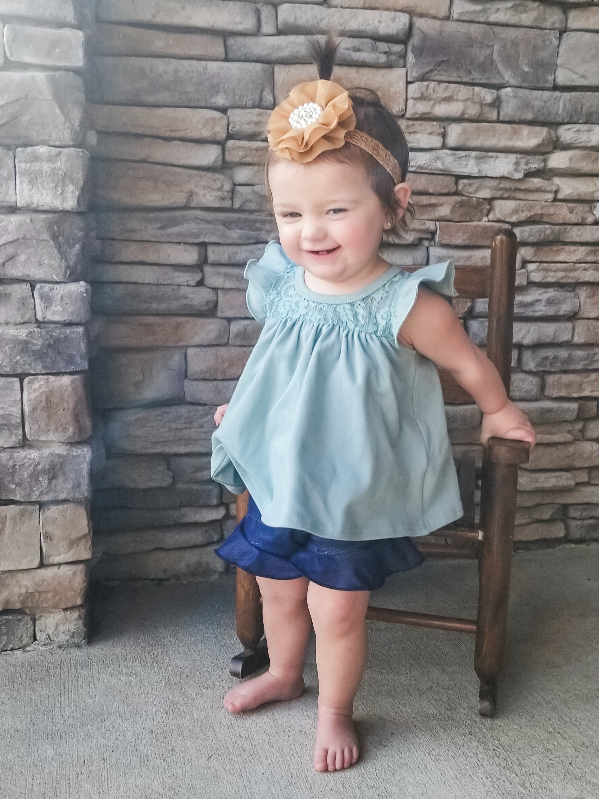 Kaylee is 21 pounds, 29 inches tall wearing a size 12/18MOS.