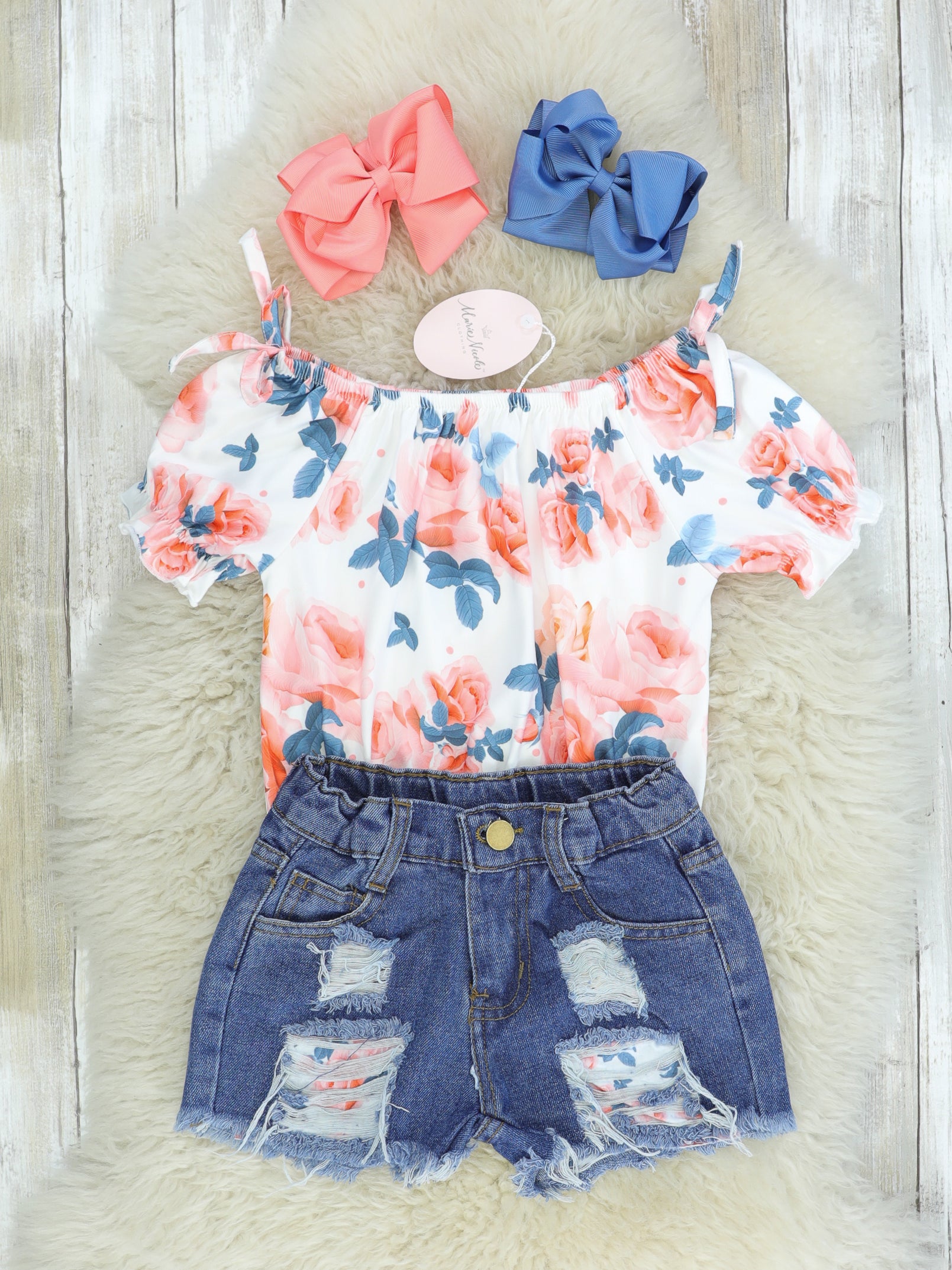 There's nothing cuter than a little floral top & distressed denim shorts set!