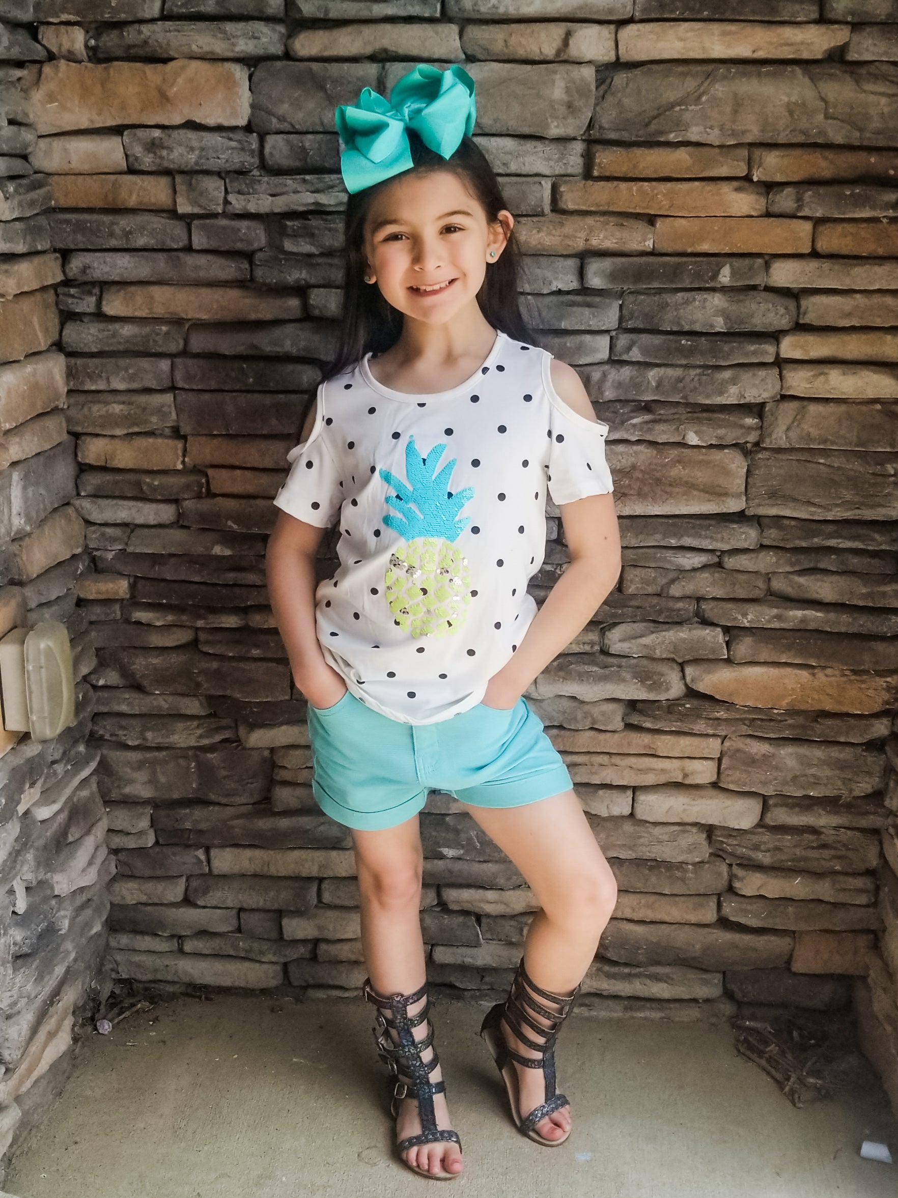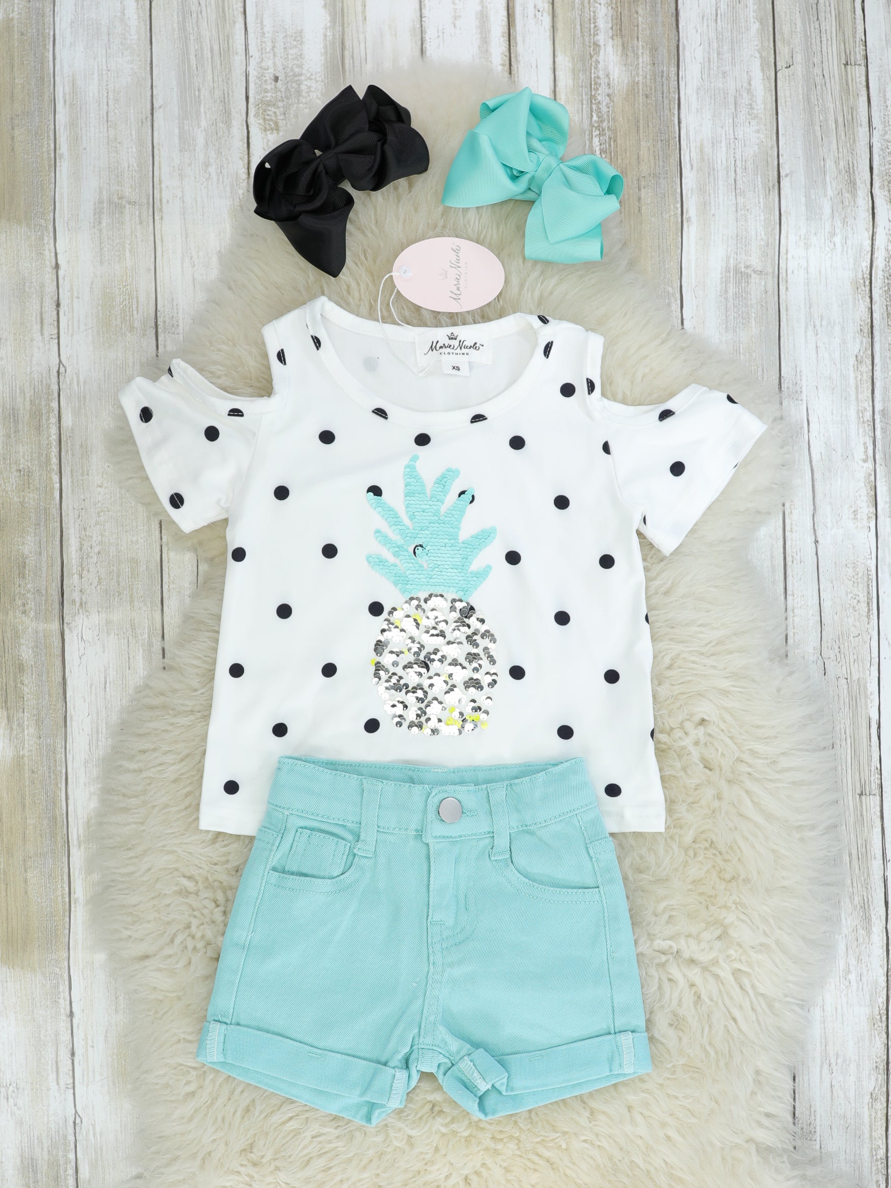 The perfect outfit for your little who's sweet to the core! We love the cold-shouldered details on the top & cute sequin pineapple.