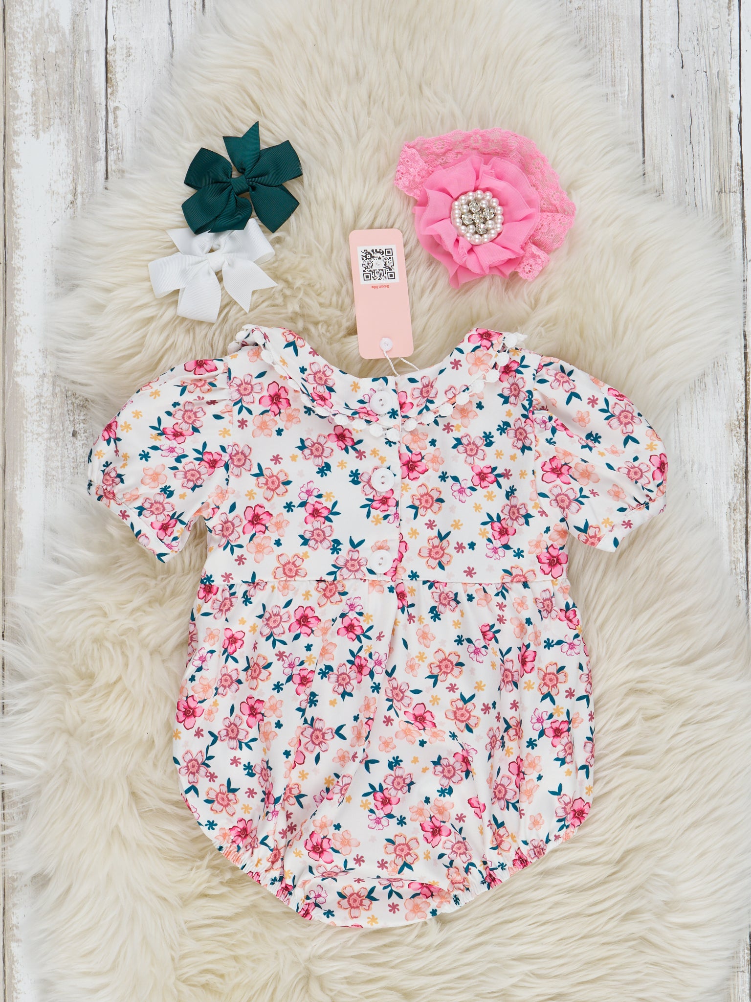 Pink & Yellow Ditsy Flower Smocked Bubble