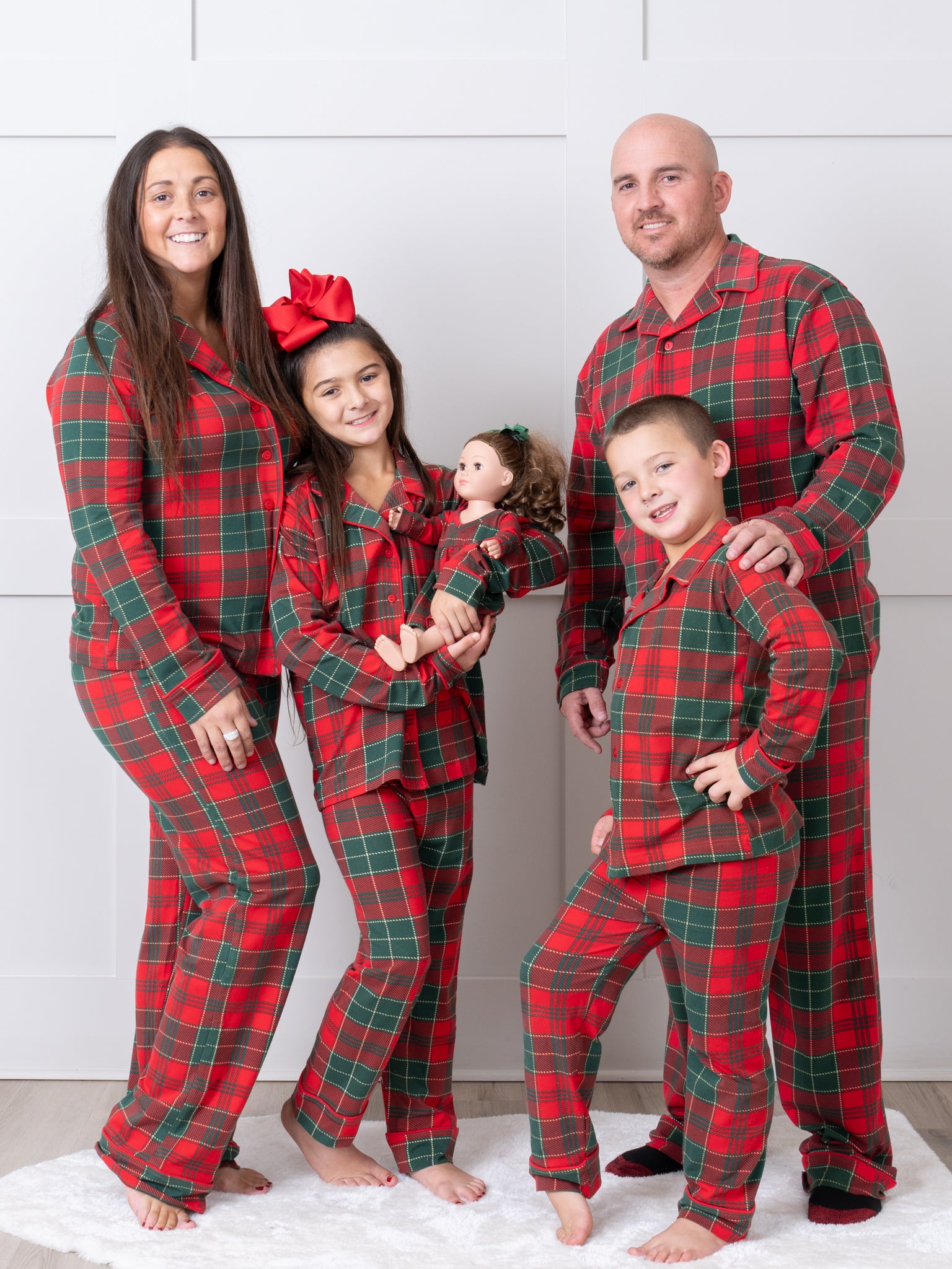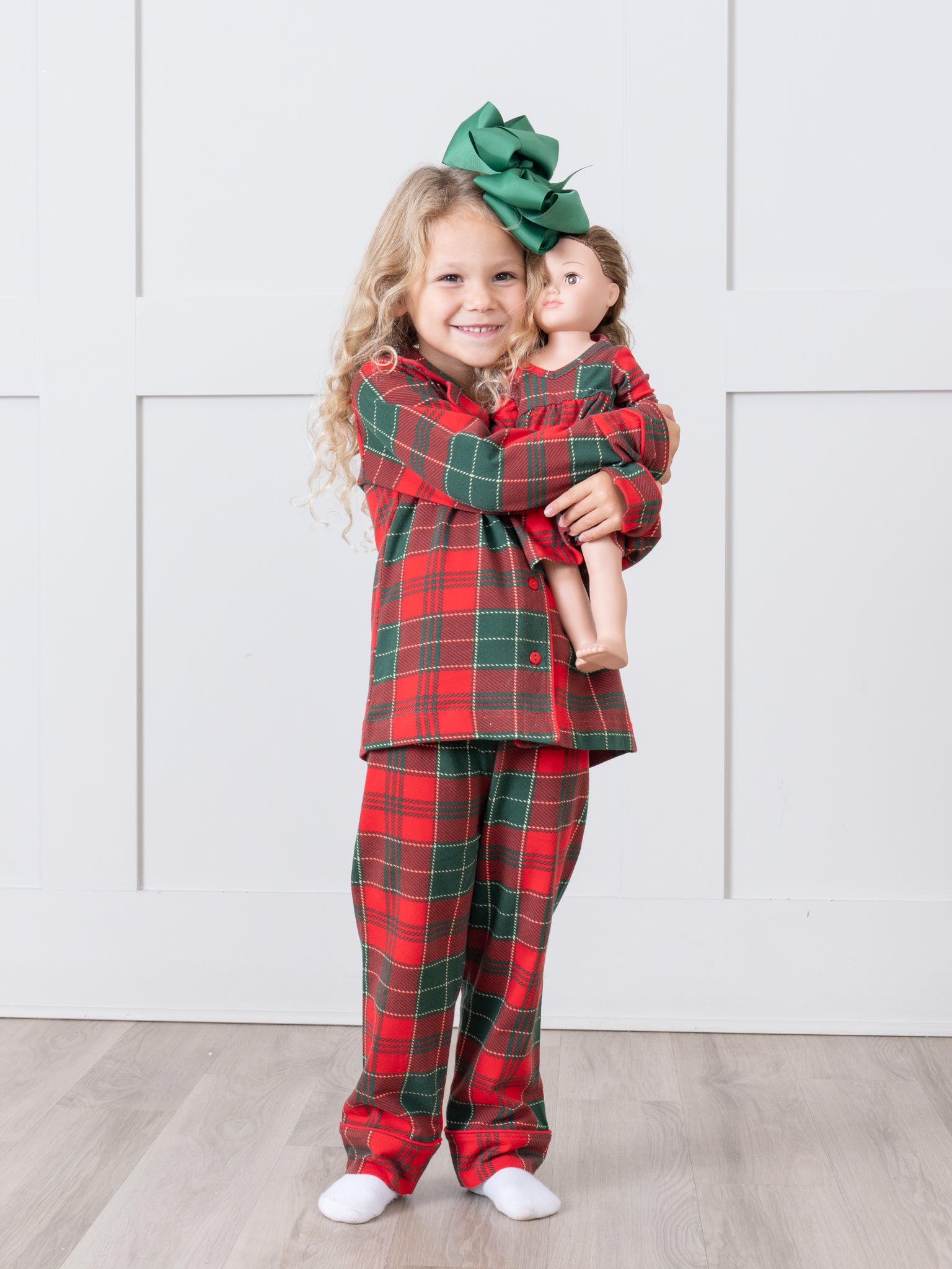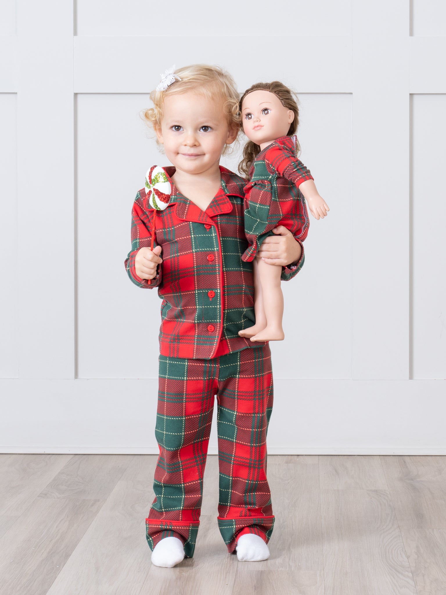 The Red & Green Plaid Baby Doll Night Gown is a matching gown for their favorite doll, making for a night of sweet dreams and even sweeter style. Make bedtime a blast! Shop the matching pajamas here.
