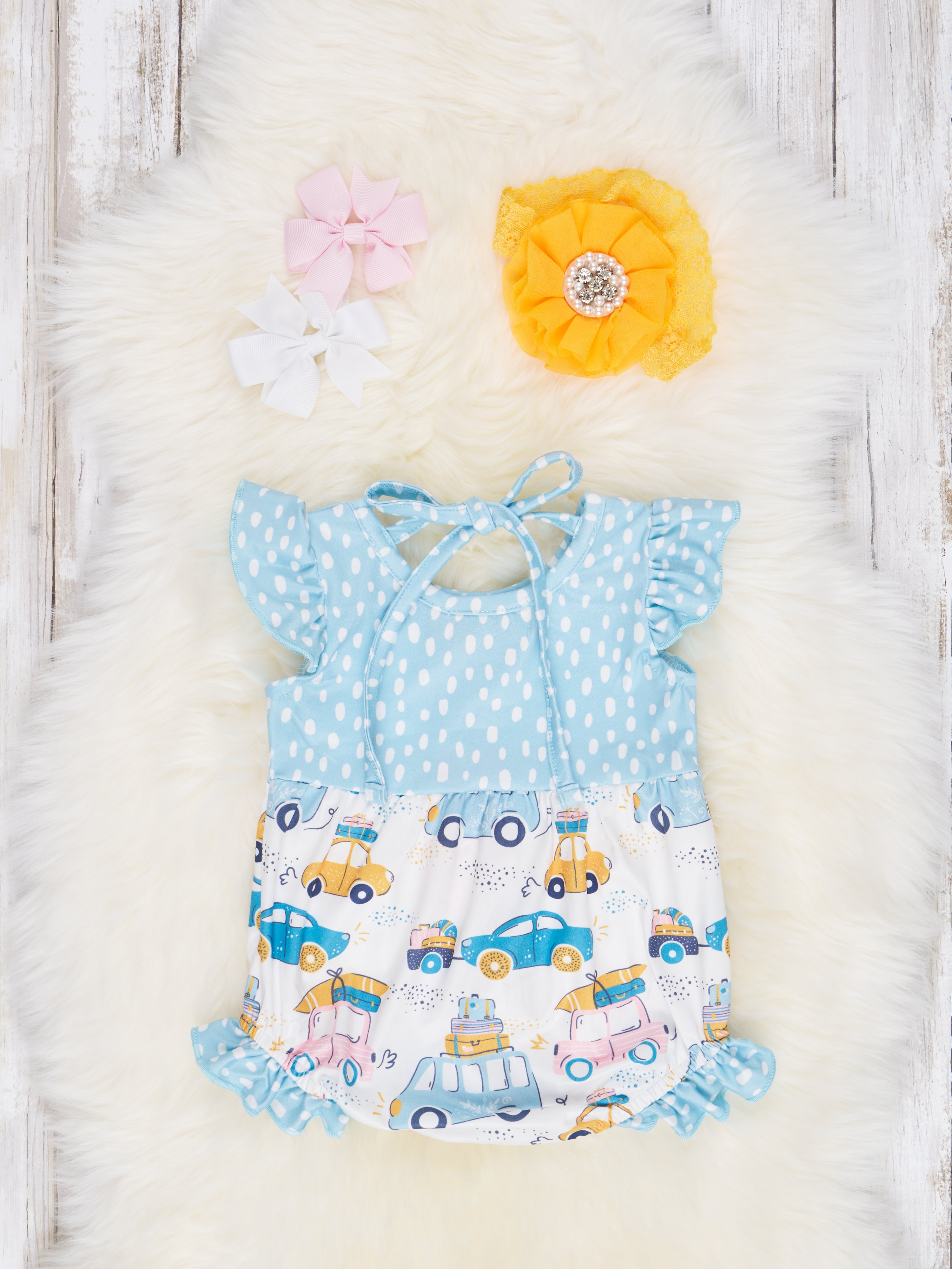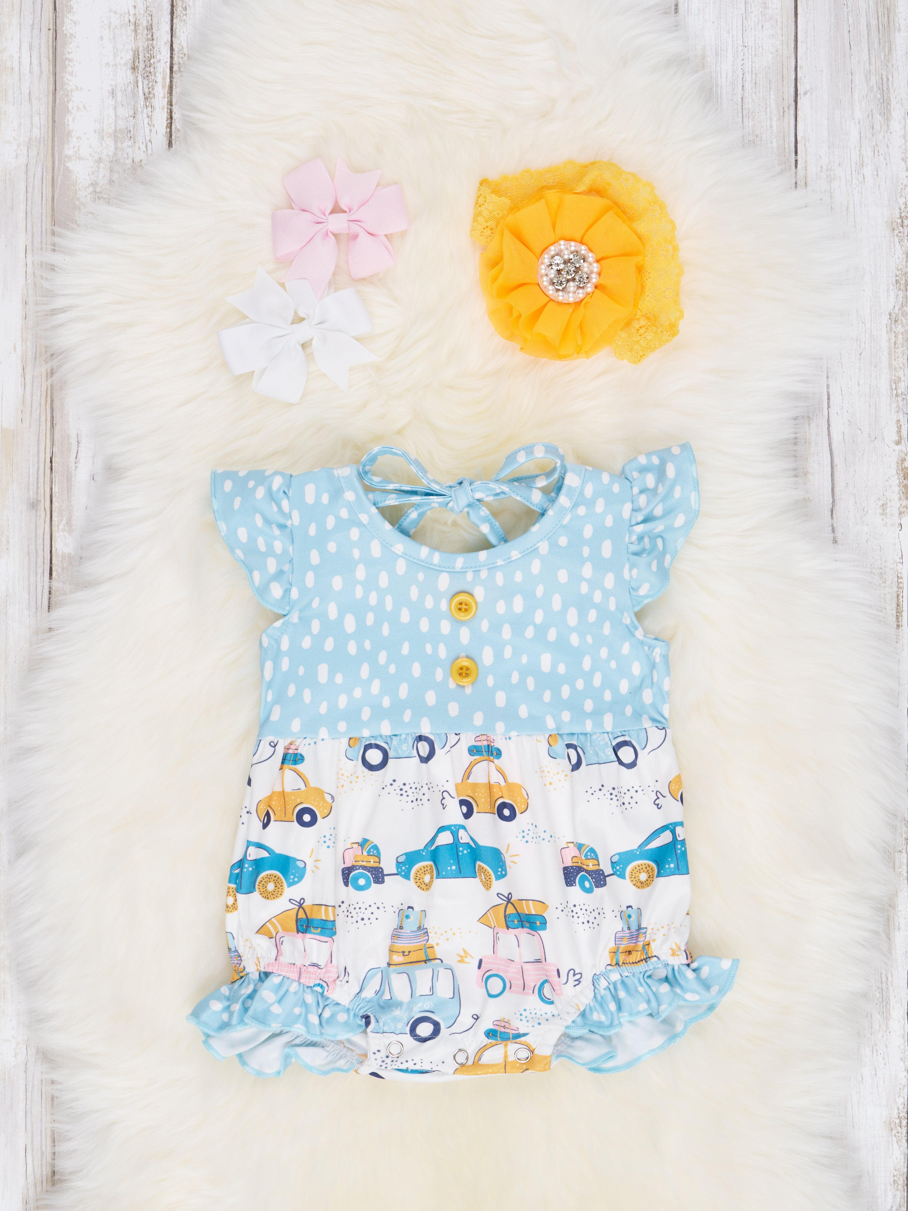 Take your little ones on a fashion road trip with this adorable sister set! Made with a playful "road trip" print and sweet ruffles, it's the perfect way to make your girls look stylish and ready to explore. Where will their imagination take them?