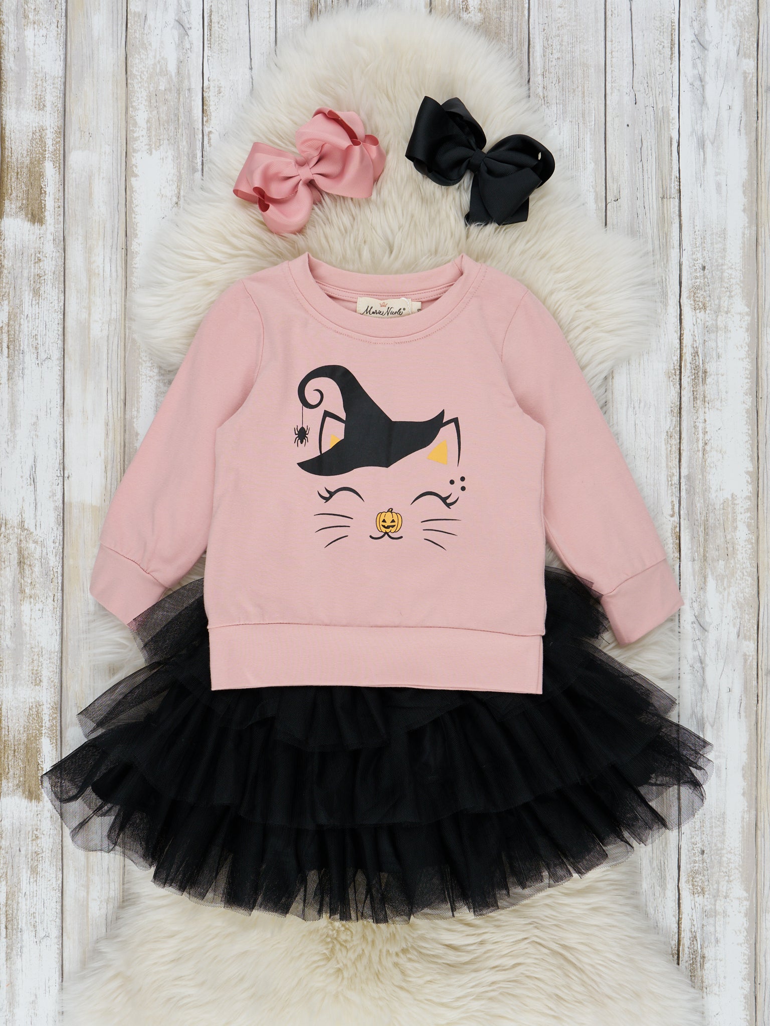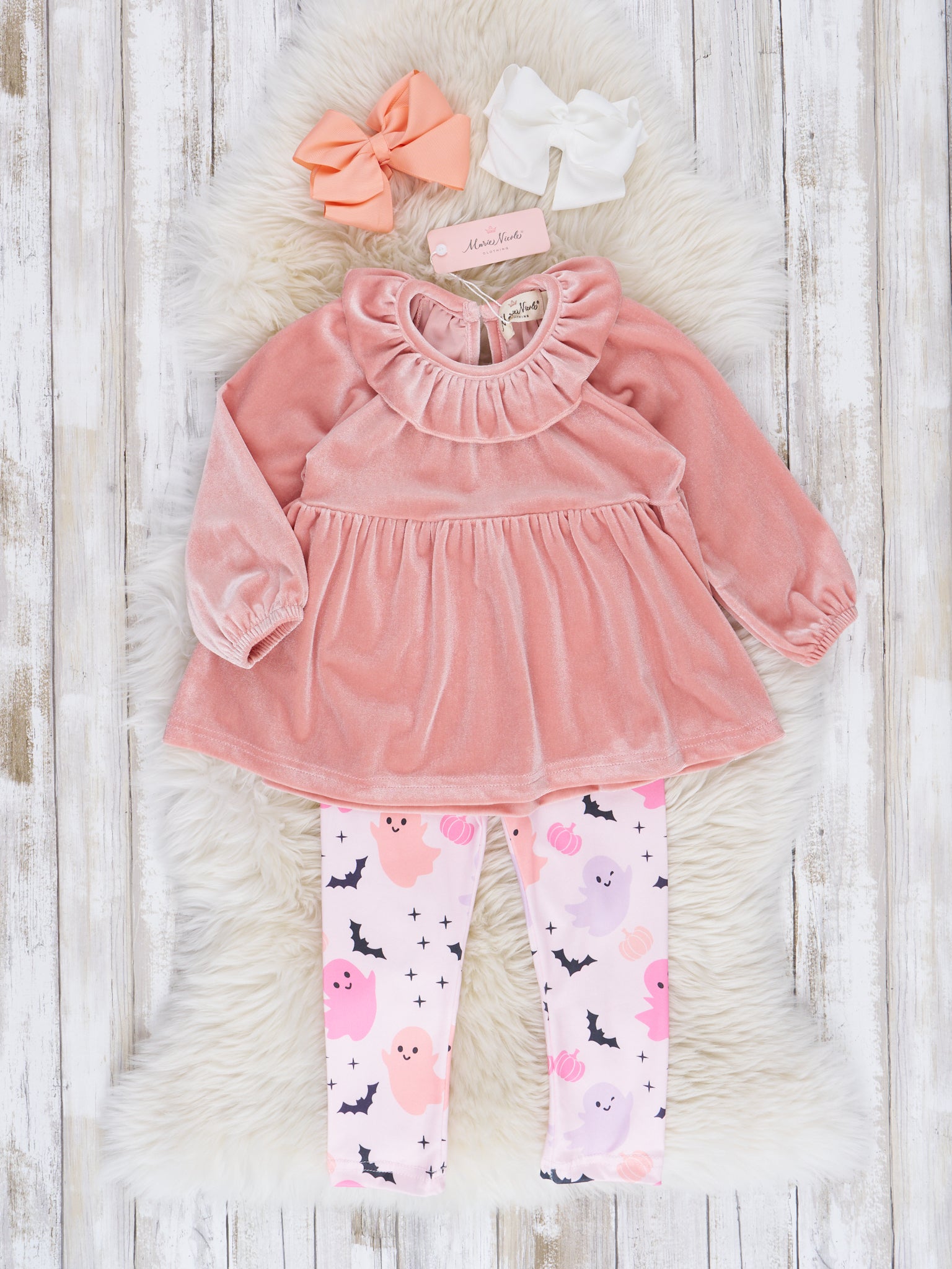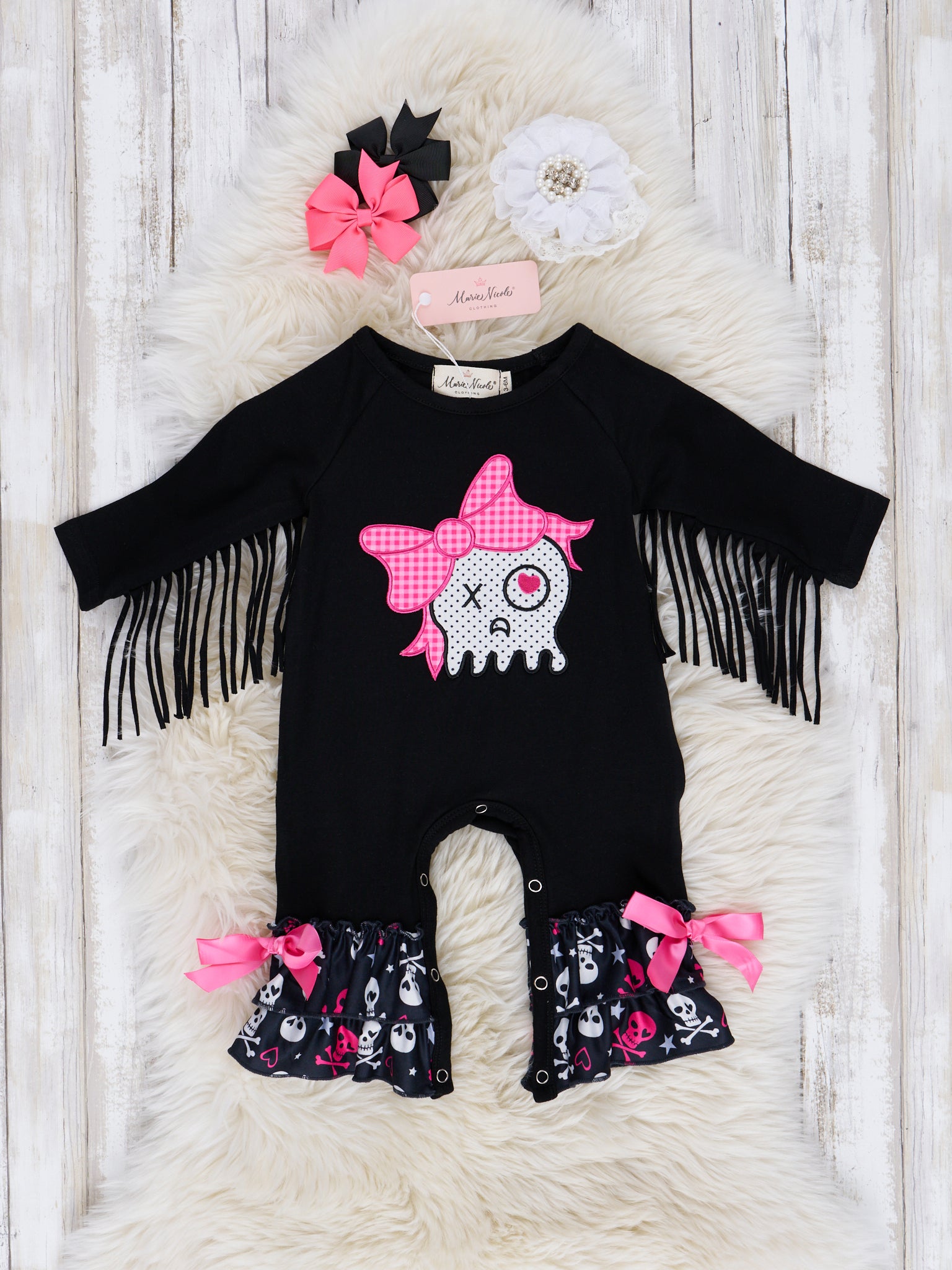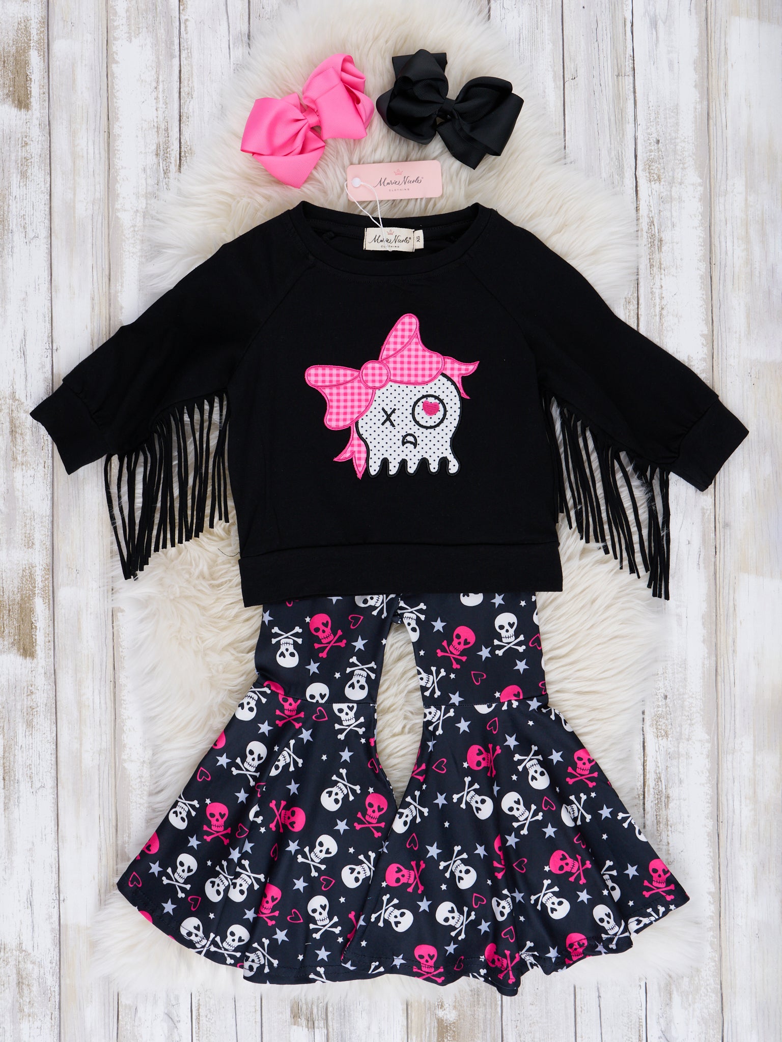 Pink & Black Fringe Skull Bell Bottom Outfit