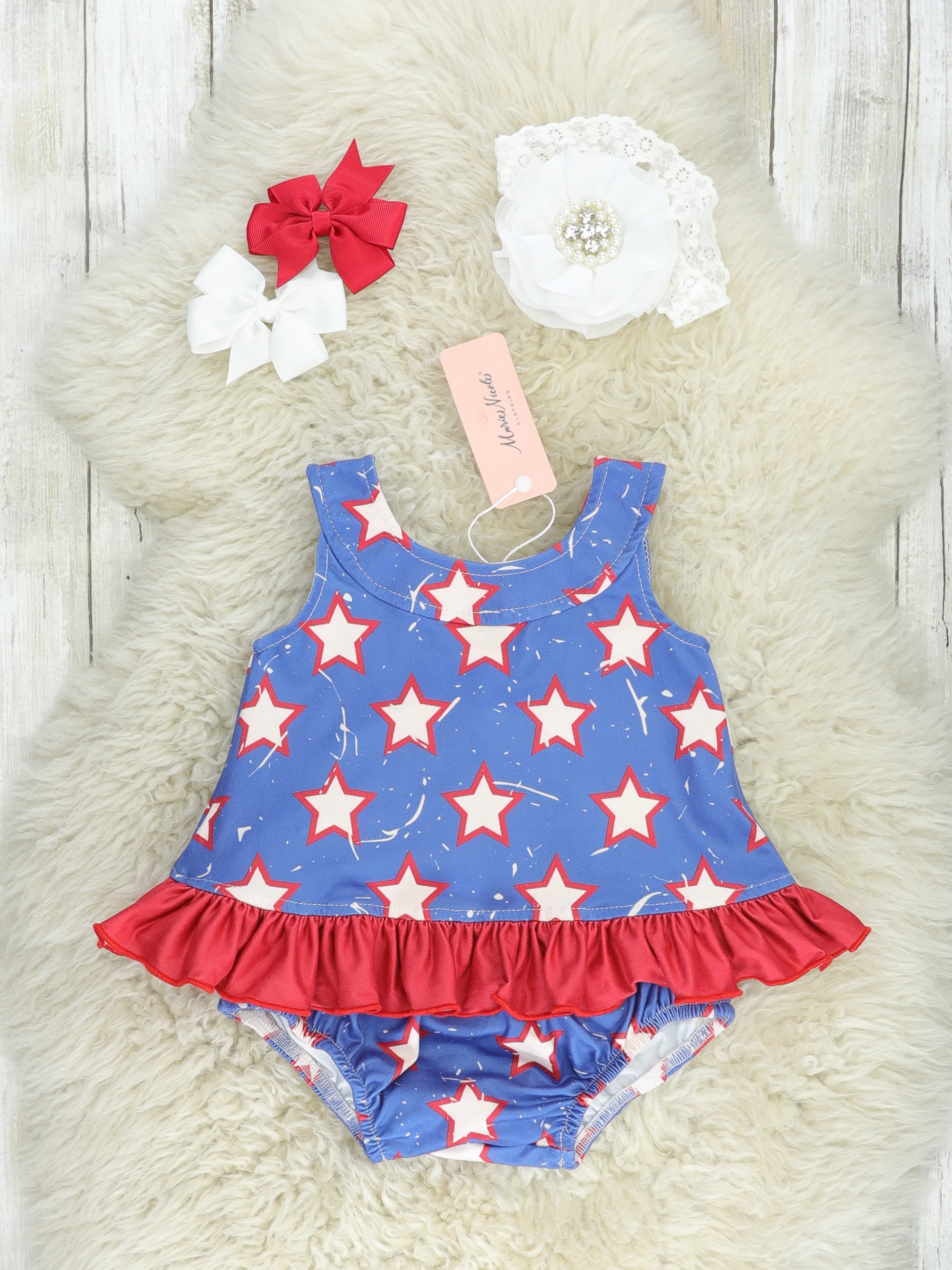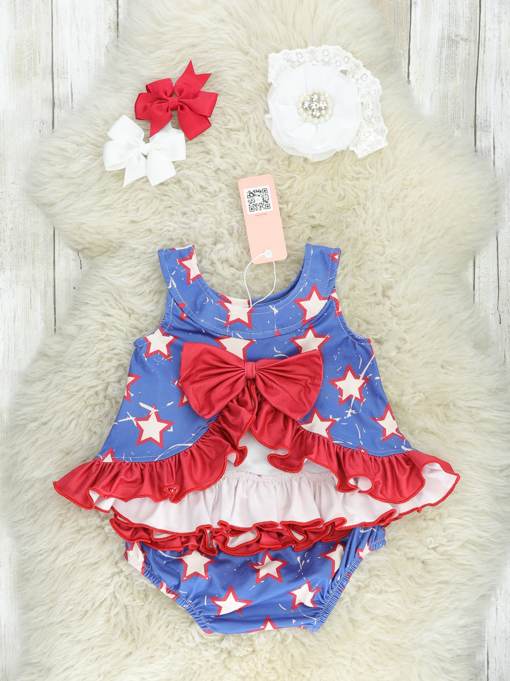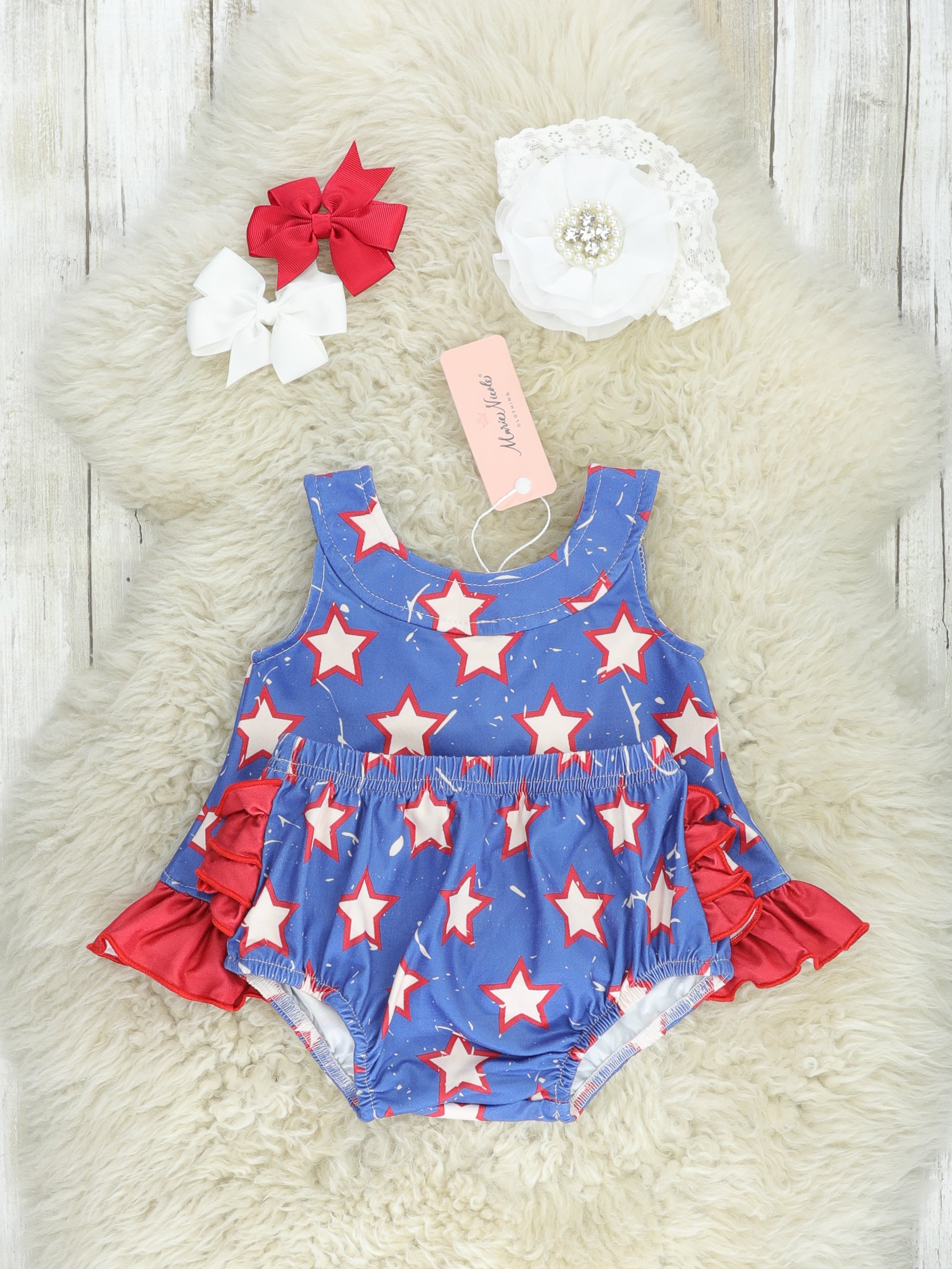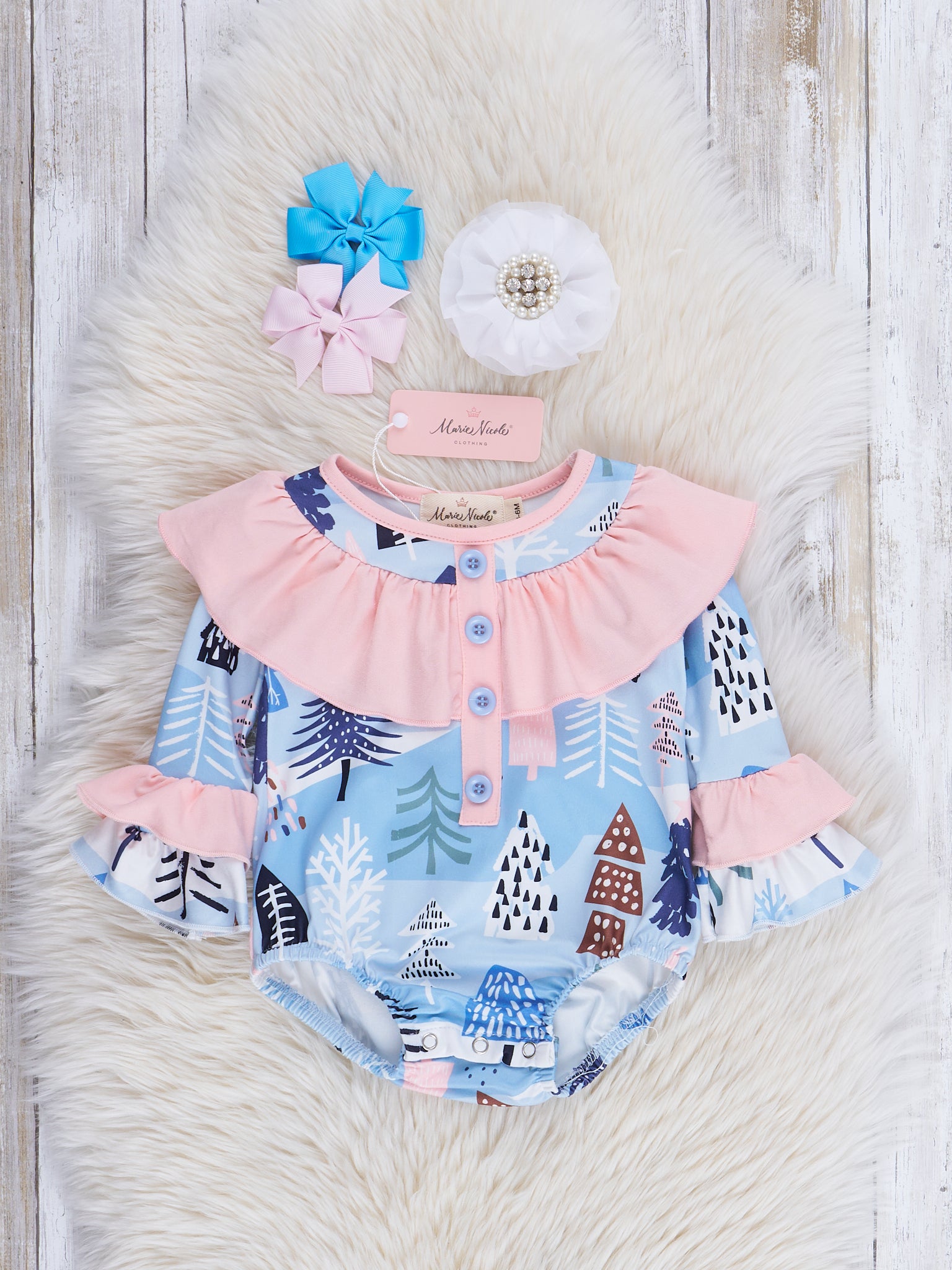 Pink & Blue Polka Dot Bunny Ruffle Romper