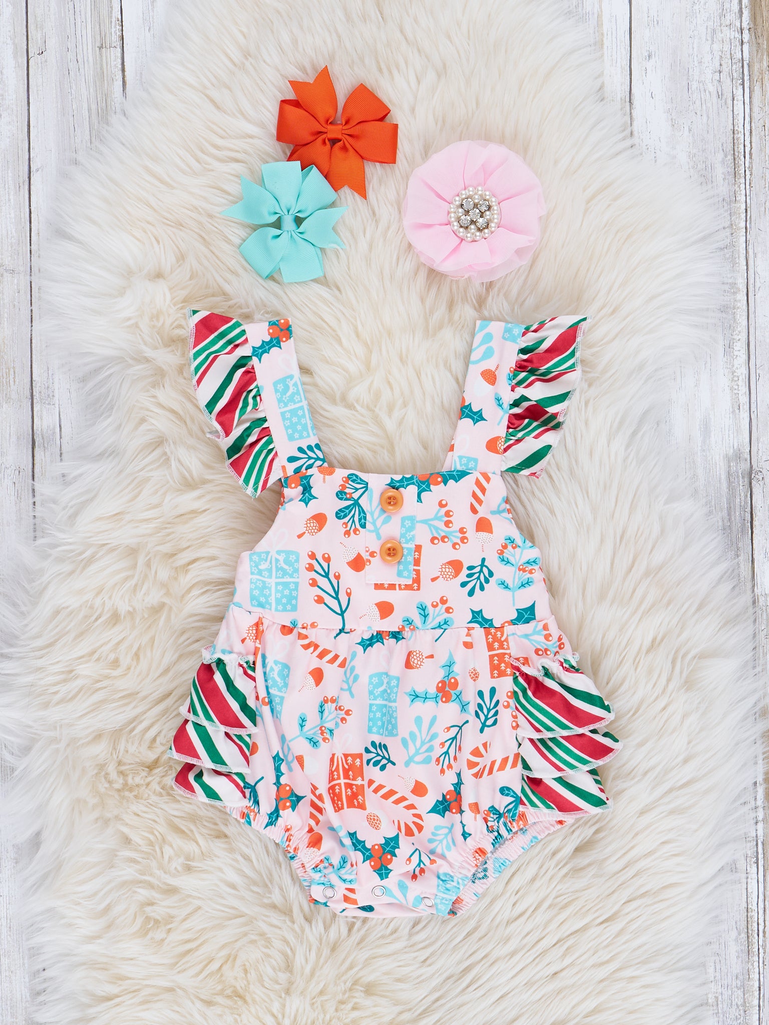 Pink & Candy Stripe Holiday Ruffle Bubble