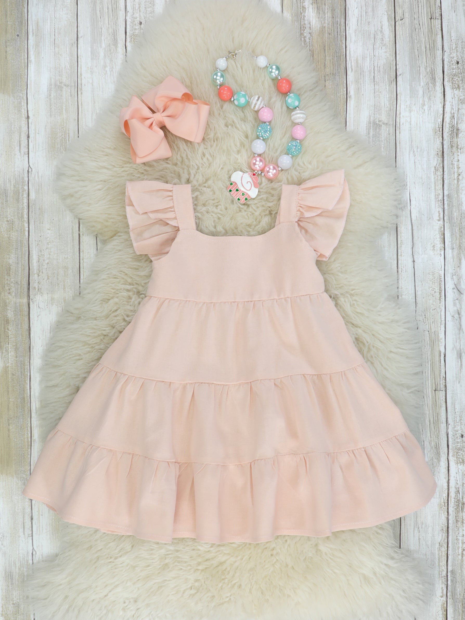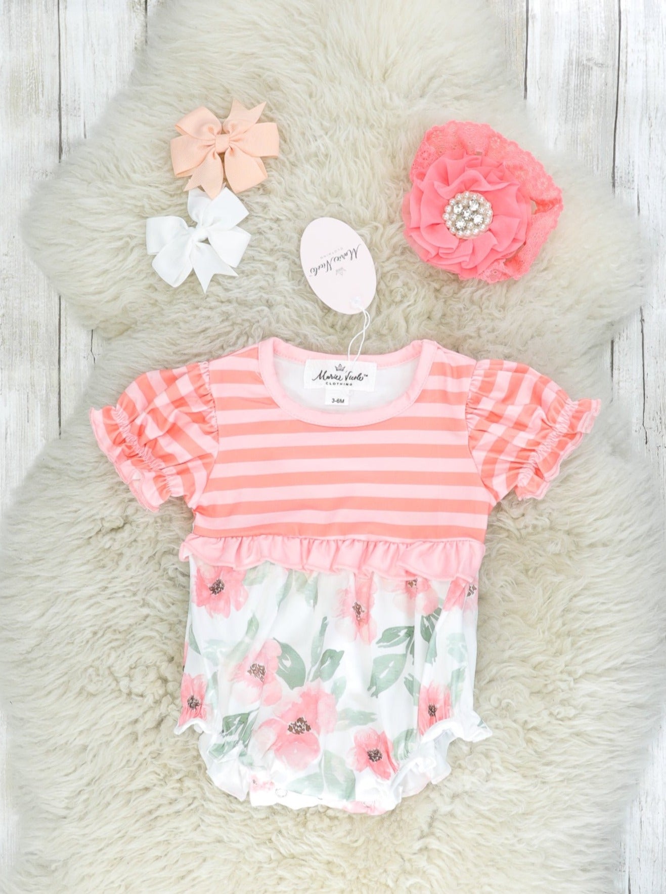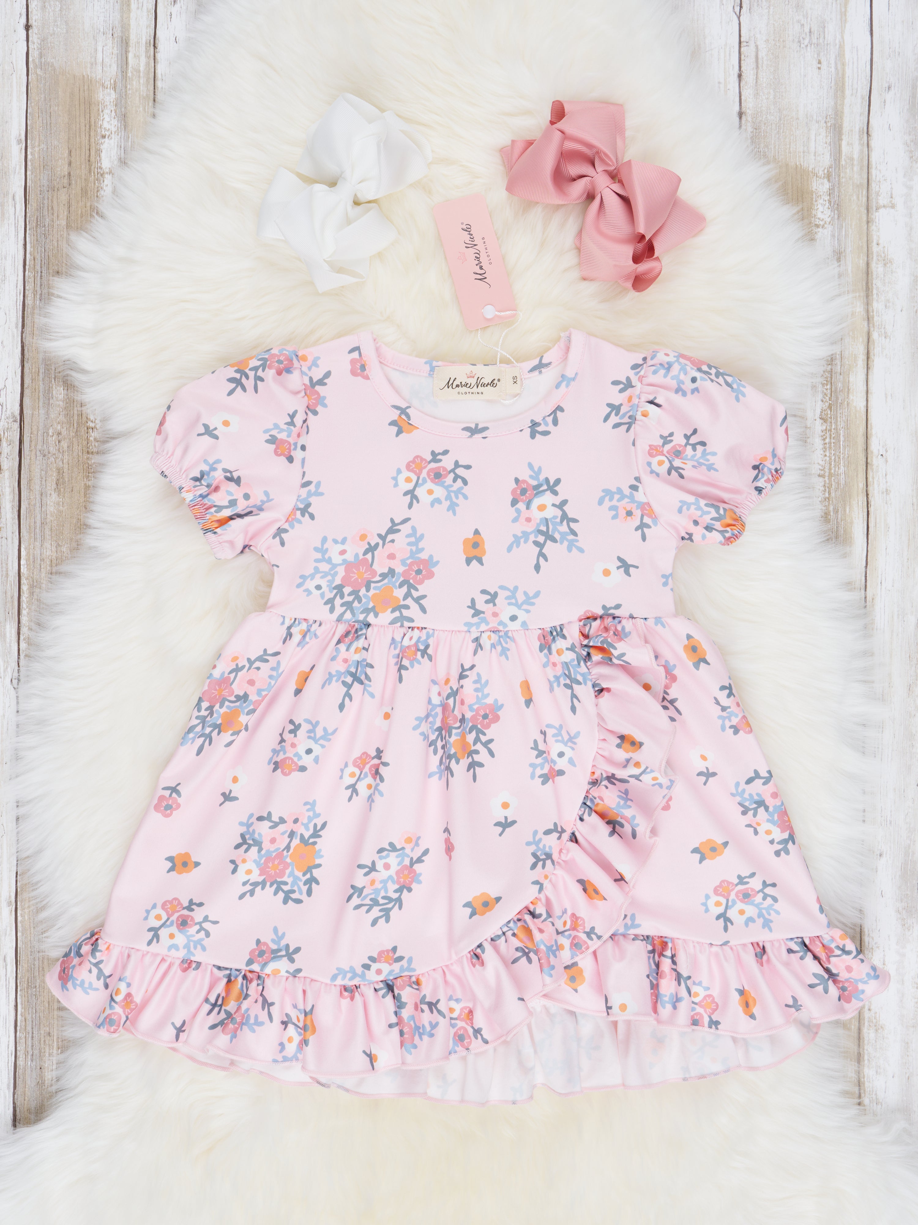 Peach Floral & Navy Swiss Dot Tiered Dress