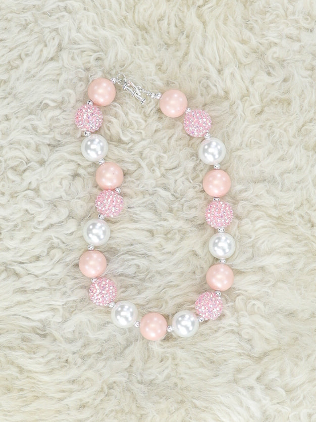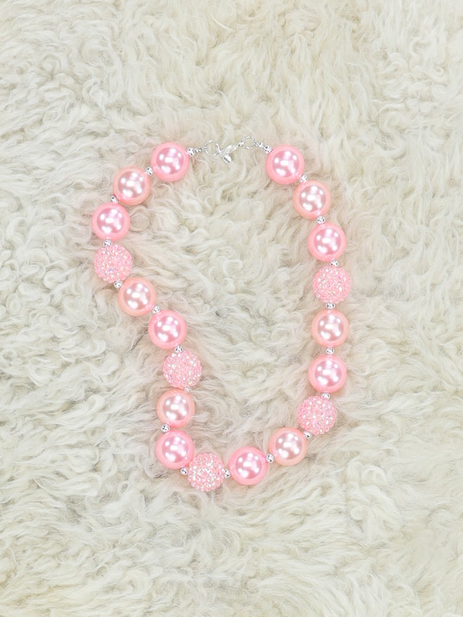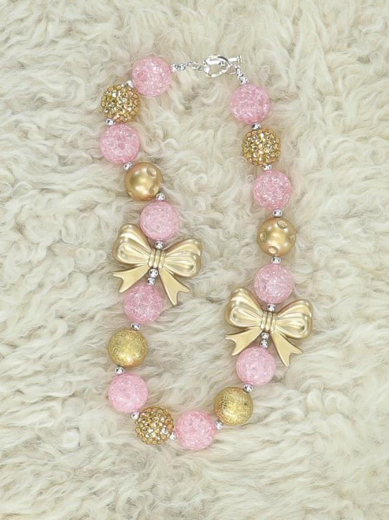 Pink & Gold Bow Pearl Bubblegum Necklace