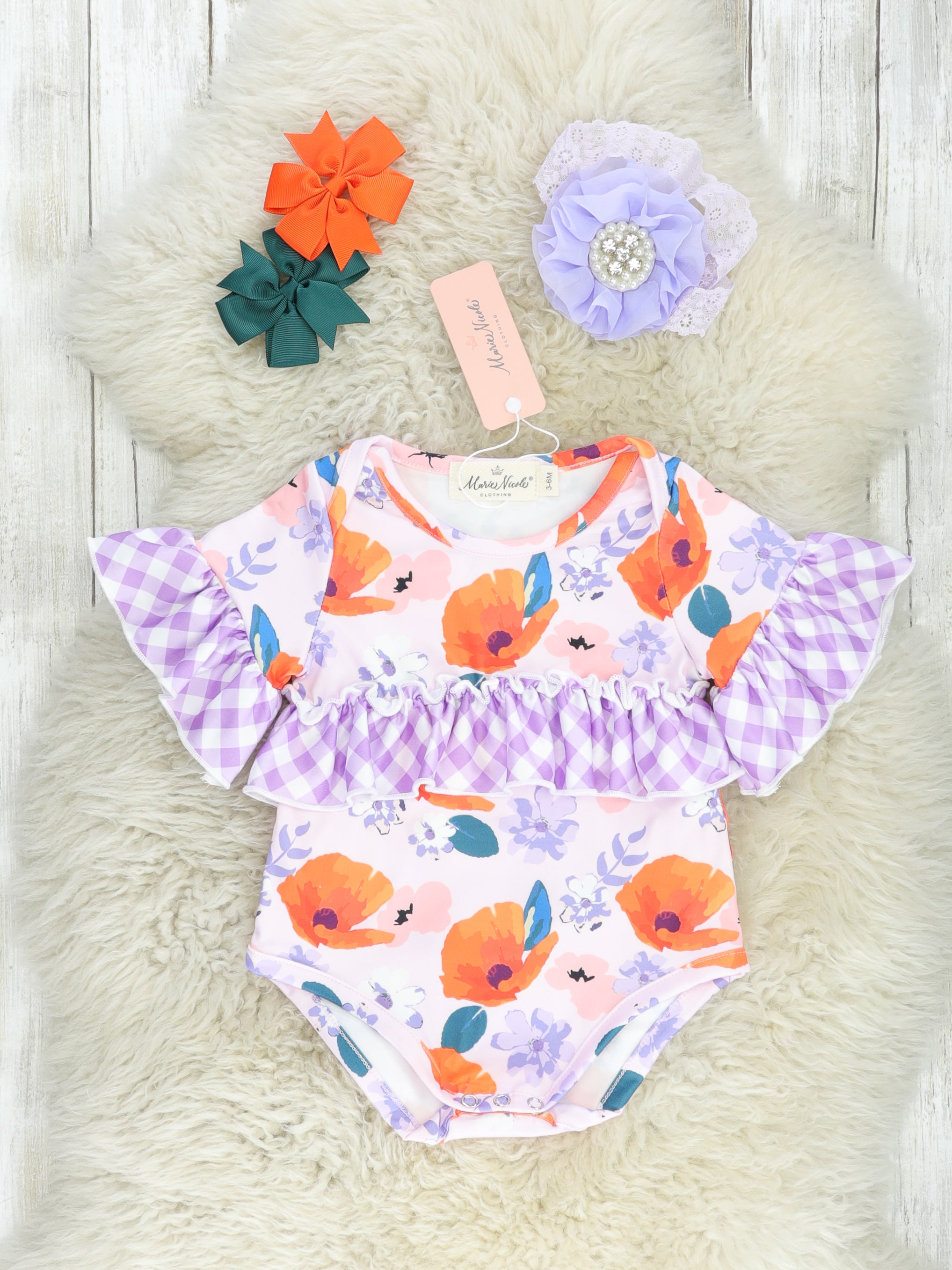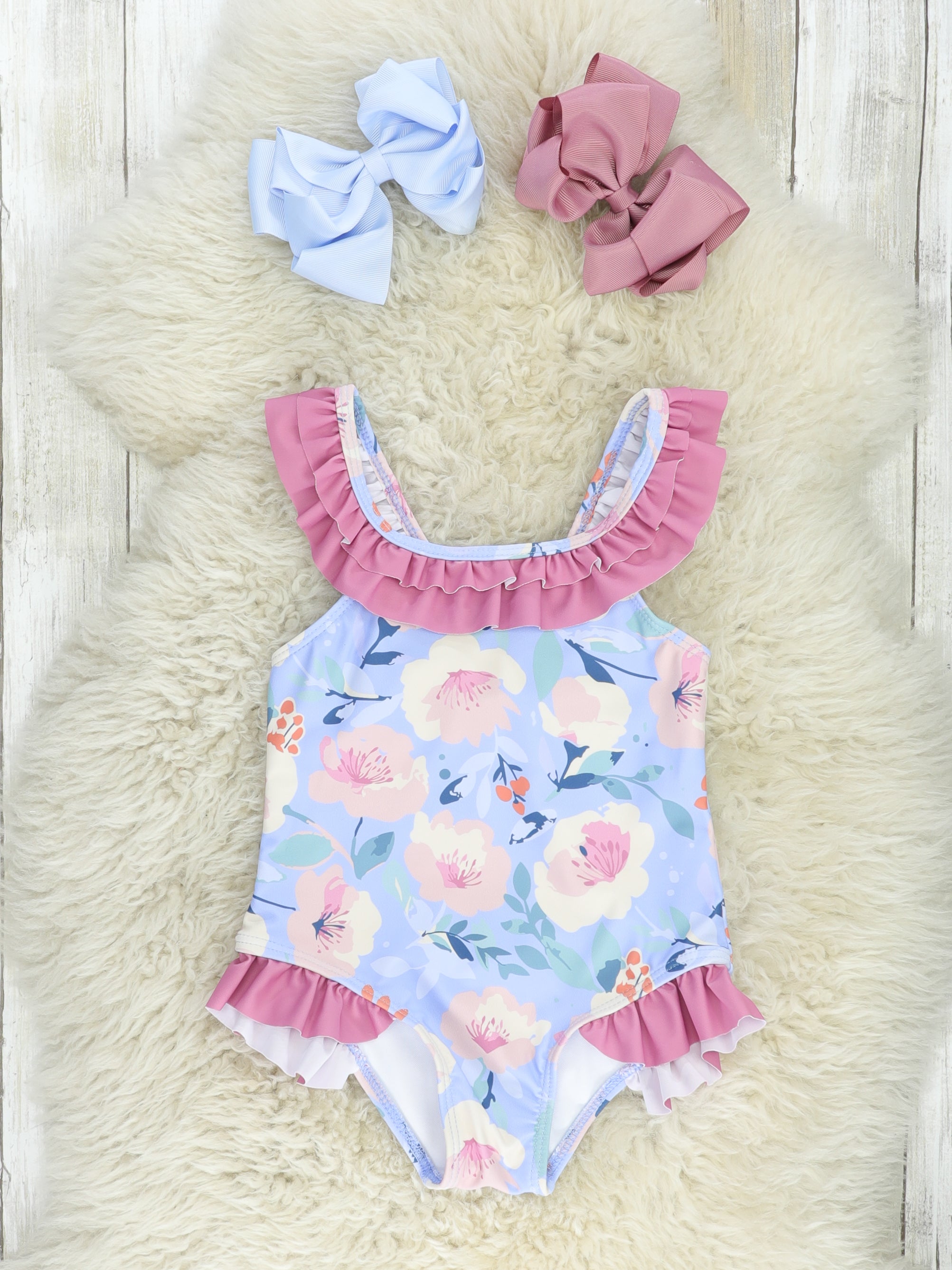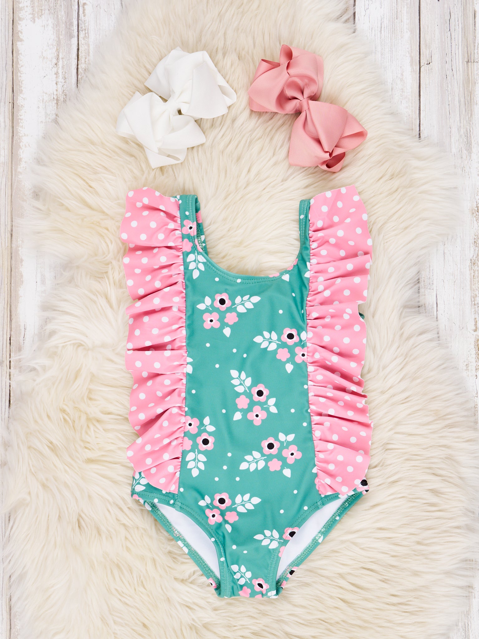 Polka Dot Floral Ruffle One-Piece Swimsuit