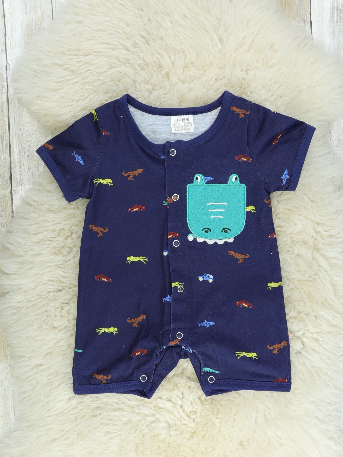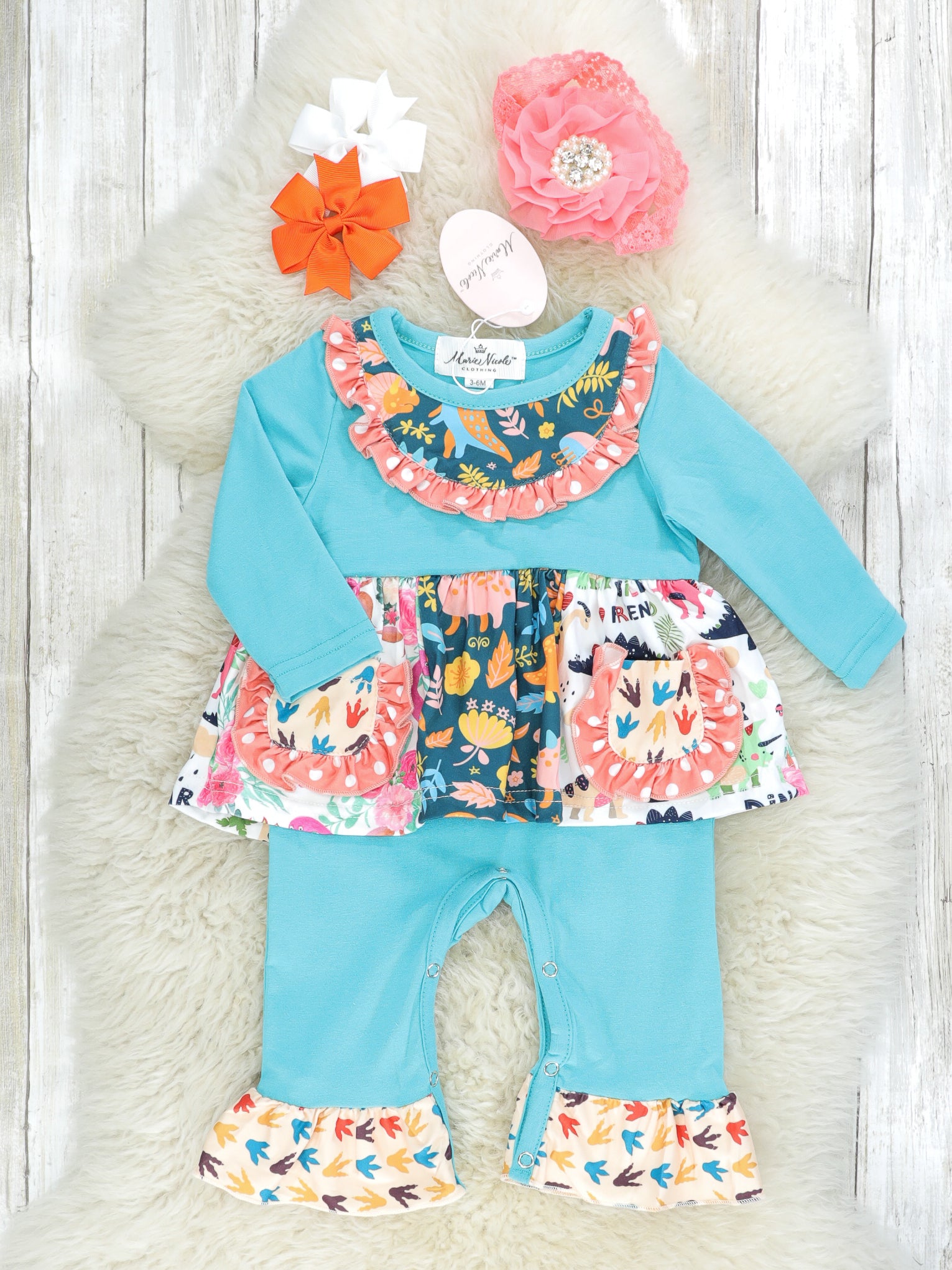 Pocket Flara Bells Romper - Blue Dinosaurs