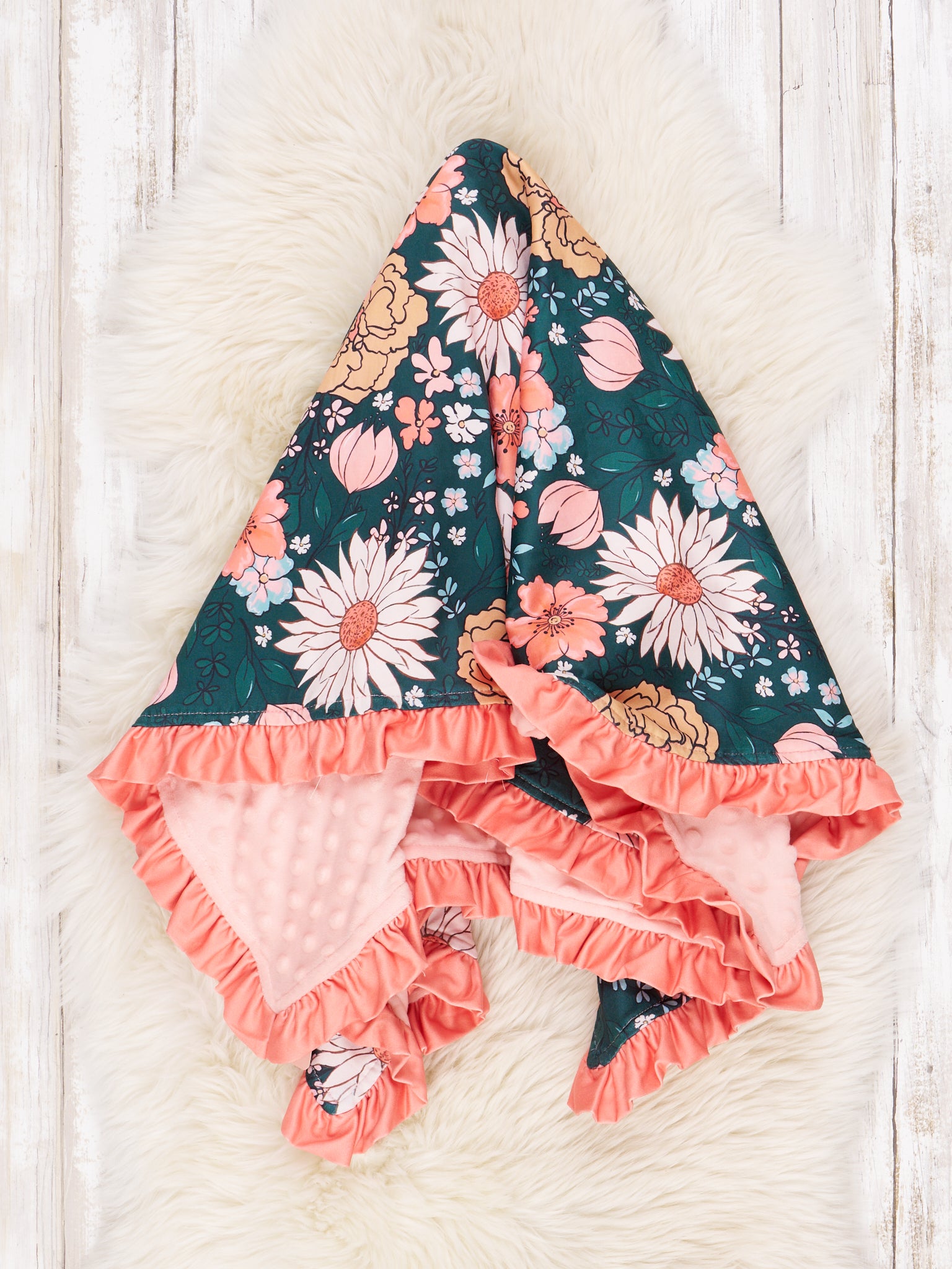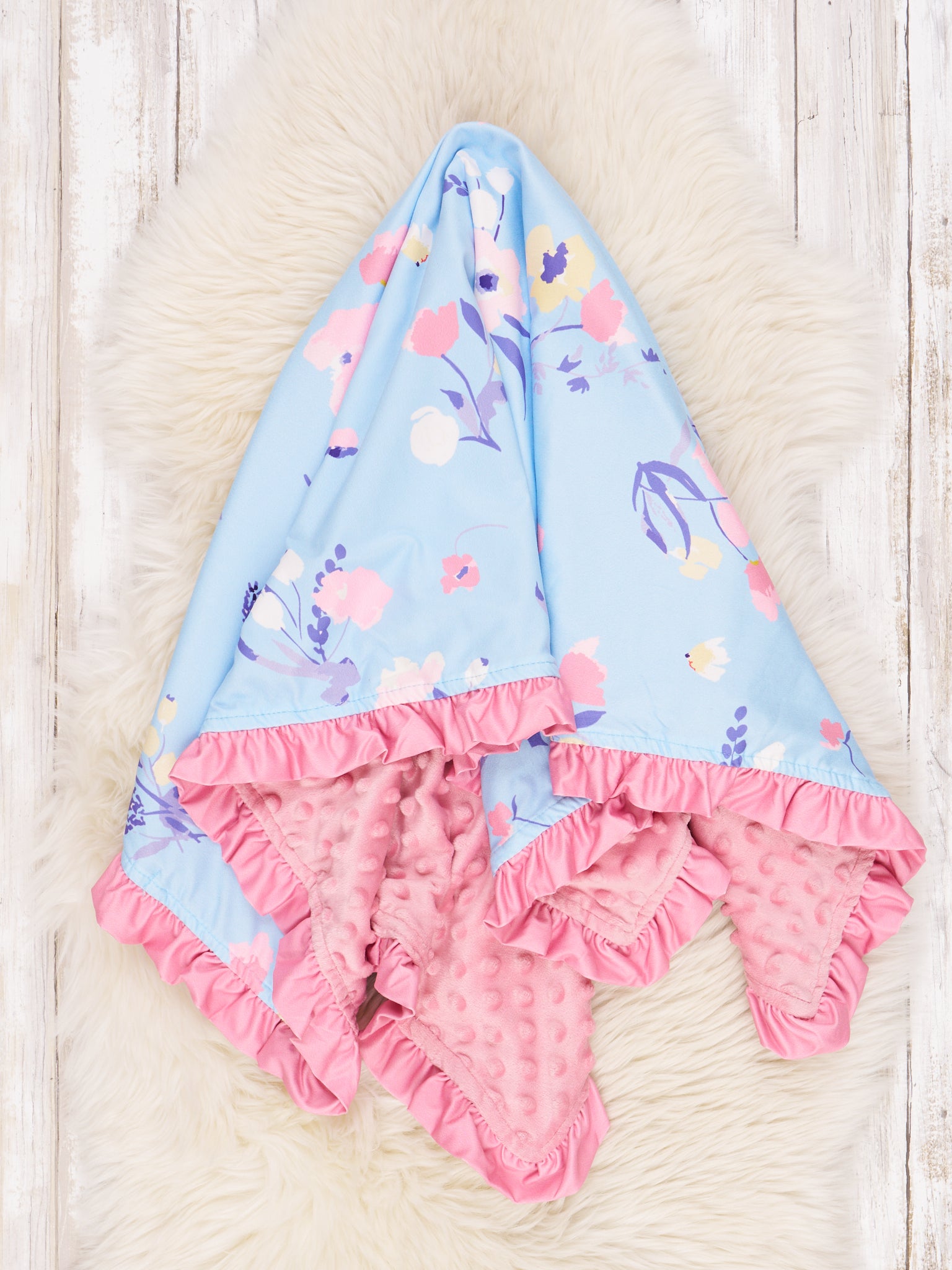 Sweet Pink Floral Mom Love Ruffle Minky Blanket