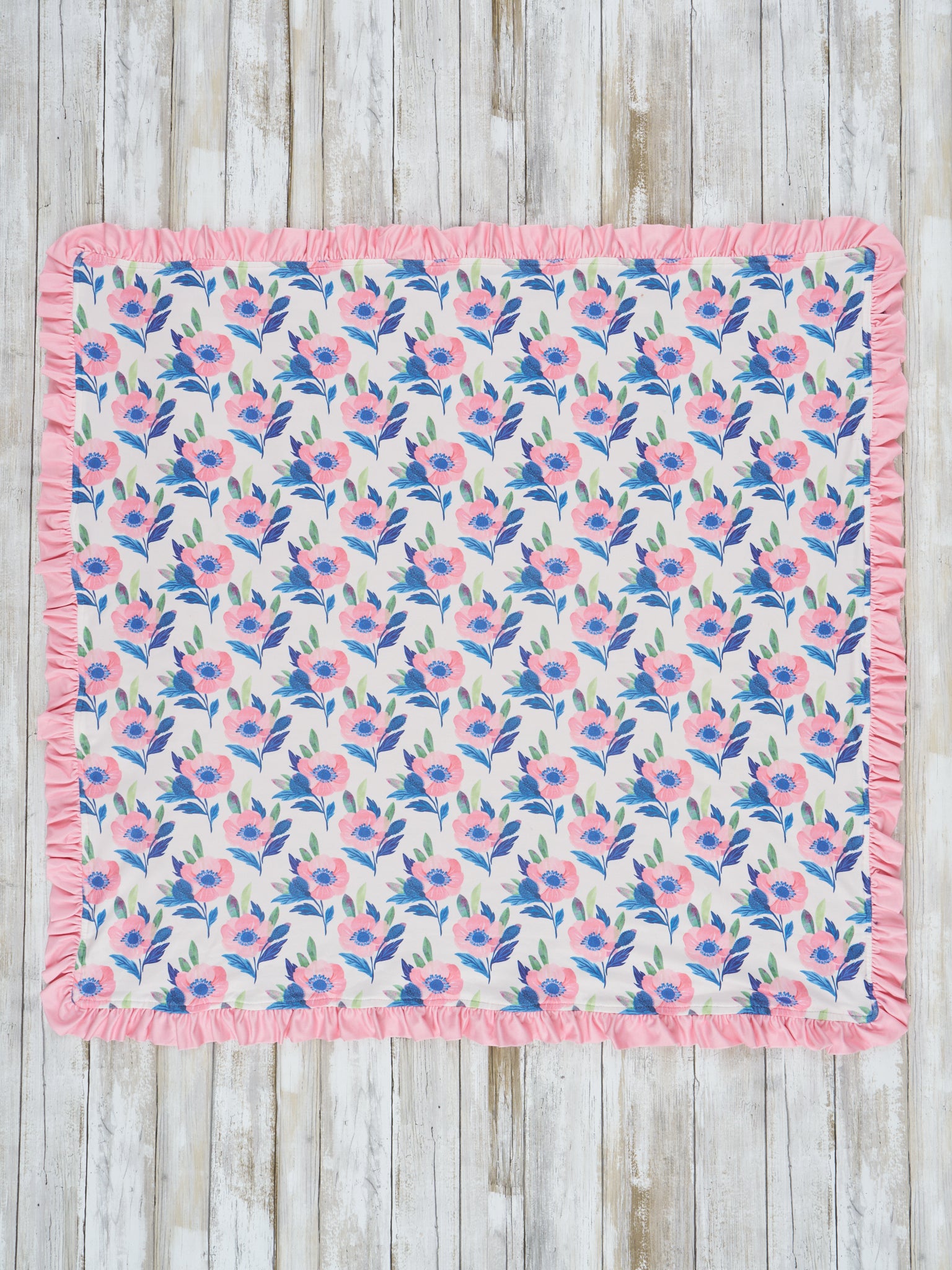 Navy & Pink Watercolor Ruffle Minky Blanket