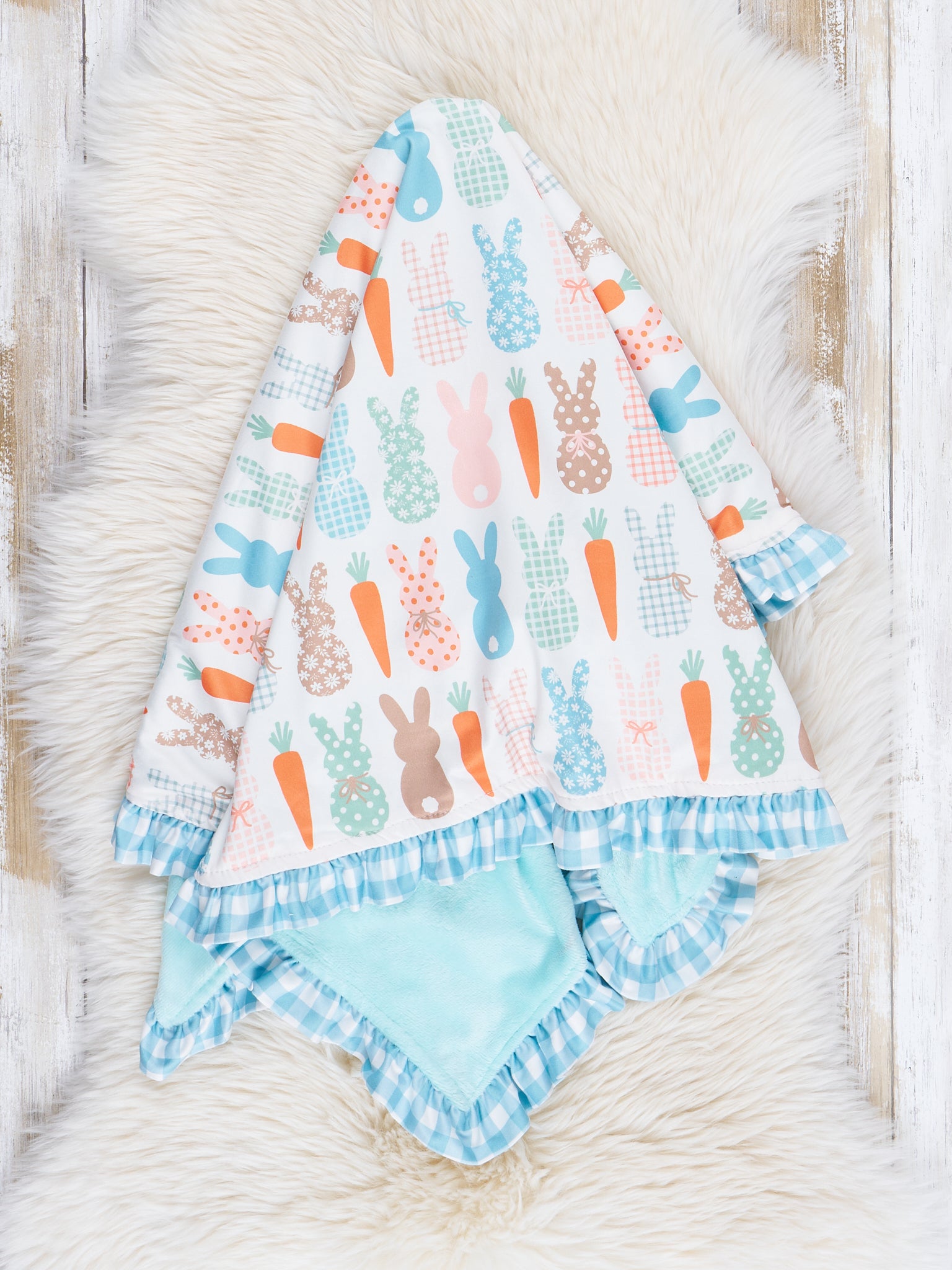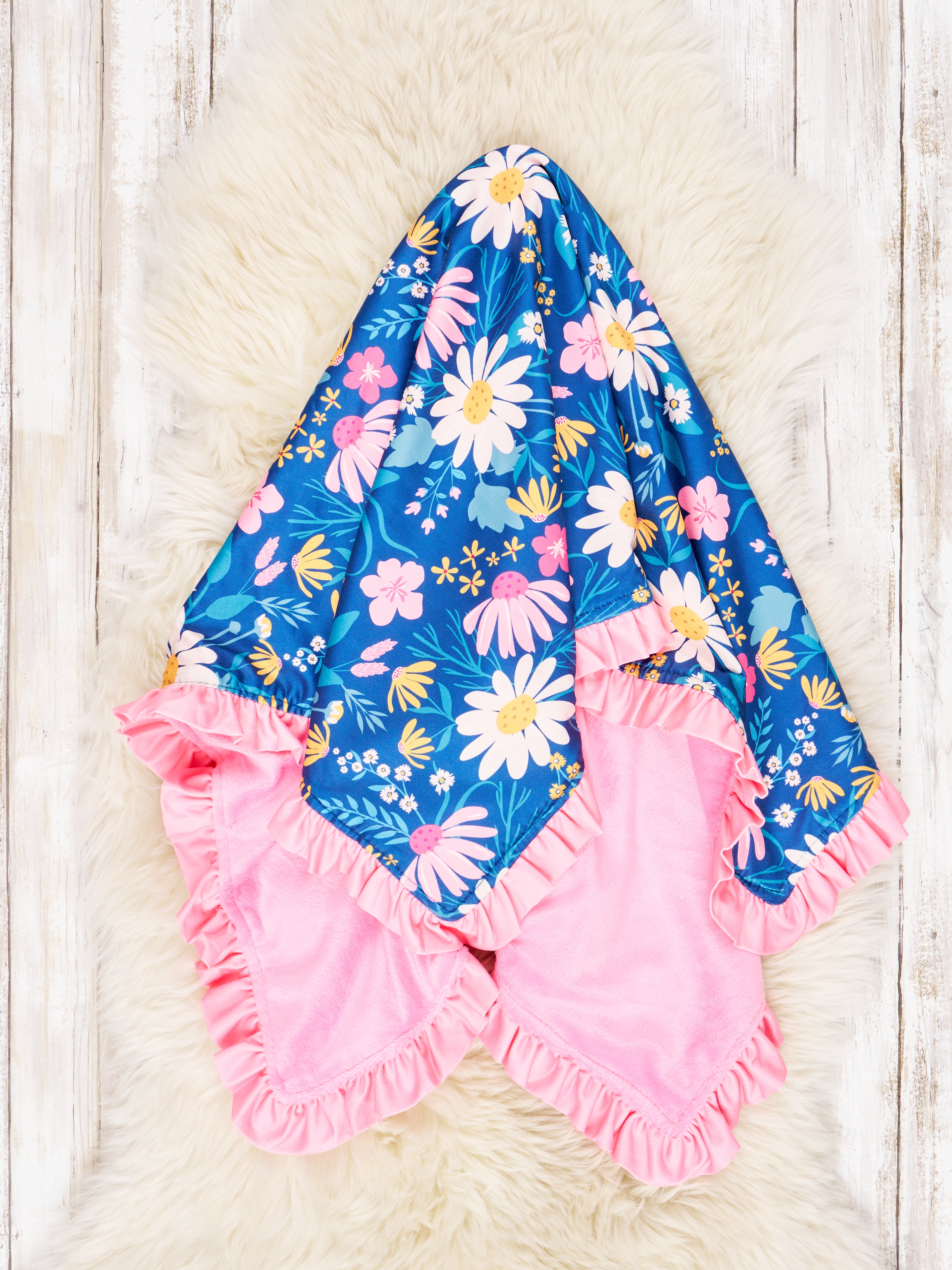 Orange Blooms & Blue Plaid Pumpkin Ruffle Minky Blanket