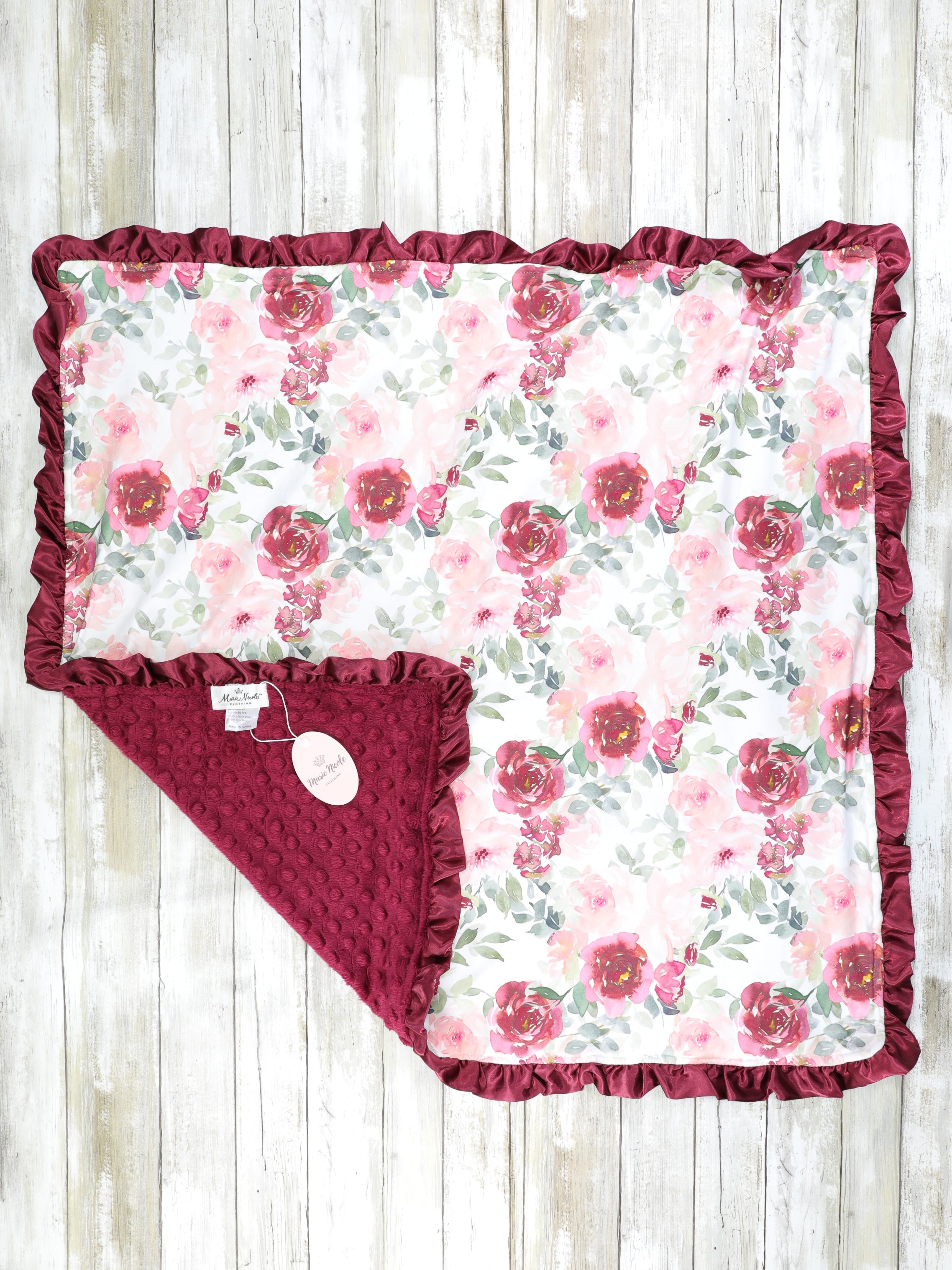 Coral & Green Rose Bouquet Ruffle Minky Blanket