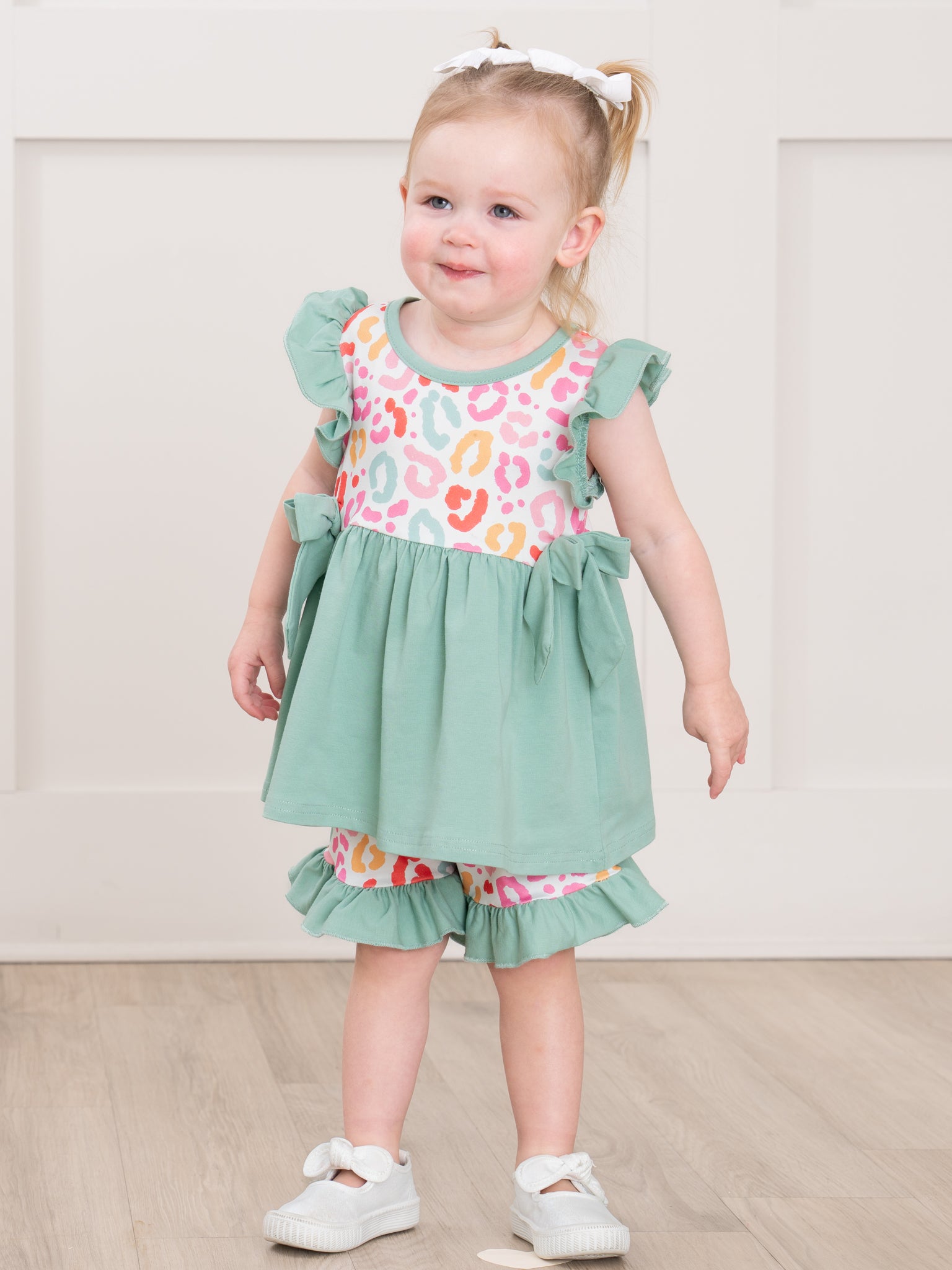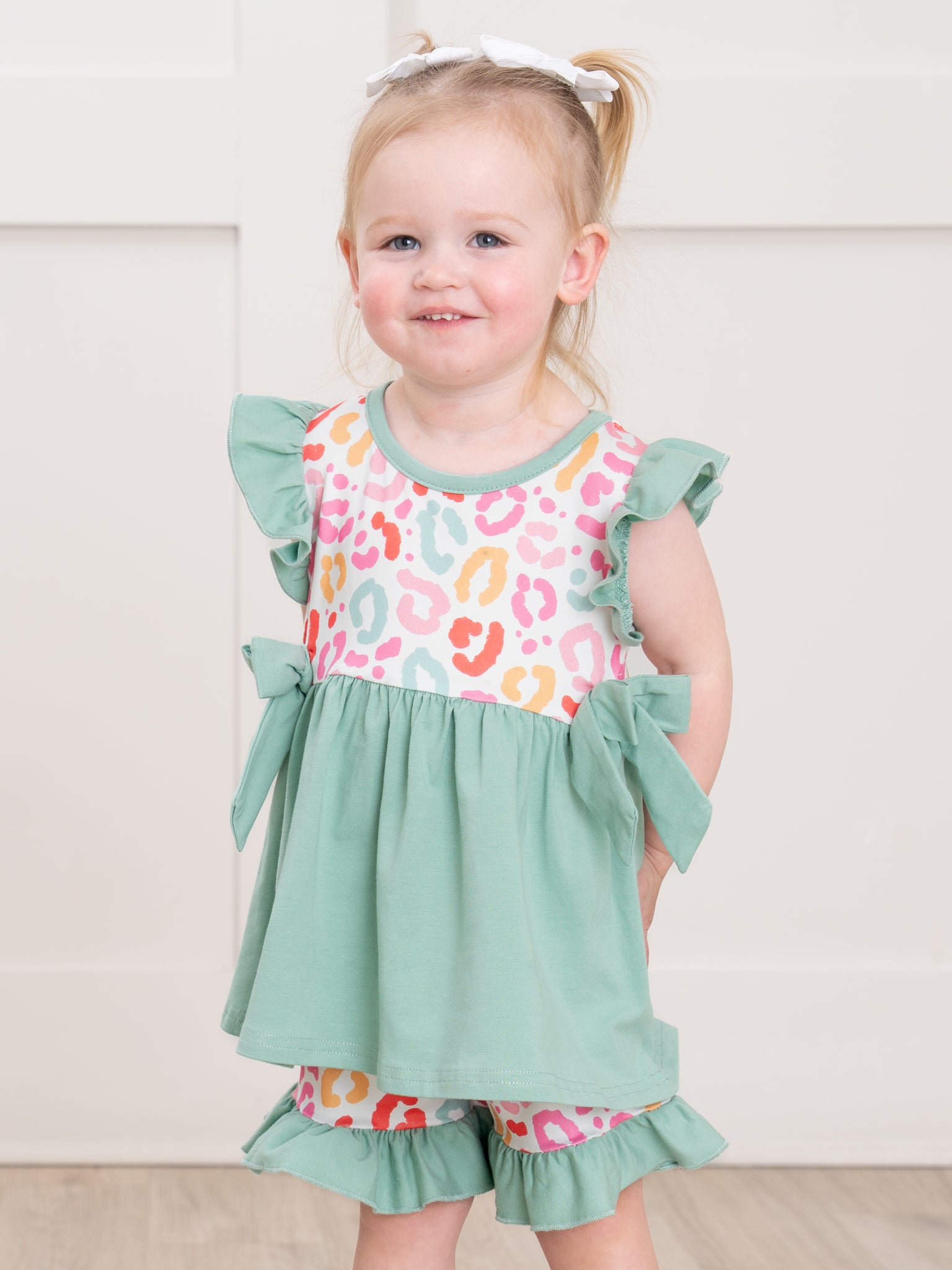 sage & pink leopard ruffle