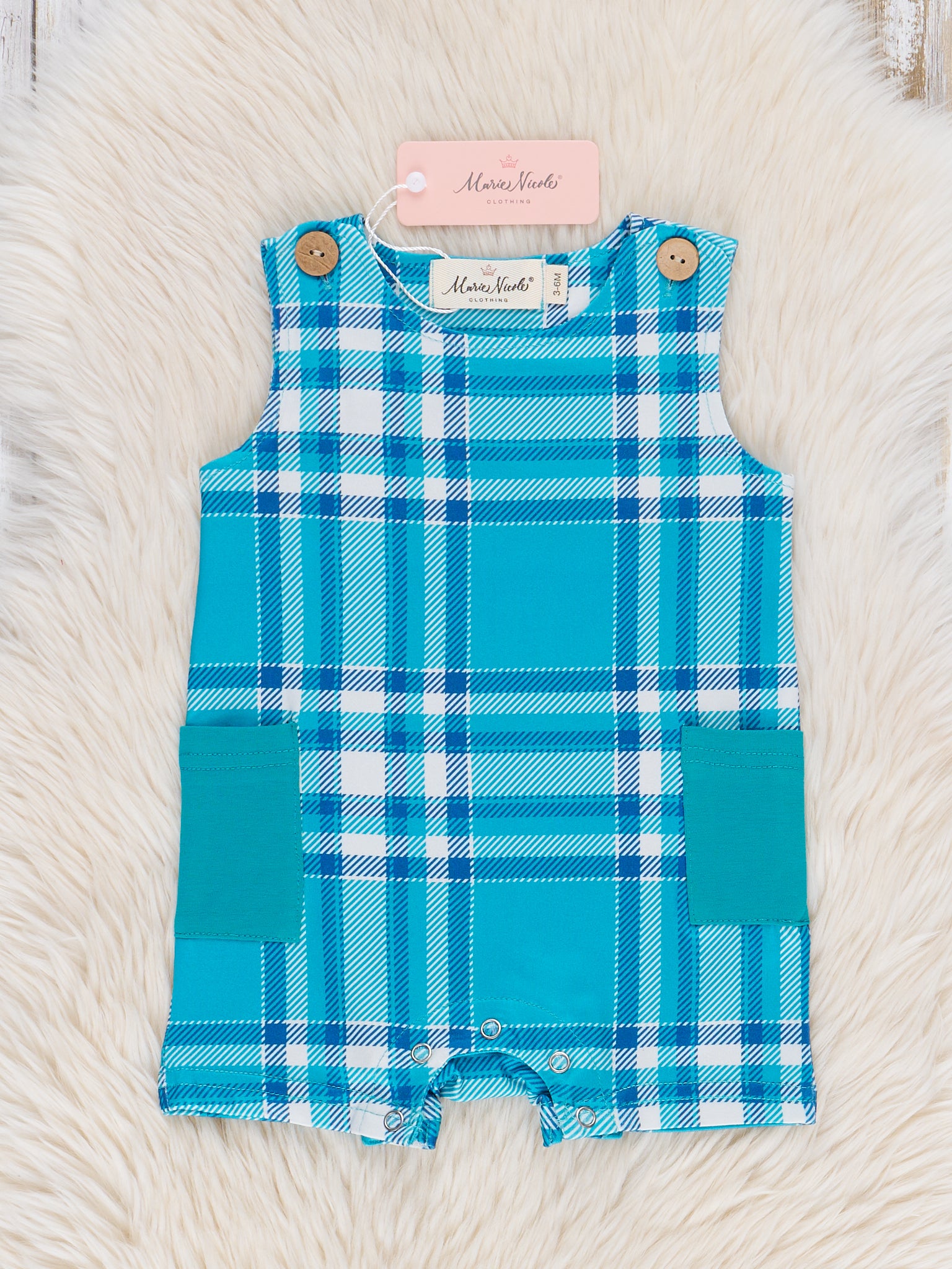 Add some flair to your little one's wardrobe with our Turquoise Plaid Johnny! This charming romper features a fun and playful turquoise plaid pattern, complete with adorable button details. It's perfectly soft and comfy for playing and for lounging! Stylish and cute, this outfit is sure to catch attention.