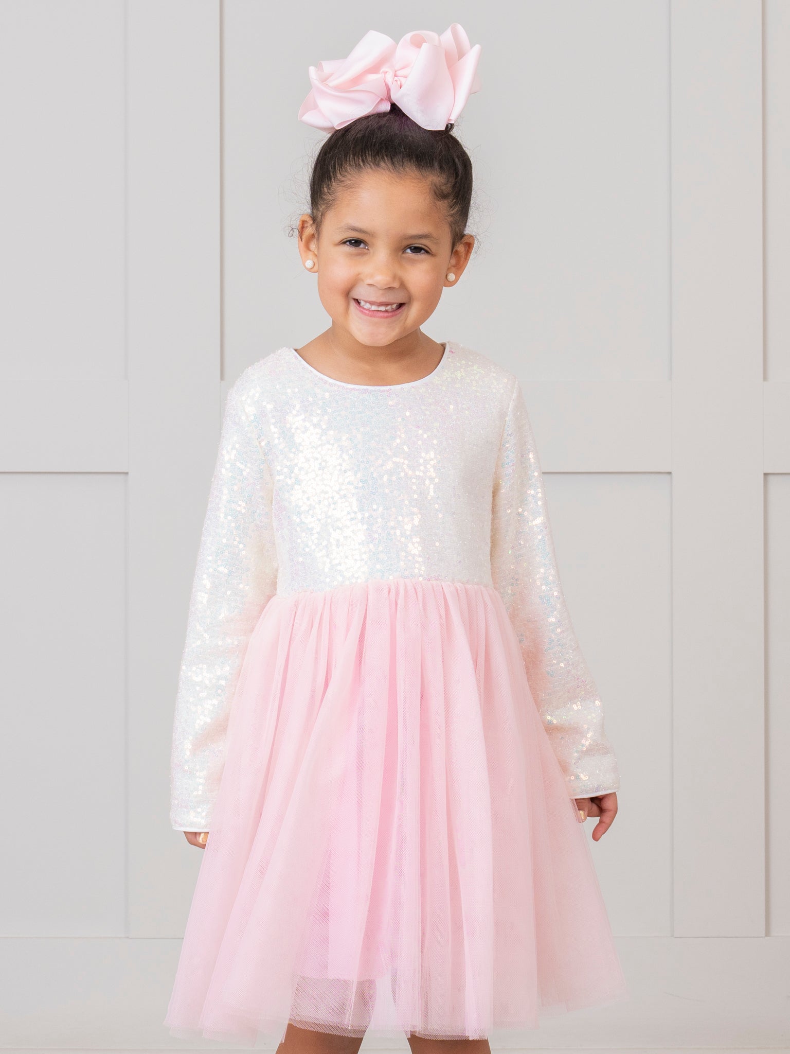 Sparkle and stun in our Blush Sequin Top Tulle Dress. The iridescent sequin top adds a touch of glimmer, while the tulle skirt adds a dreamy, feminine element. Perfect for any special occasion. And guaranteed to turn heads!