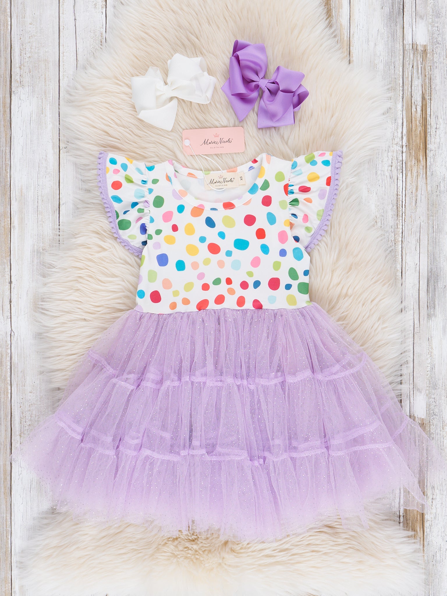 Yee-haw your way into spring with our Lilac Confetti Cowgirl Tulle Dress! The playful confetti print bodice is paired with a flowy lilac tulle skirt, perfect for twirling. Complete the look with our matching sister set from Marie Nicole Clothing. Giddy up and grab one now